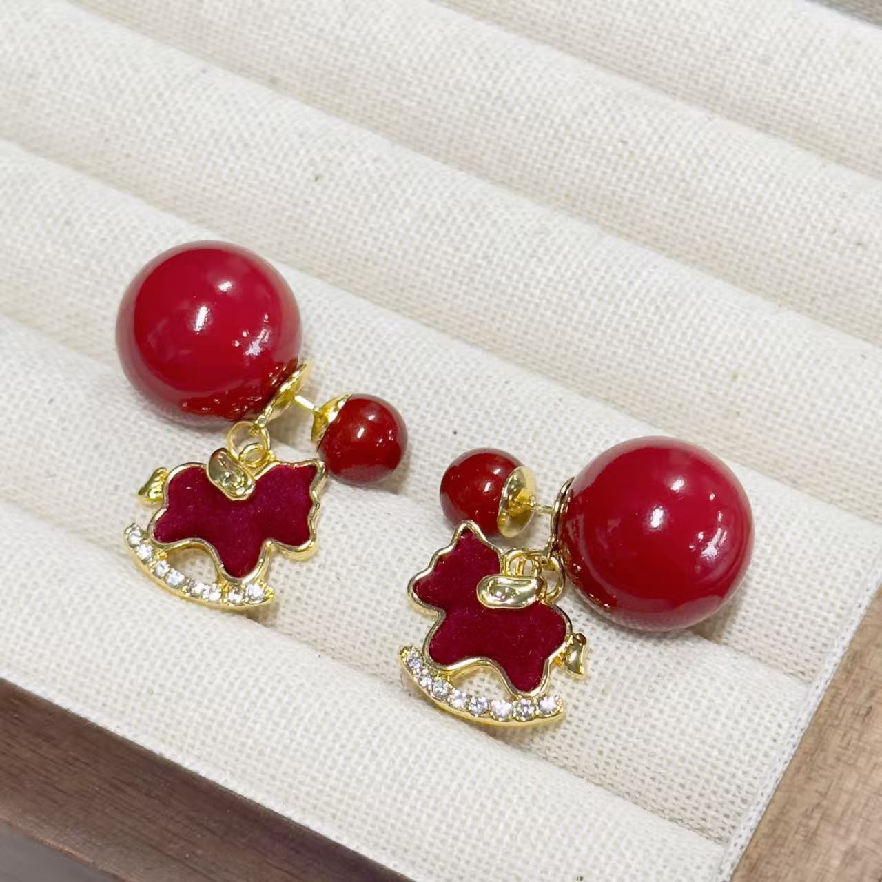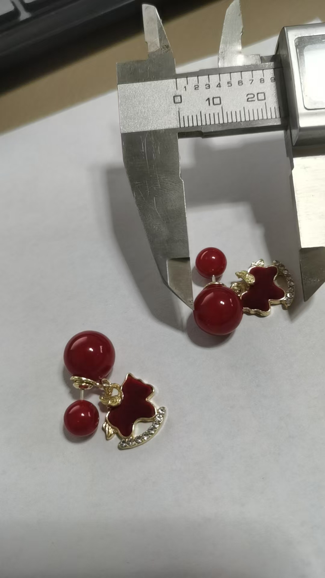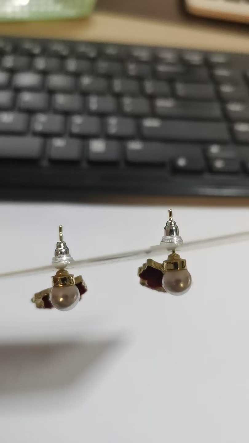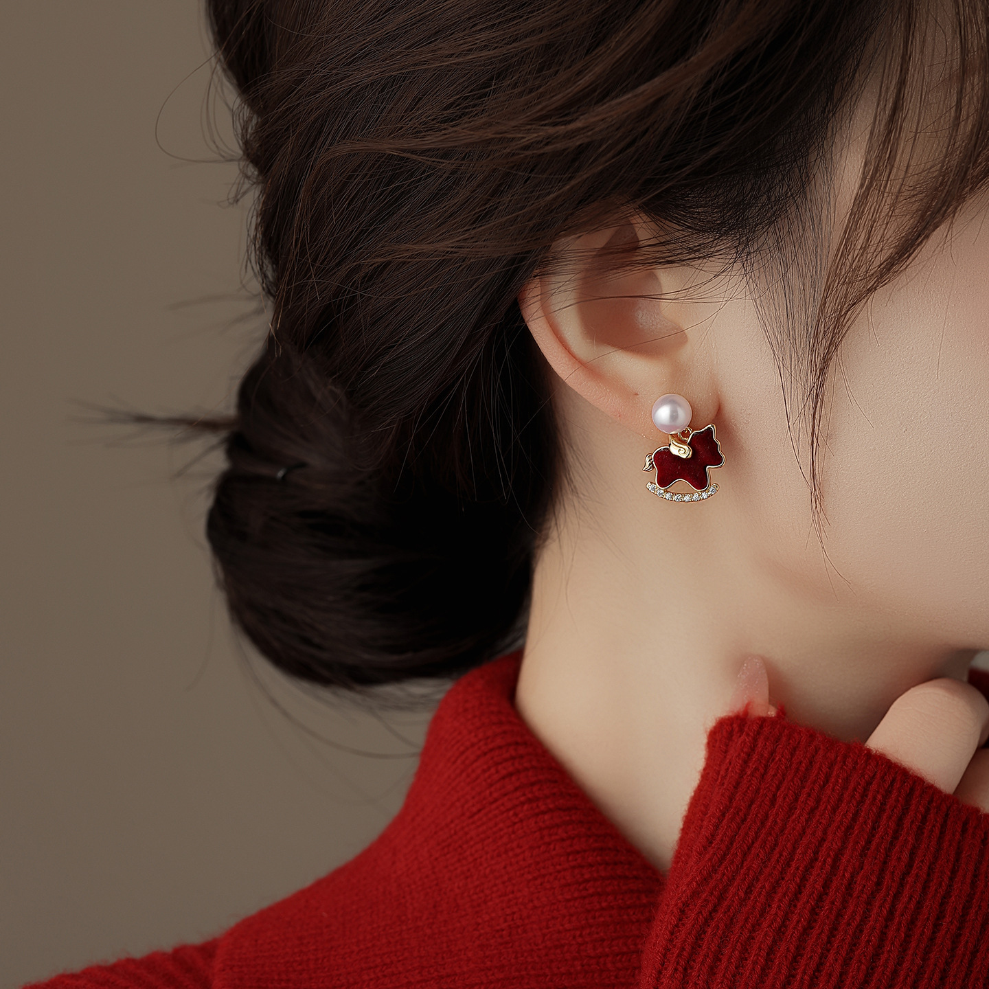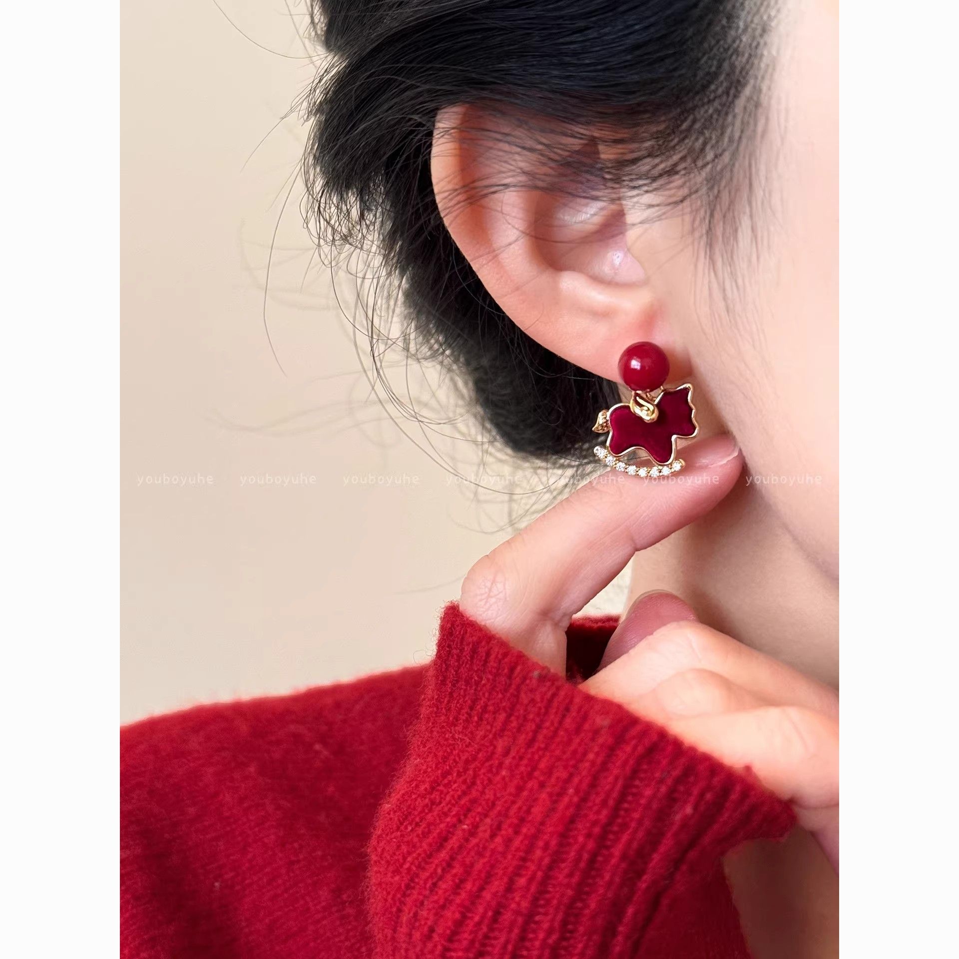 3563 red pearl hanging on back of ear