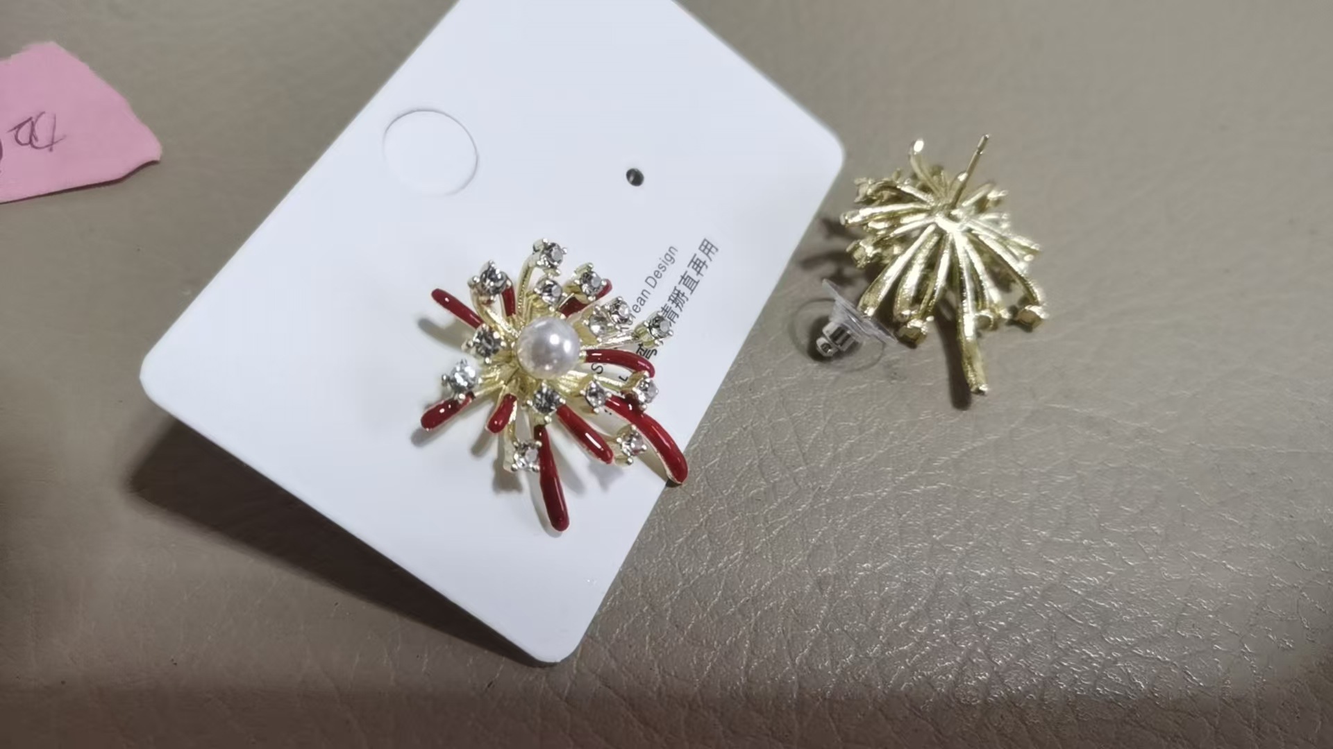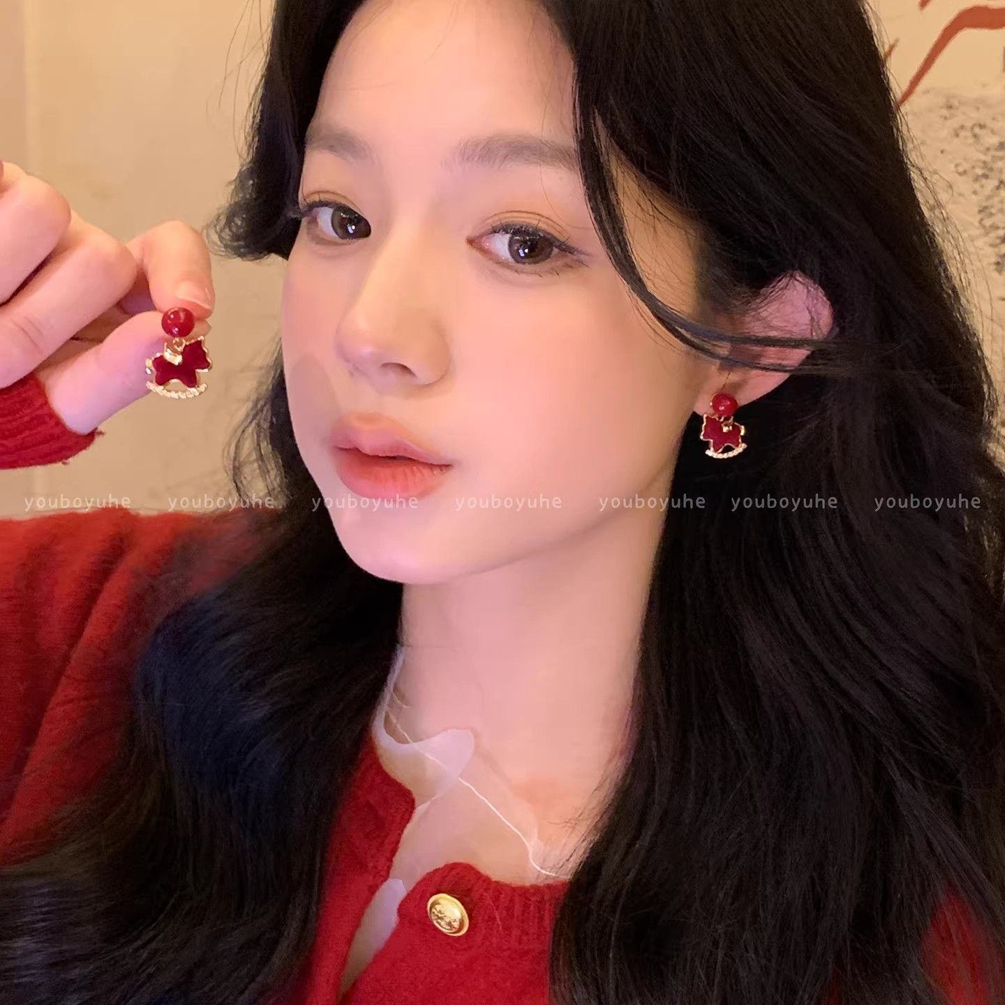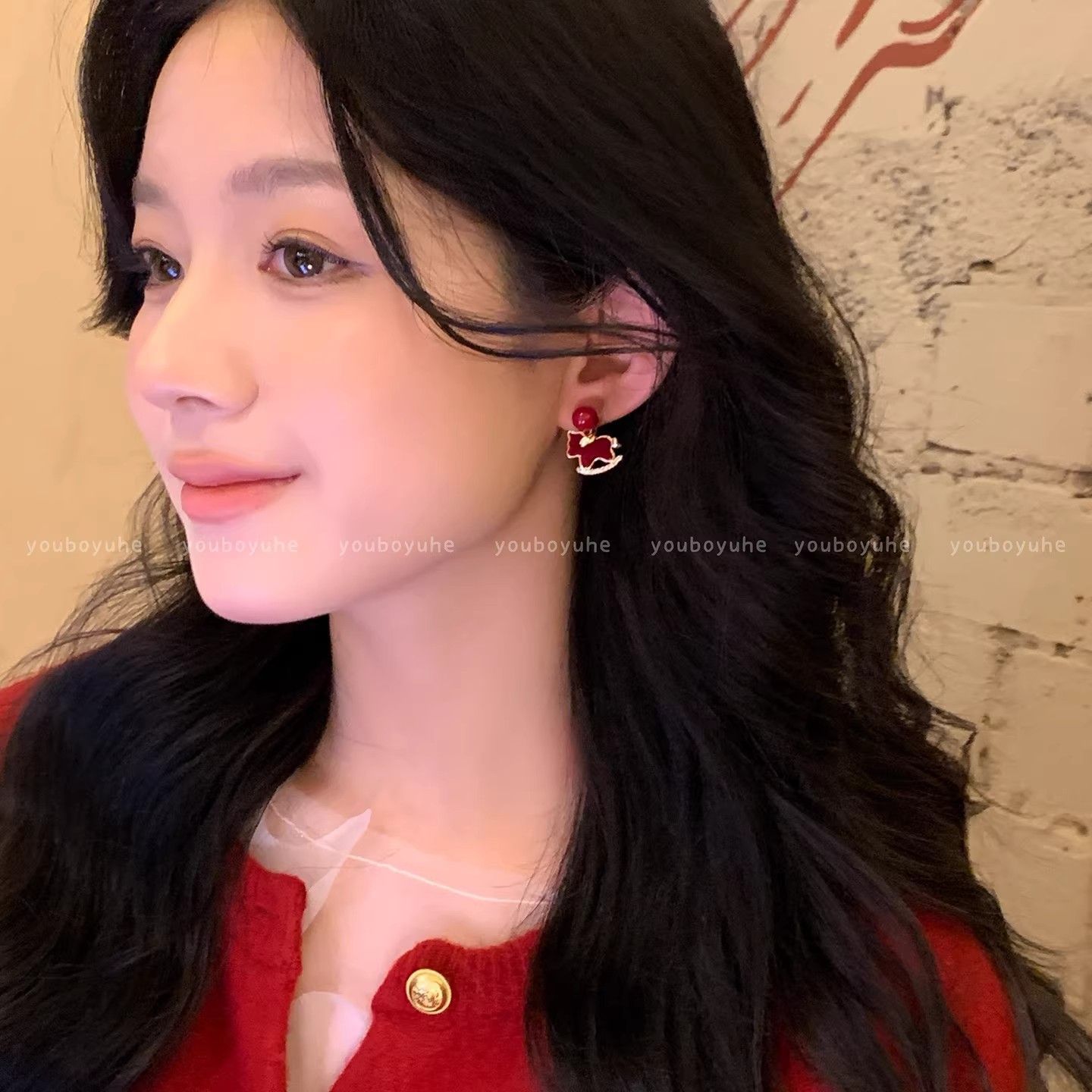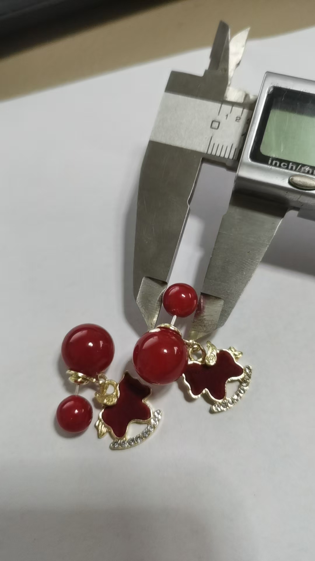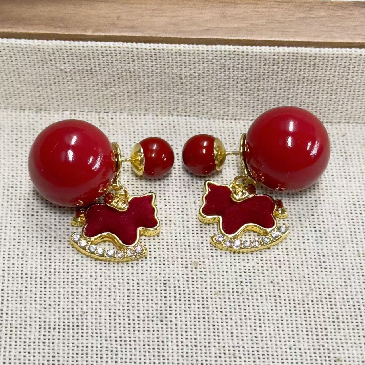 3563 red pearl hanging on back of ear
