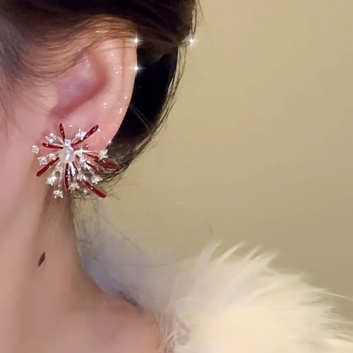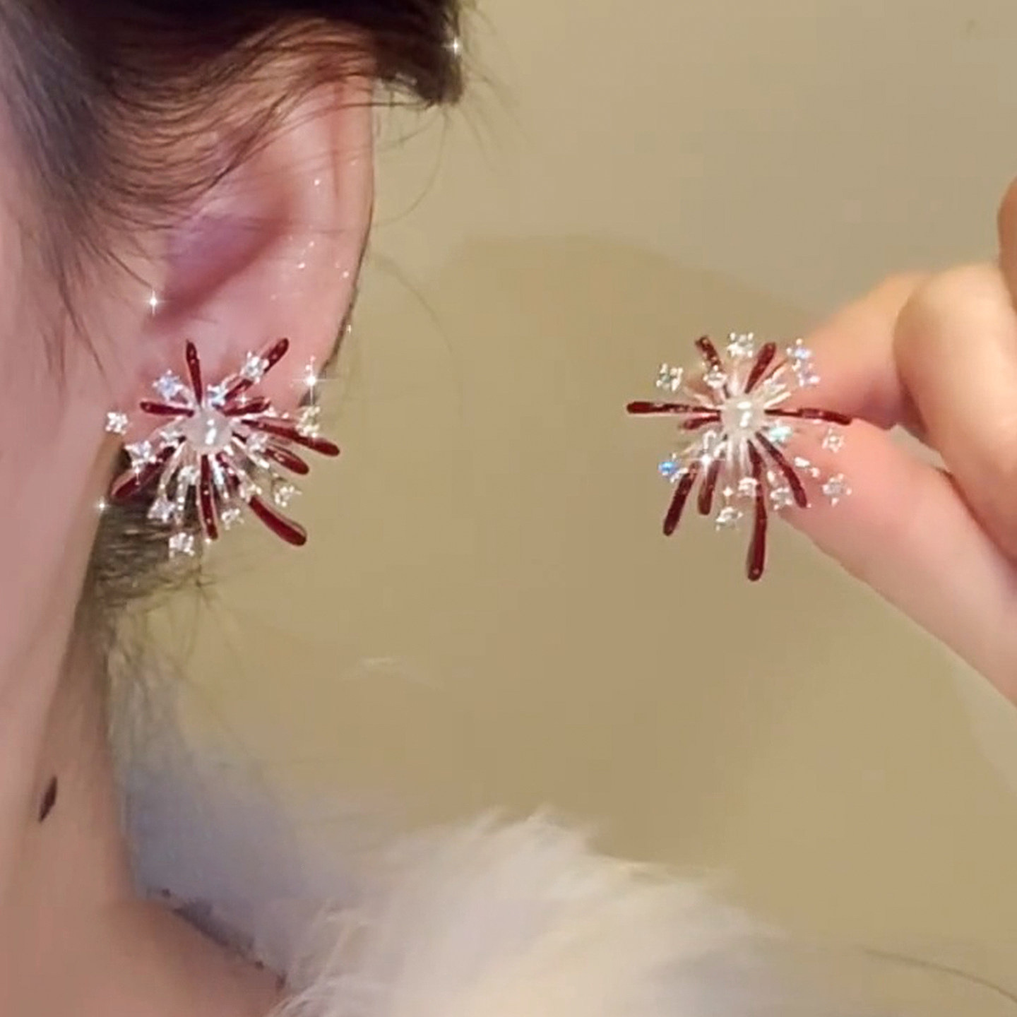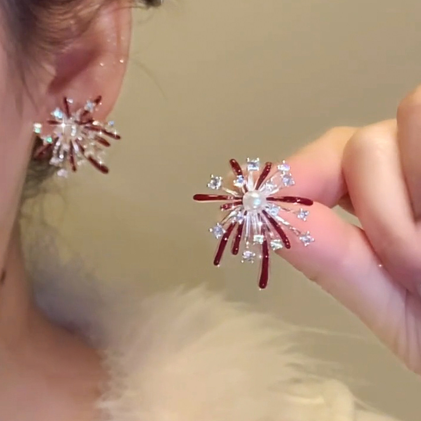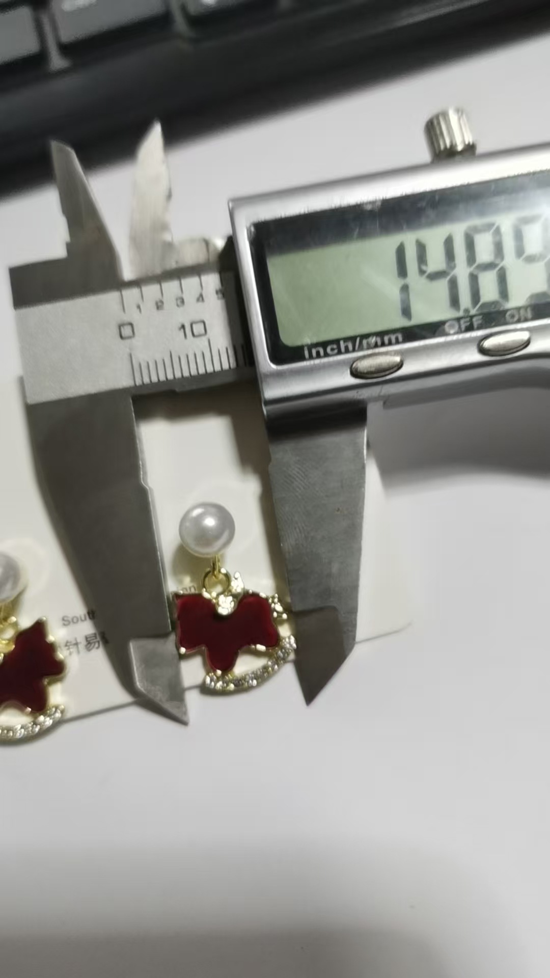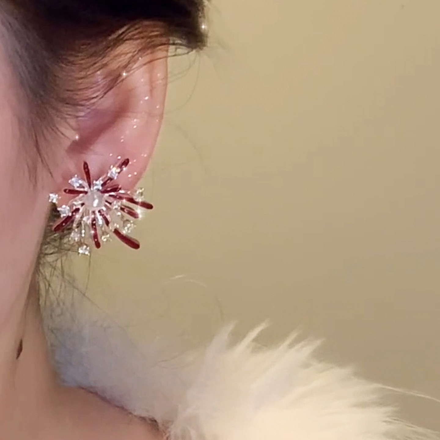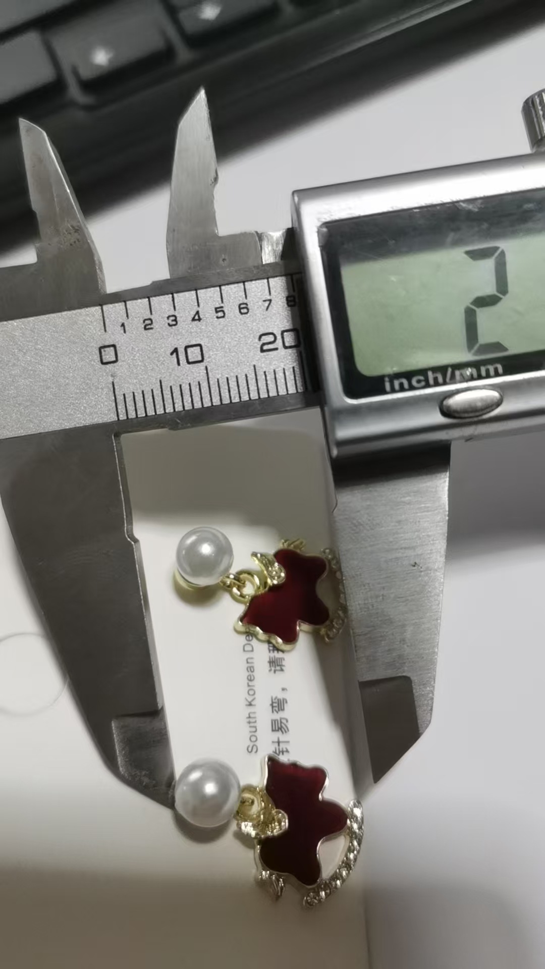 3563 red pearl hanging on back of ear