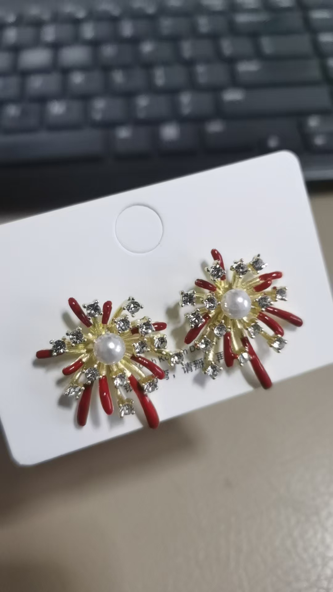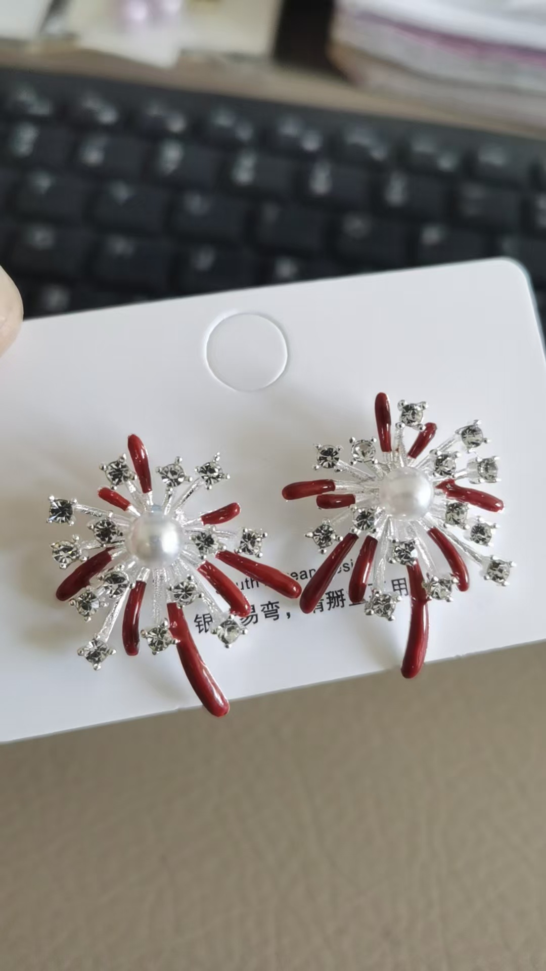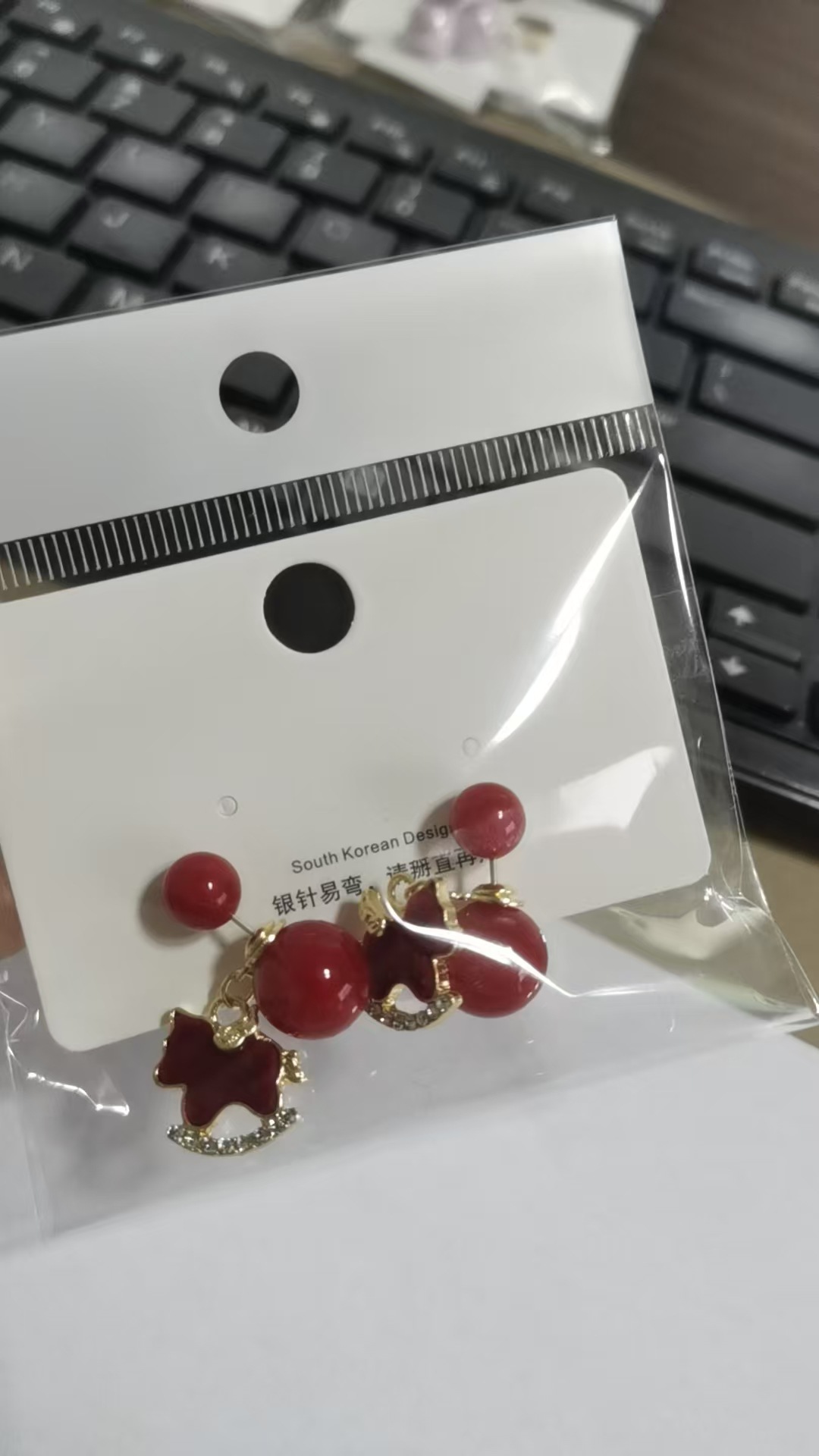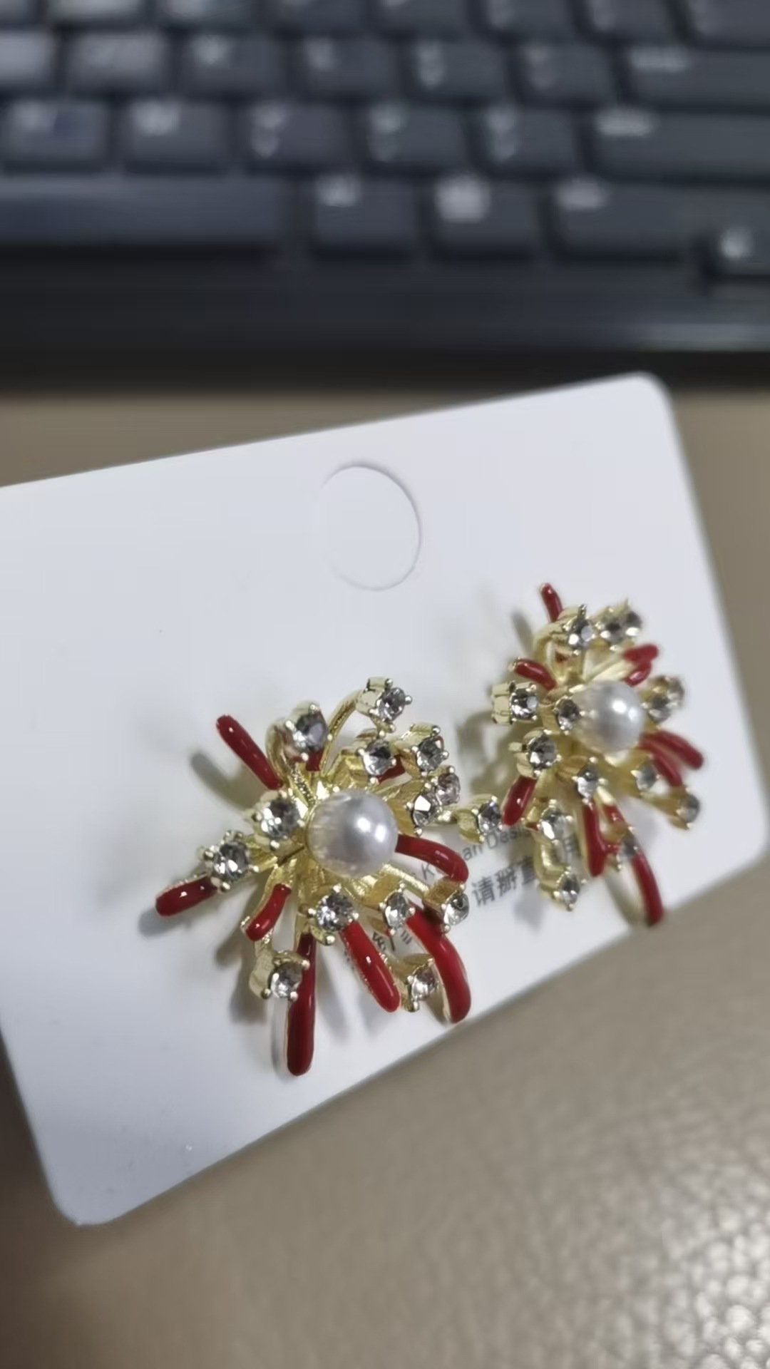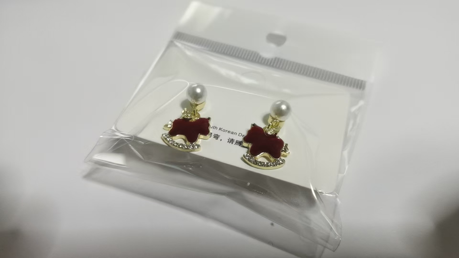 3563 red pearl hanging on back of ear