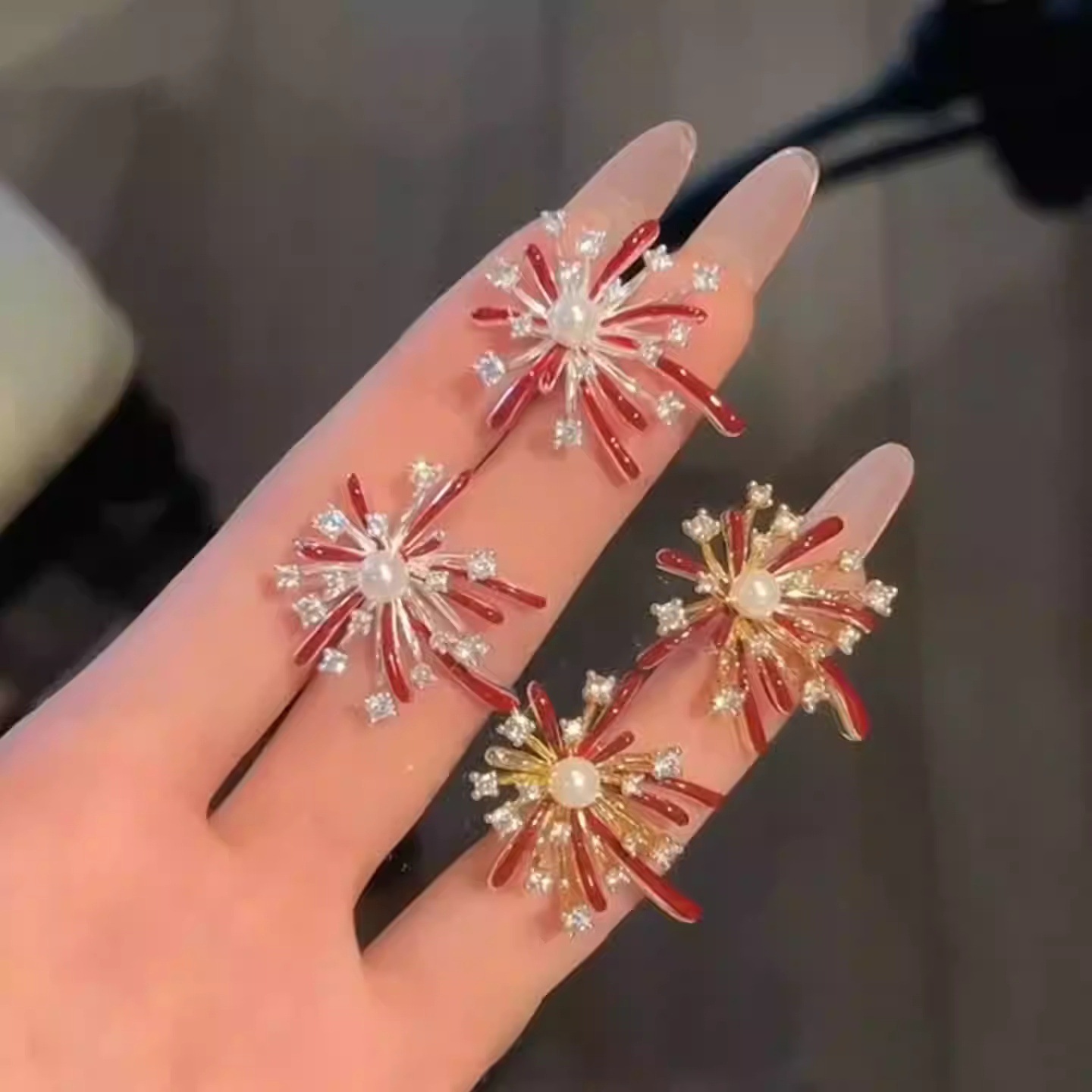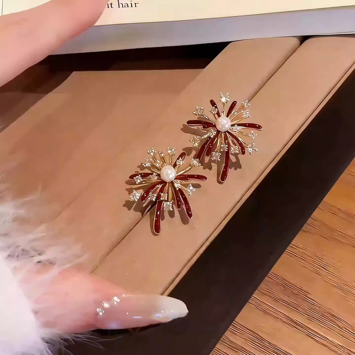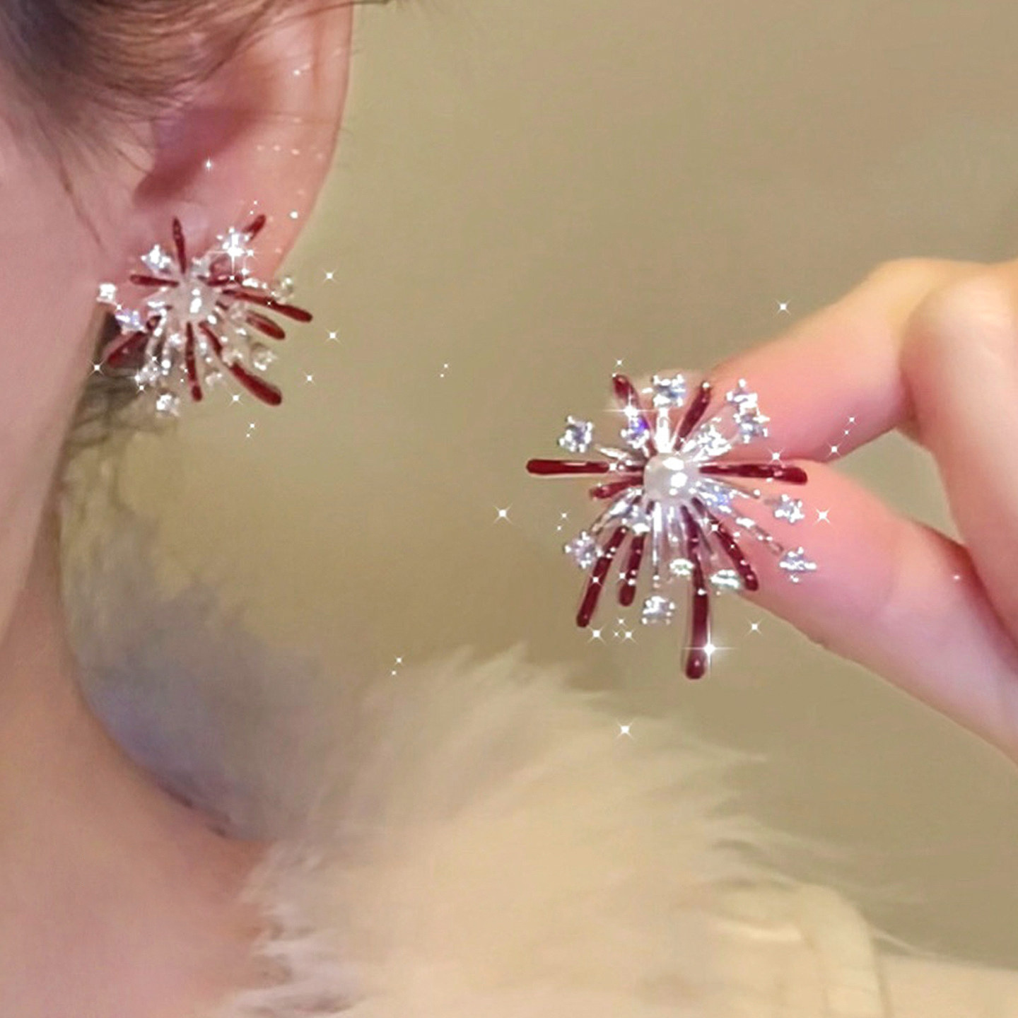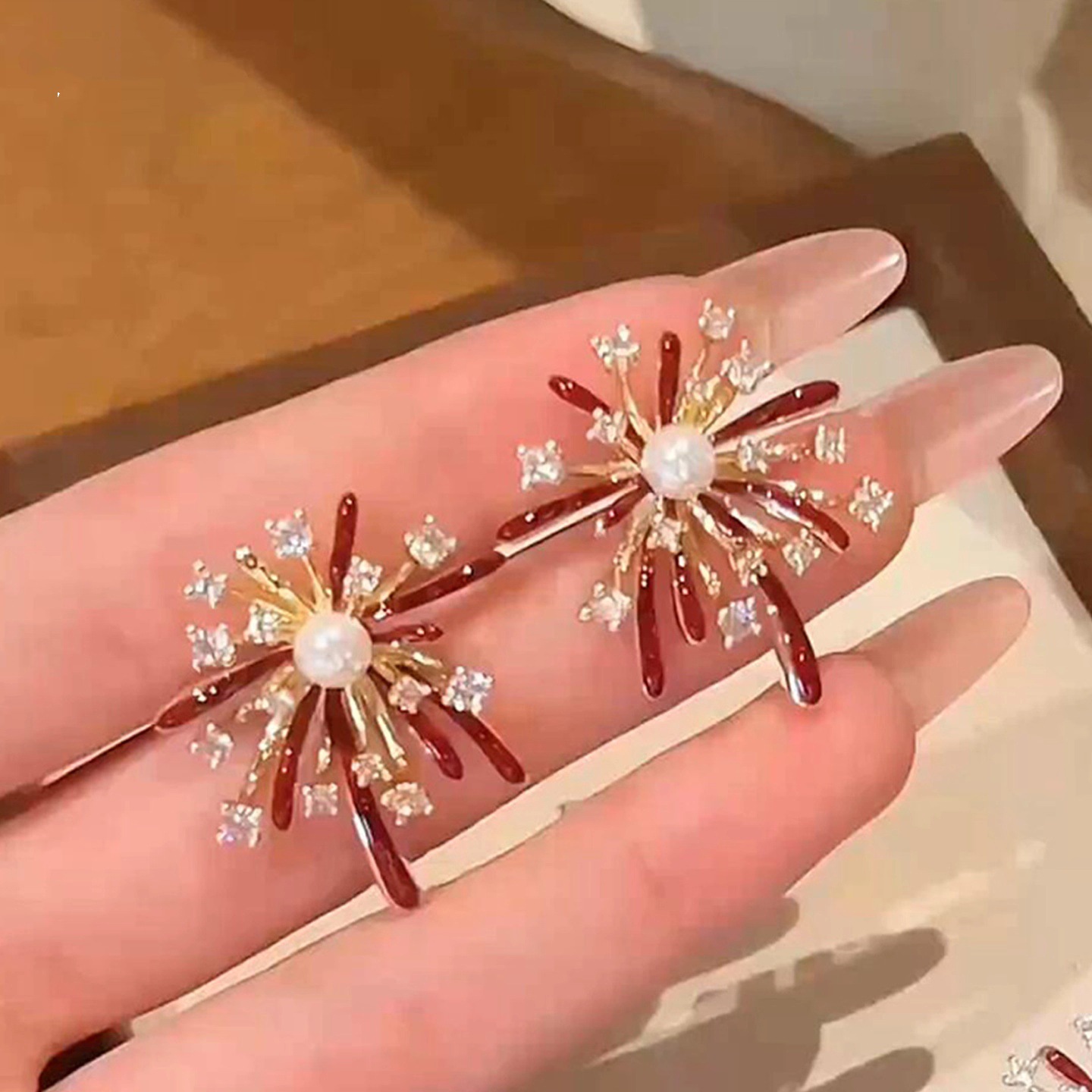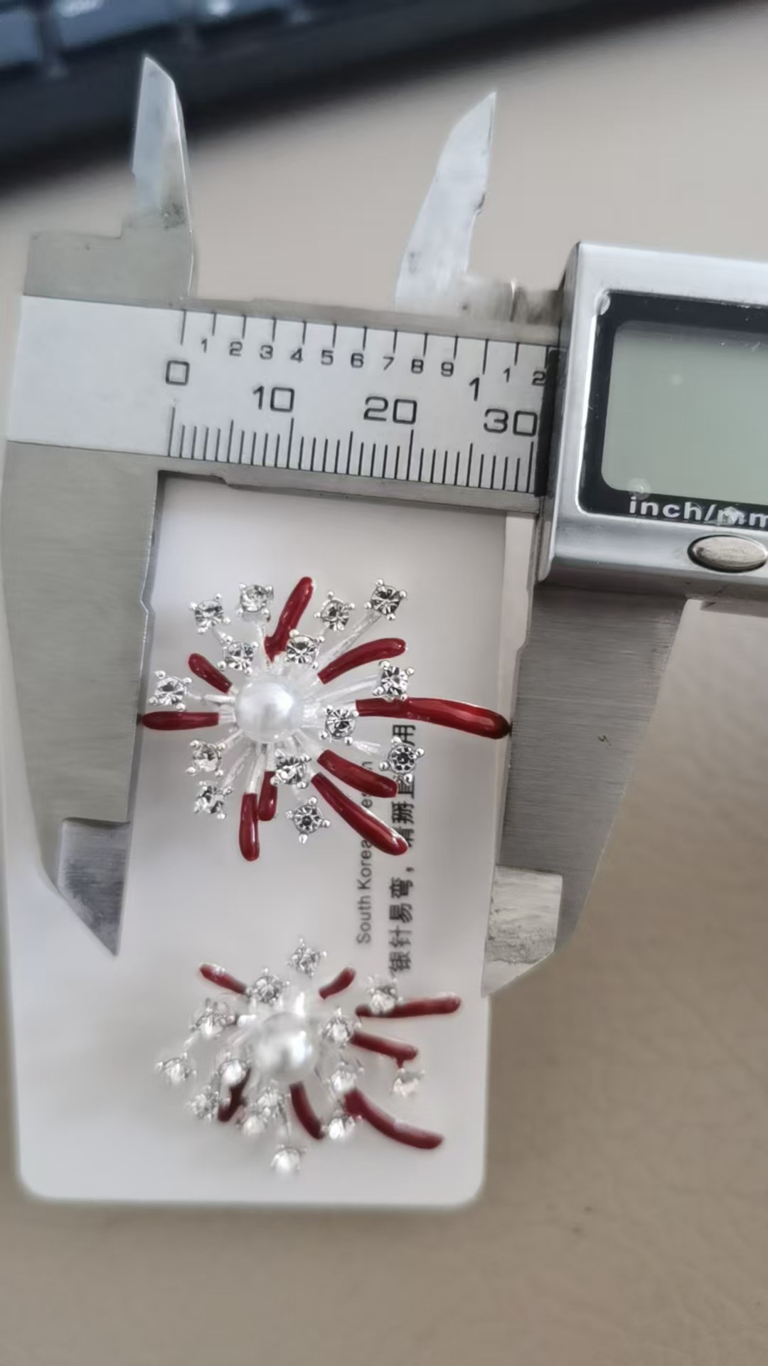 3563 red pearl hanging on back of ear