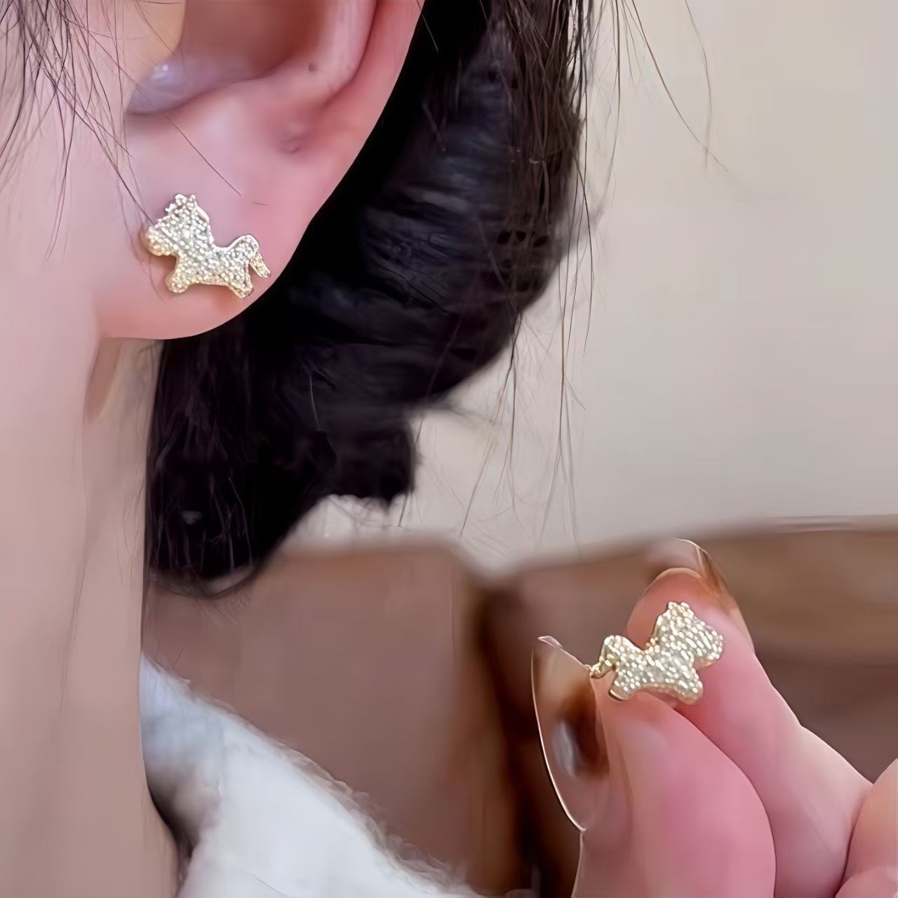 3553 gold pony stud earrings