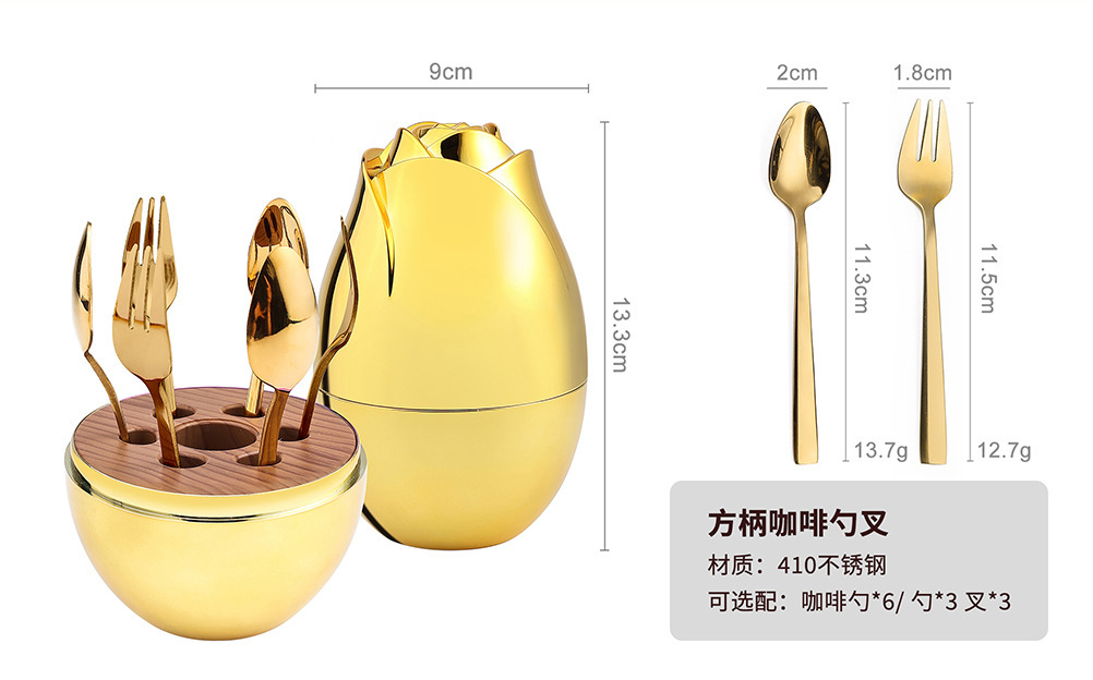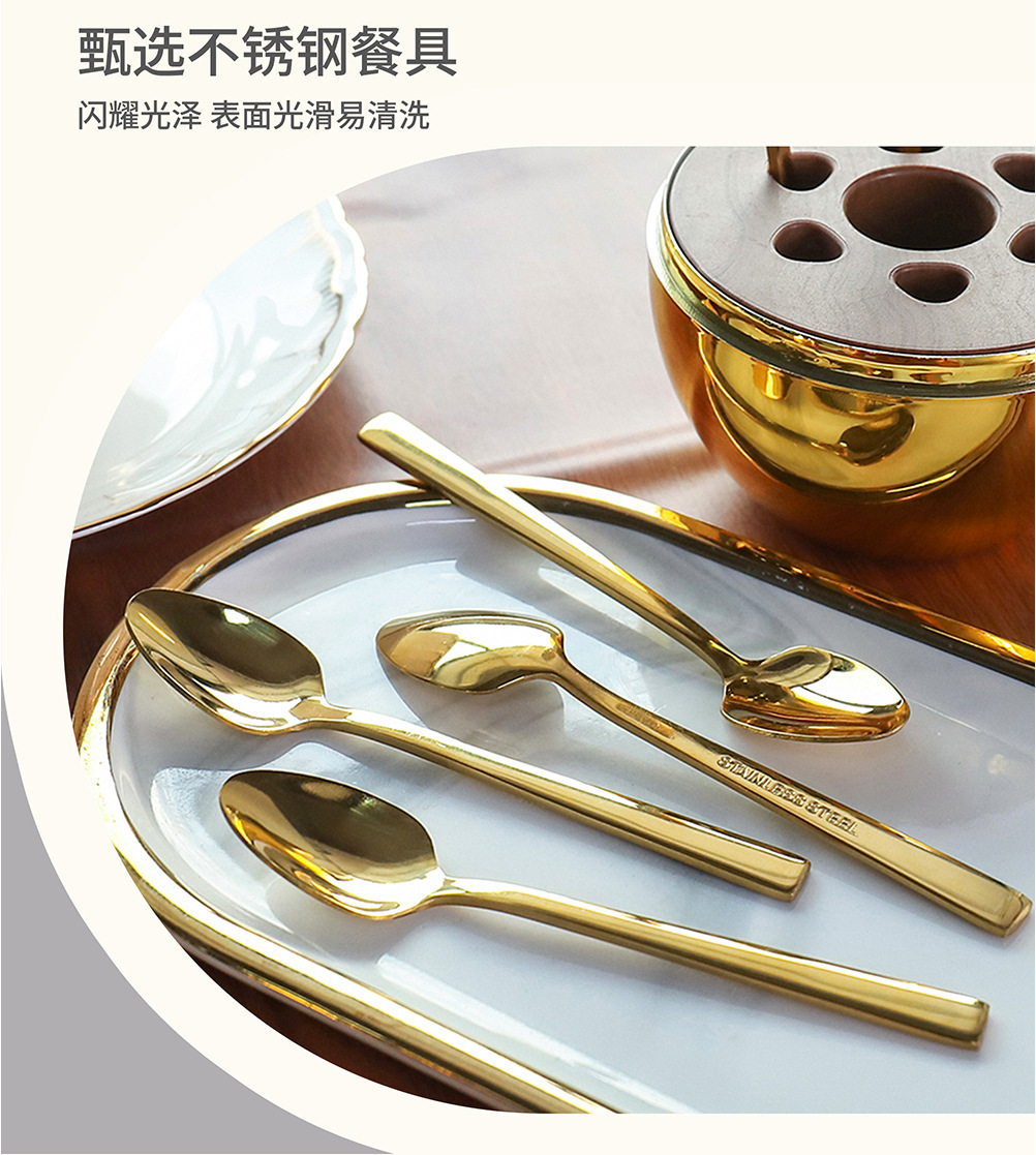 specifications: [gold] gold square handle spoon fork 6pcs, [purple gold] gold