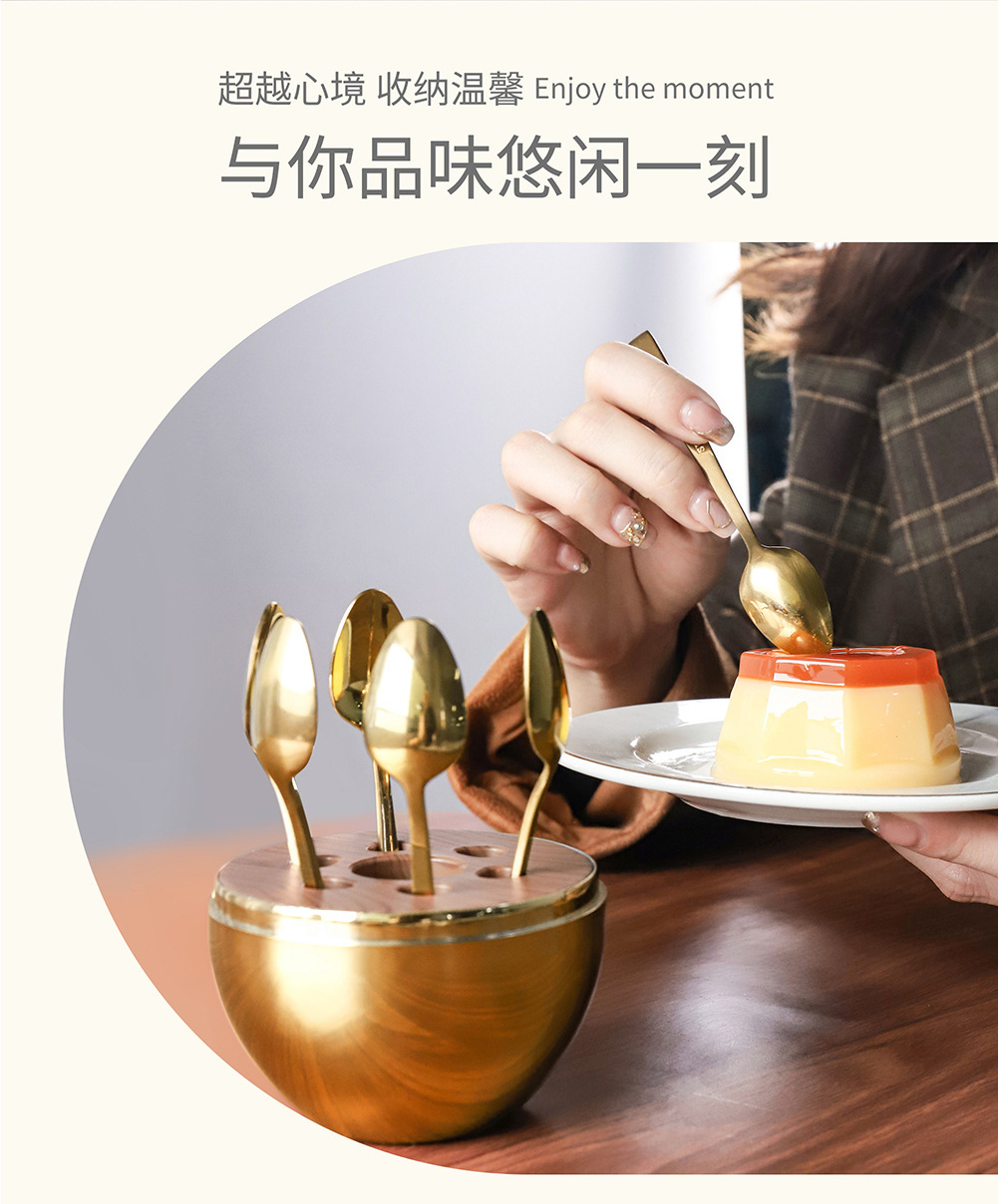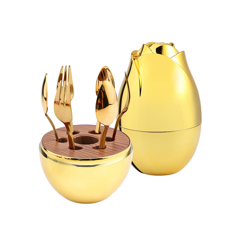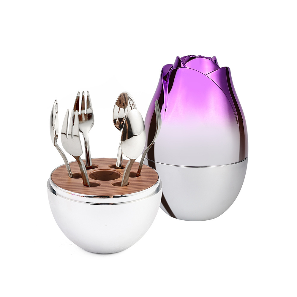 [gold] gold square handle spoon fork 6pcs, [purple gold] gold
