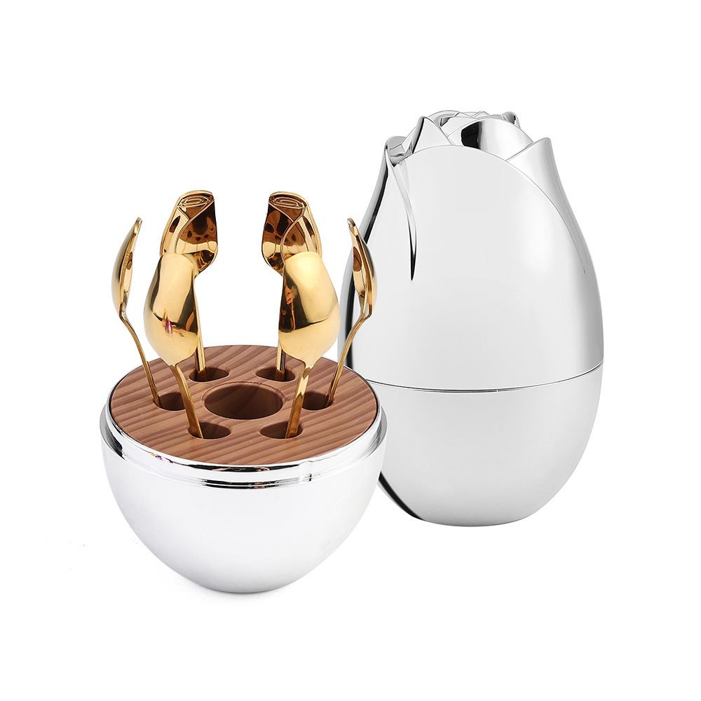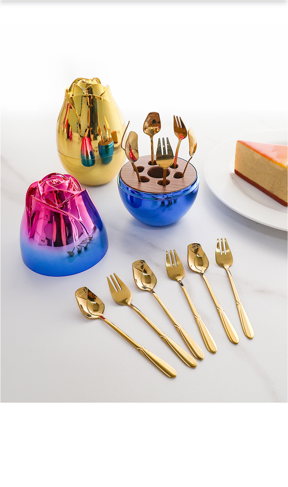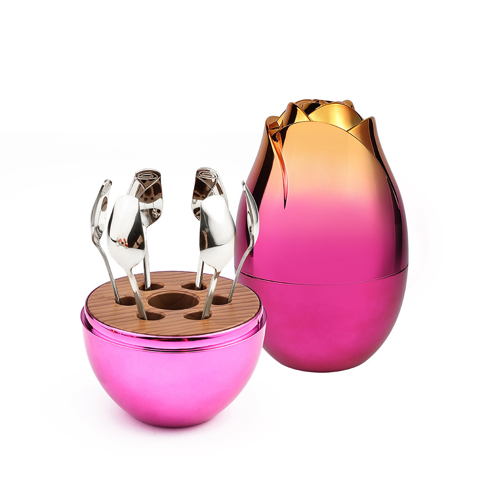 [gold] gold square handle spoon fork 6pcs, [purple gold] gold