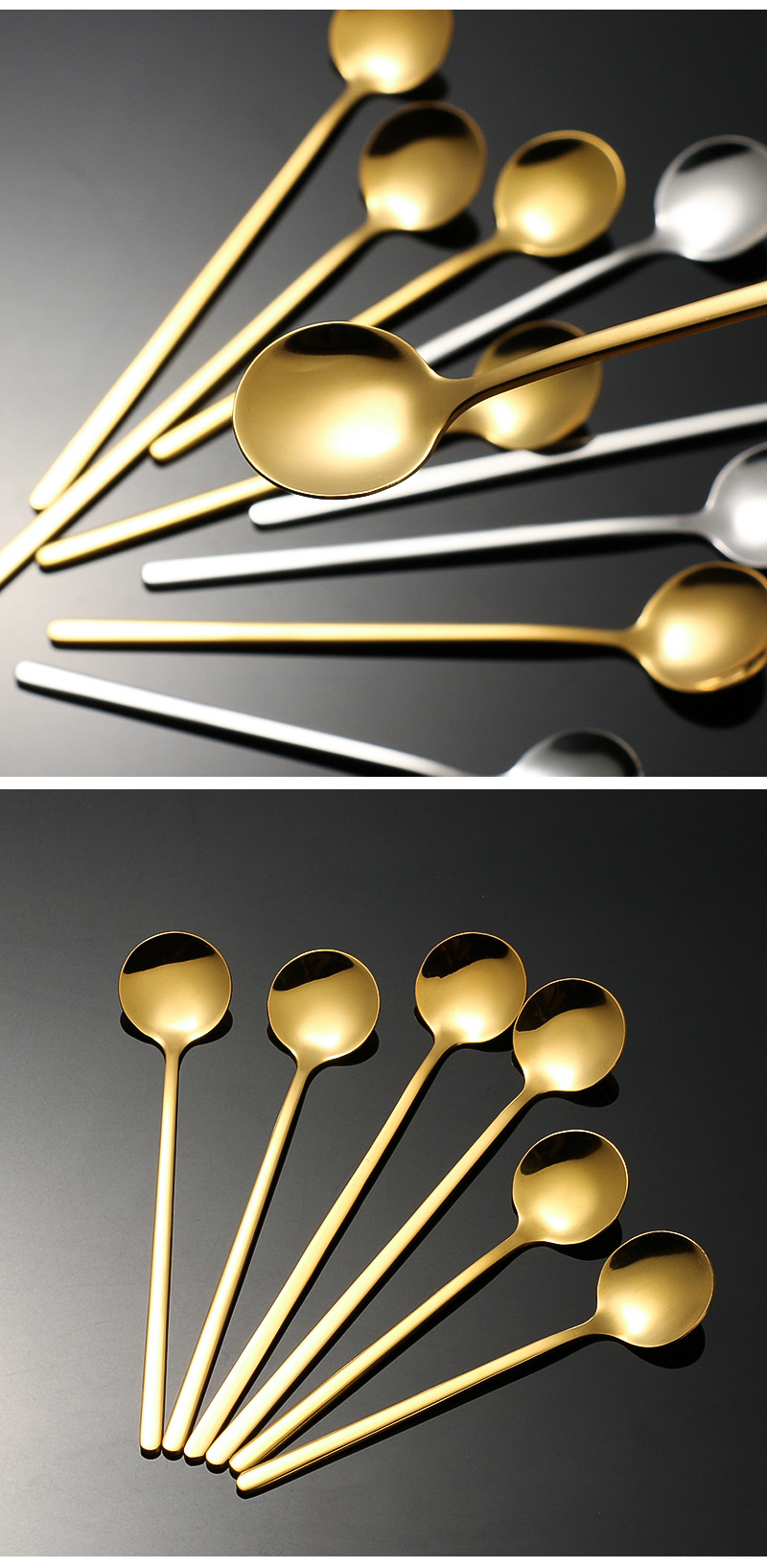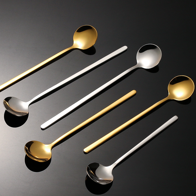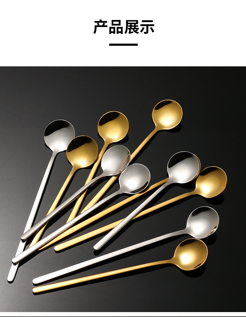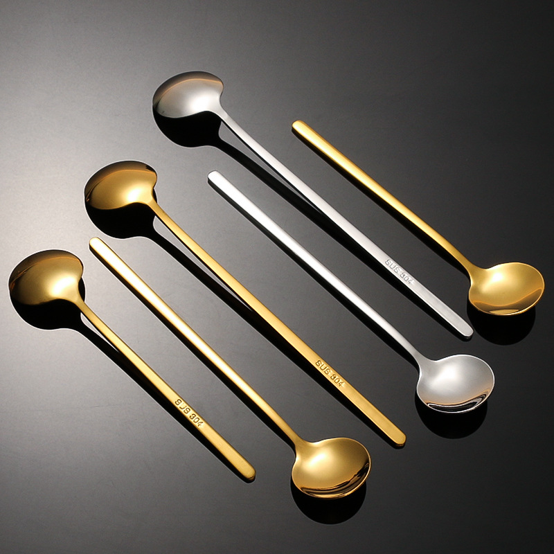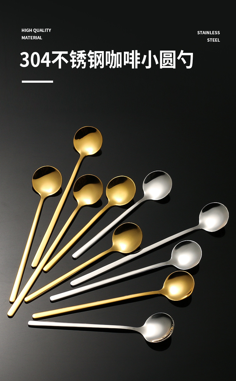 korean style instagram 304 stainless steel small round spoon golden coffee stir spoon bird's nest tremella, a kind of semi-transparent white fungus spoon honey yogurt soup spoon