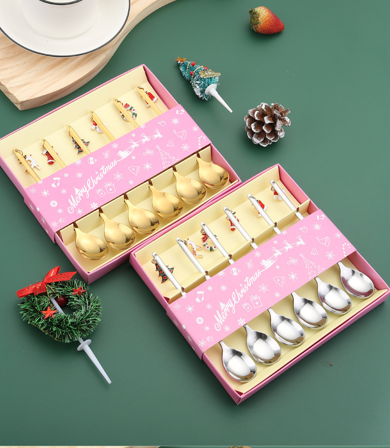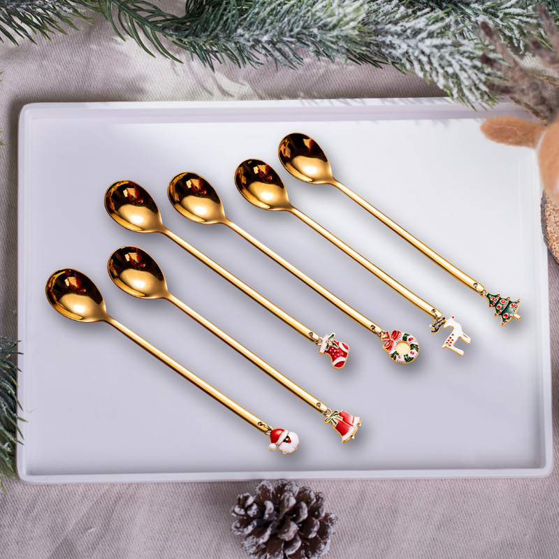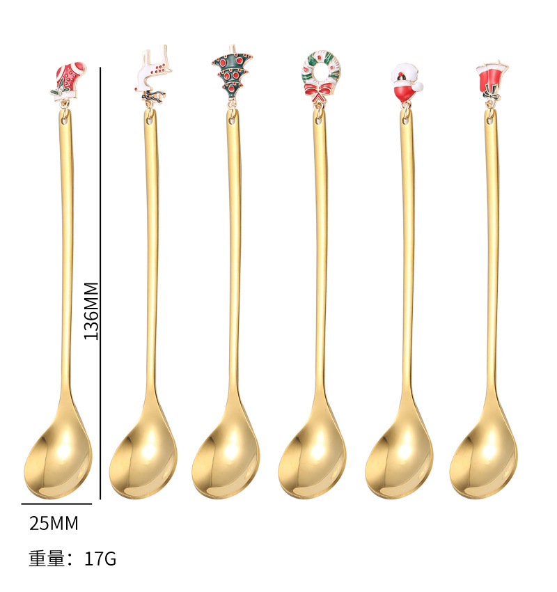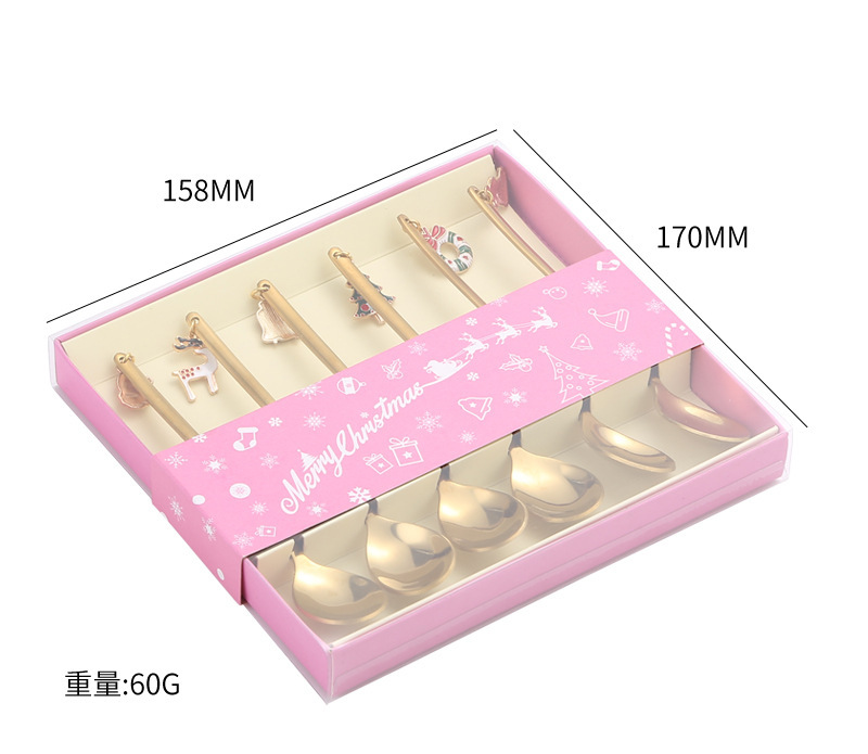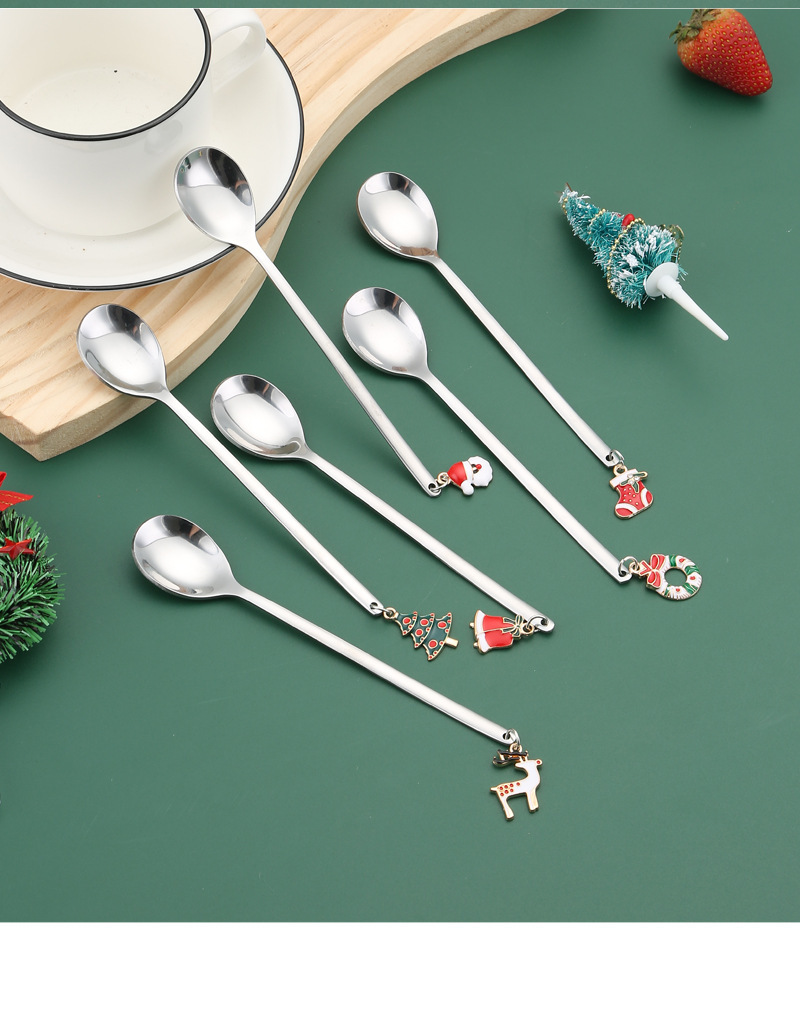 cross-border stainless steel christmas pendant spoon tableware set dessert spoon stirring spoon fork elk spoon gift set