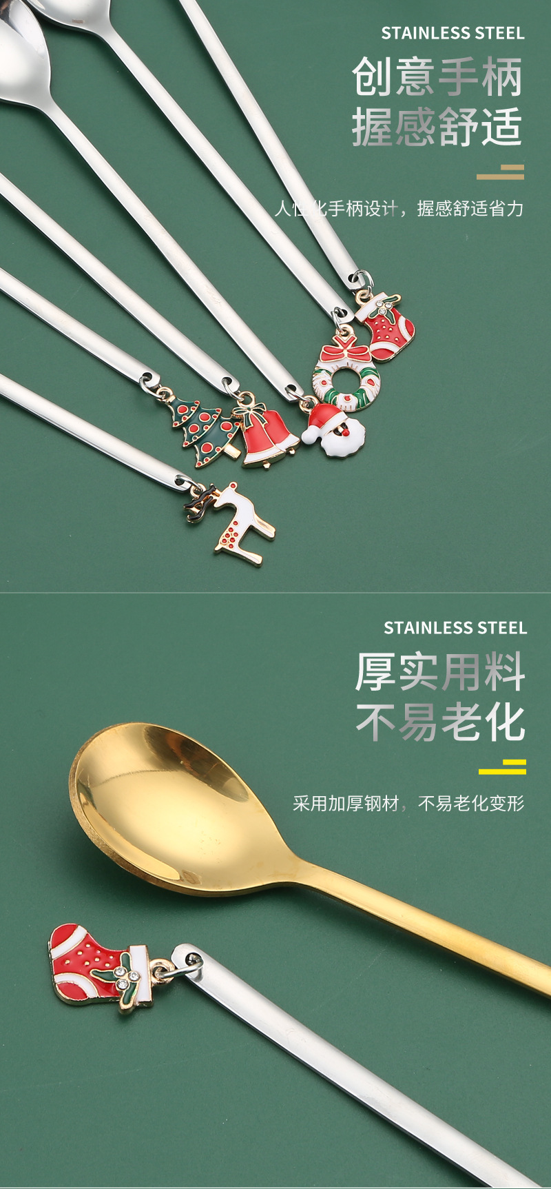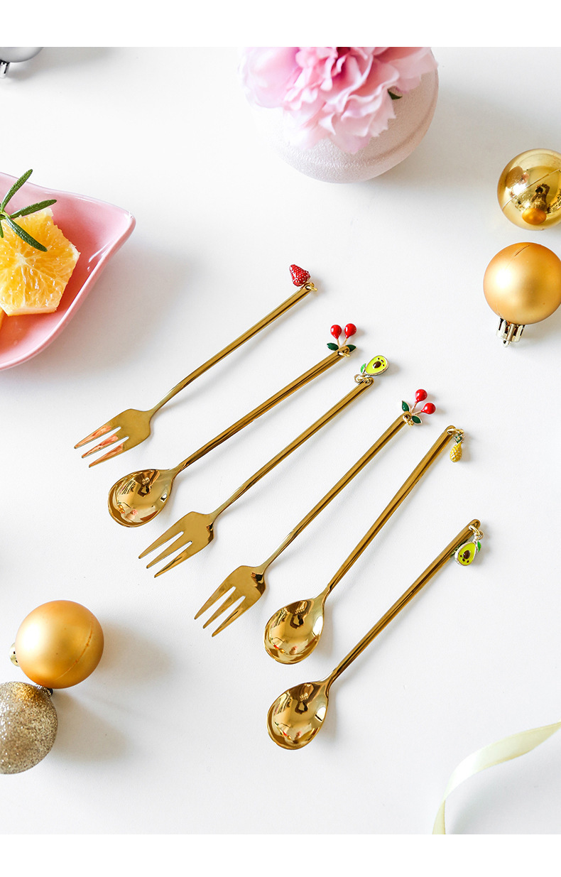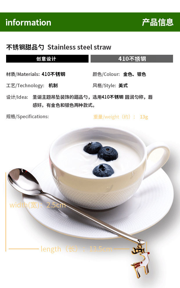 cross-border stainless steel christmas pendant spoon tableware set dessert spoon stirring spoon fork elk spoon gift set