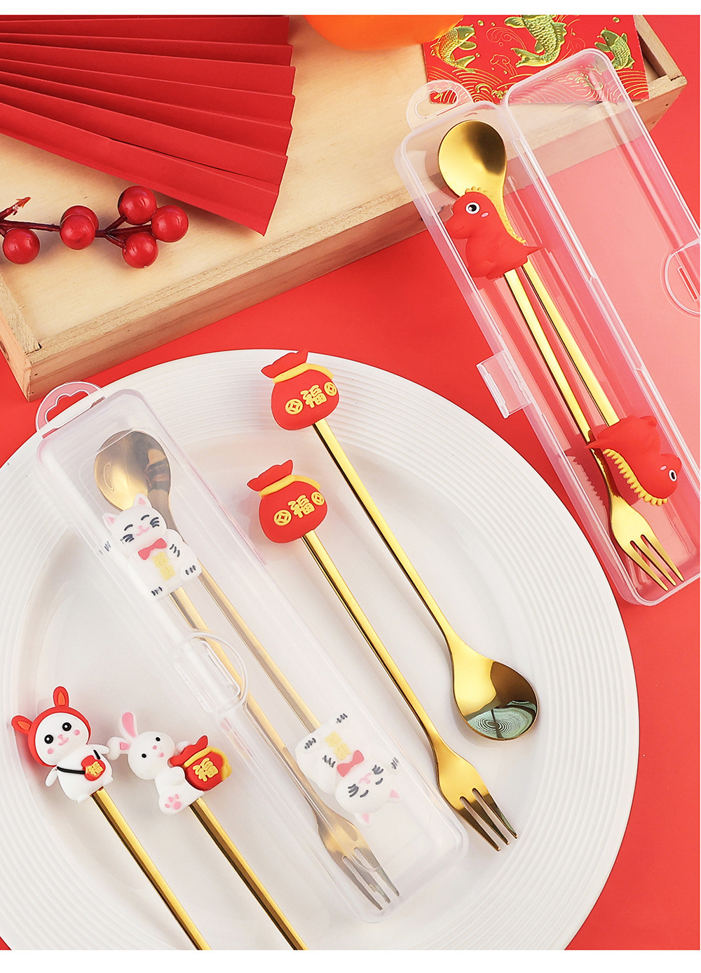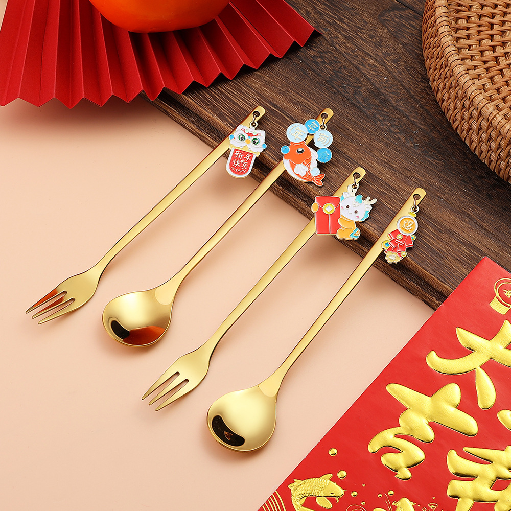 new year 2-piece set (dragon treasure + lucky dragon), model a- new year spoon