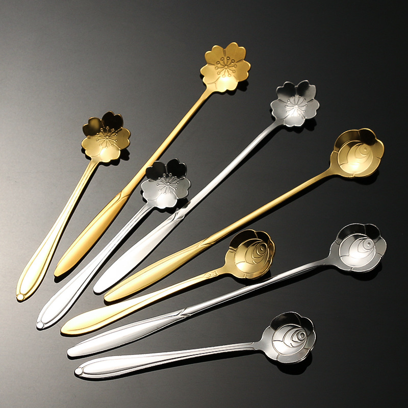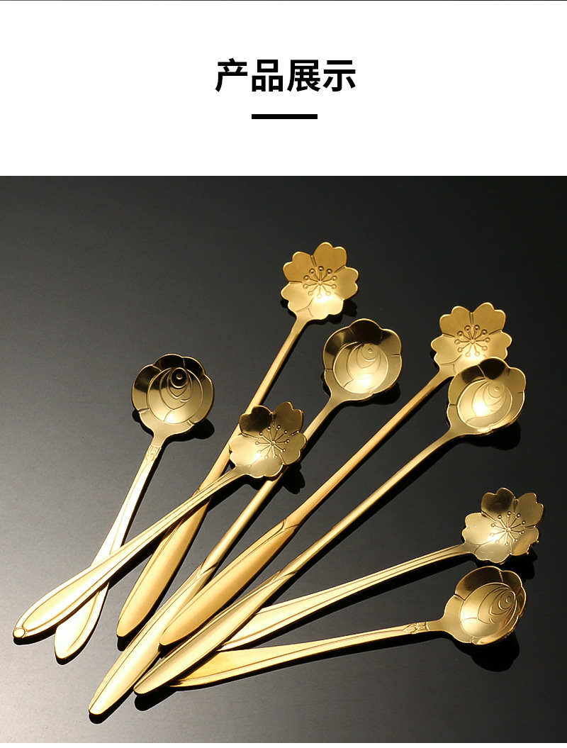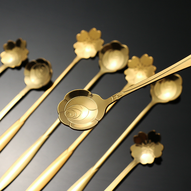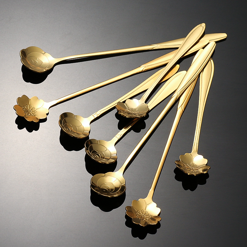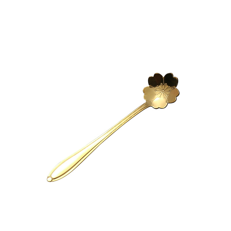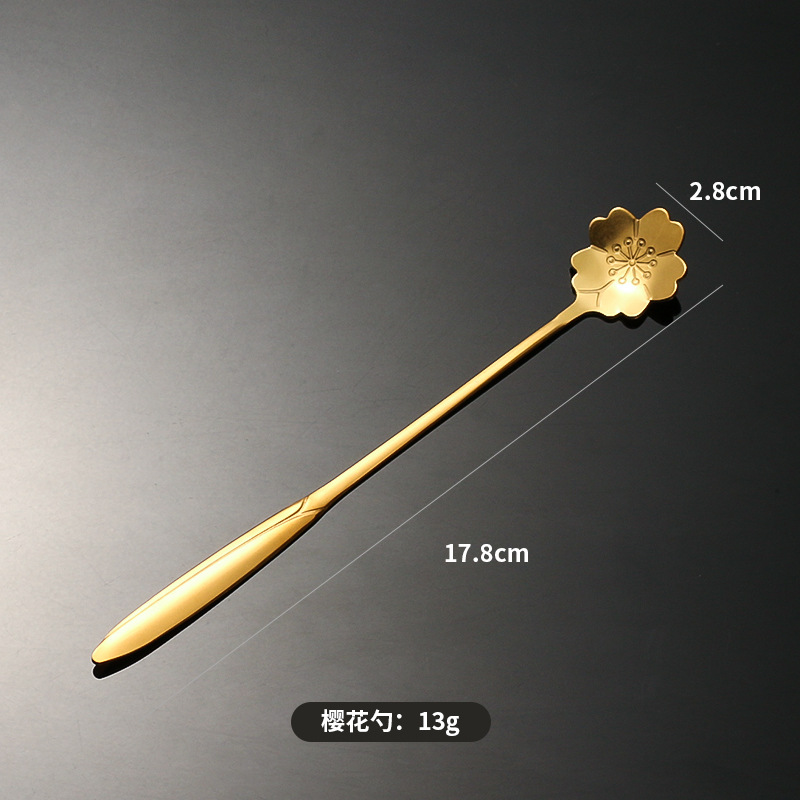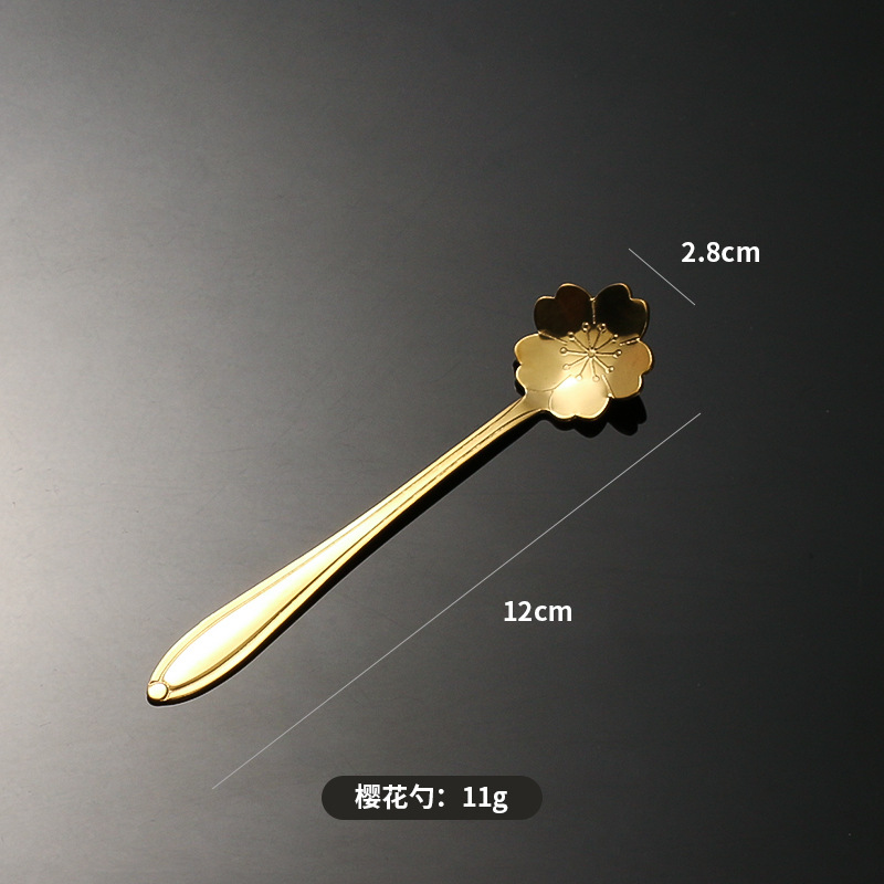 stainless steel golden flower cherry blossom spoon bird's nest honey spoon dessert spoon mug glass spoon gift hand