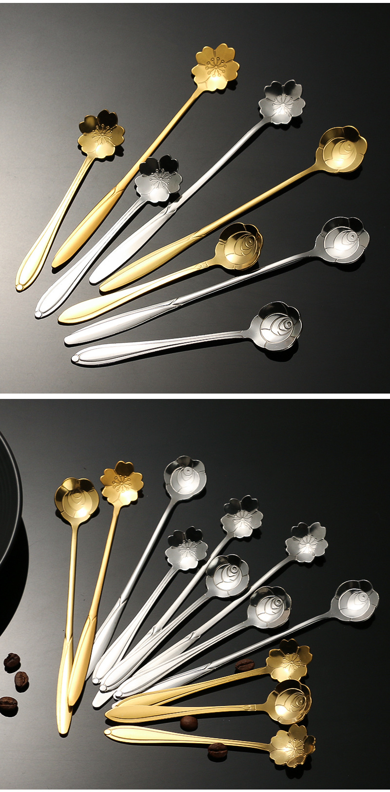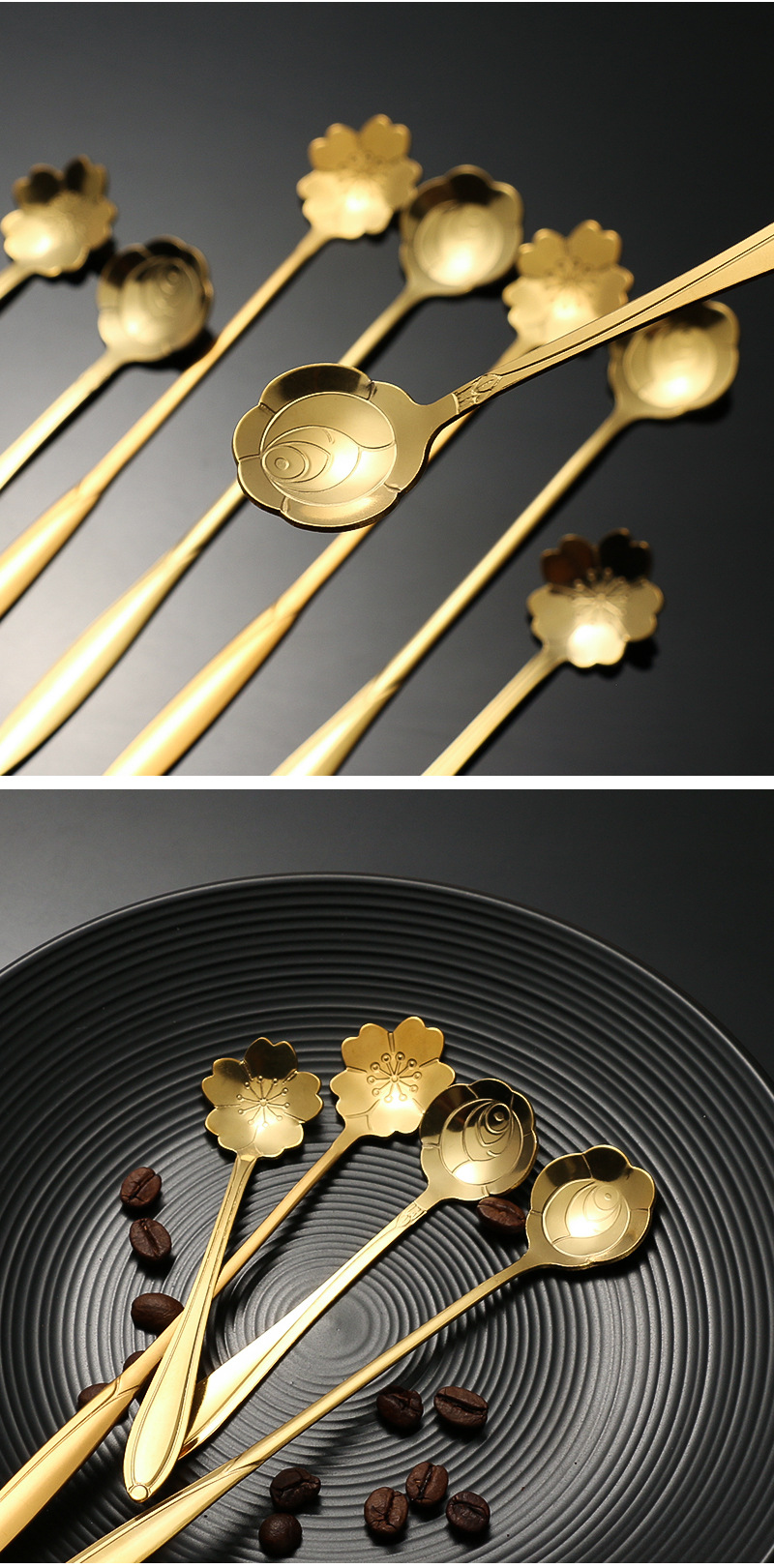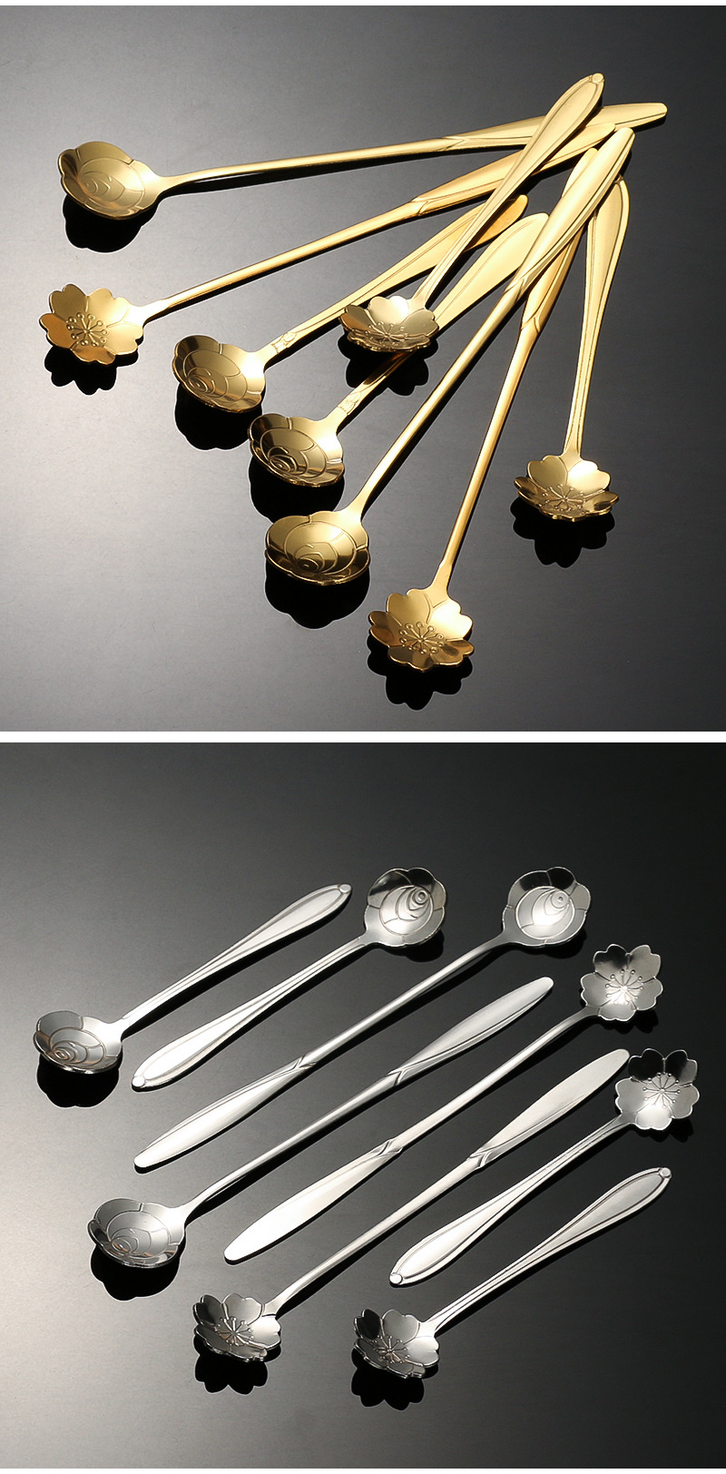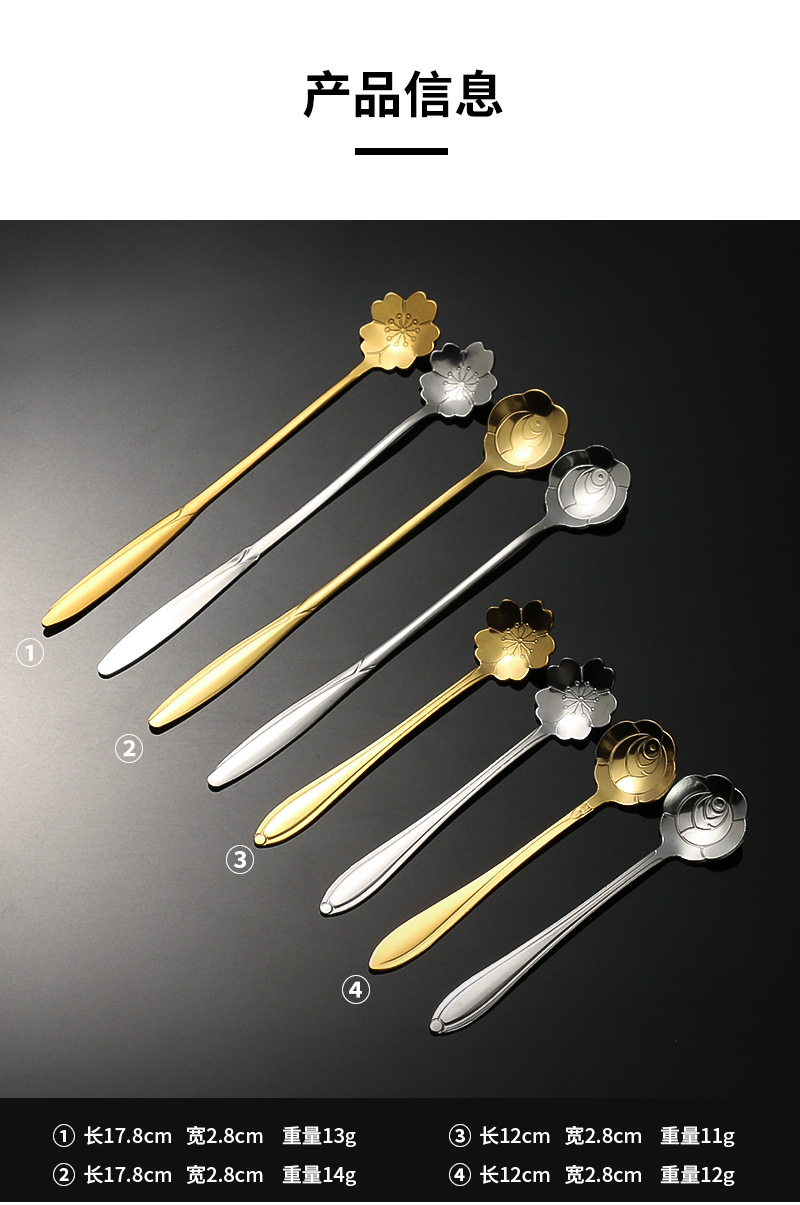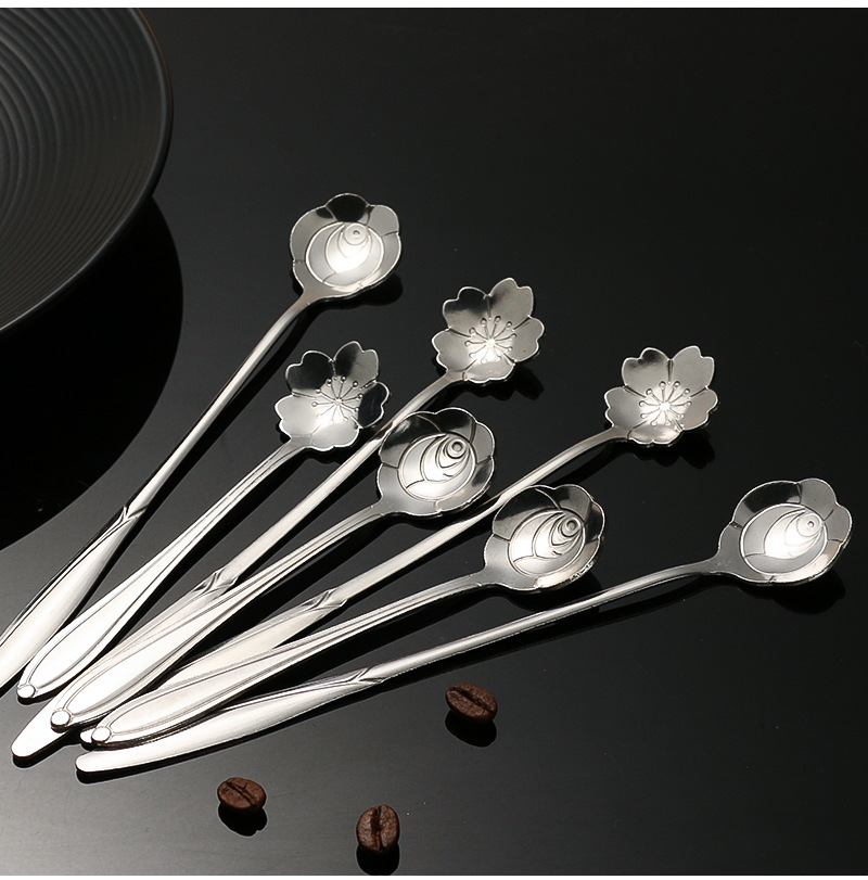 stainless steel golden flower cherry blossom spoon bird's nest honey spoon dessert spoon mug glass spoon gift hand
