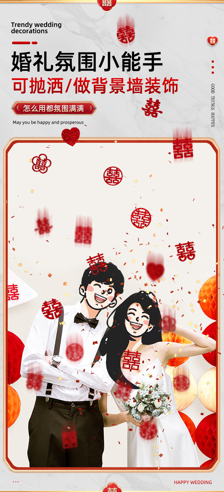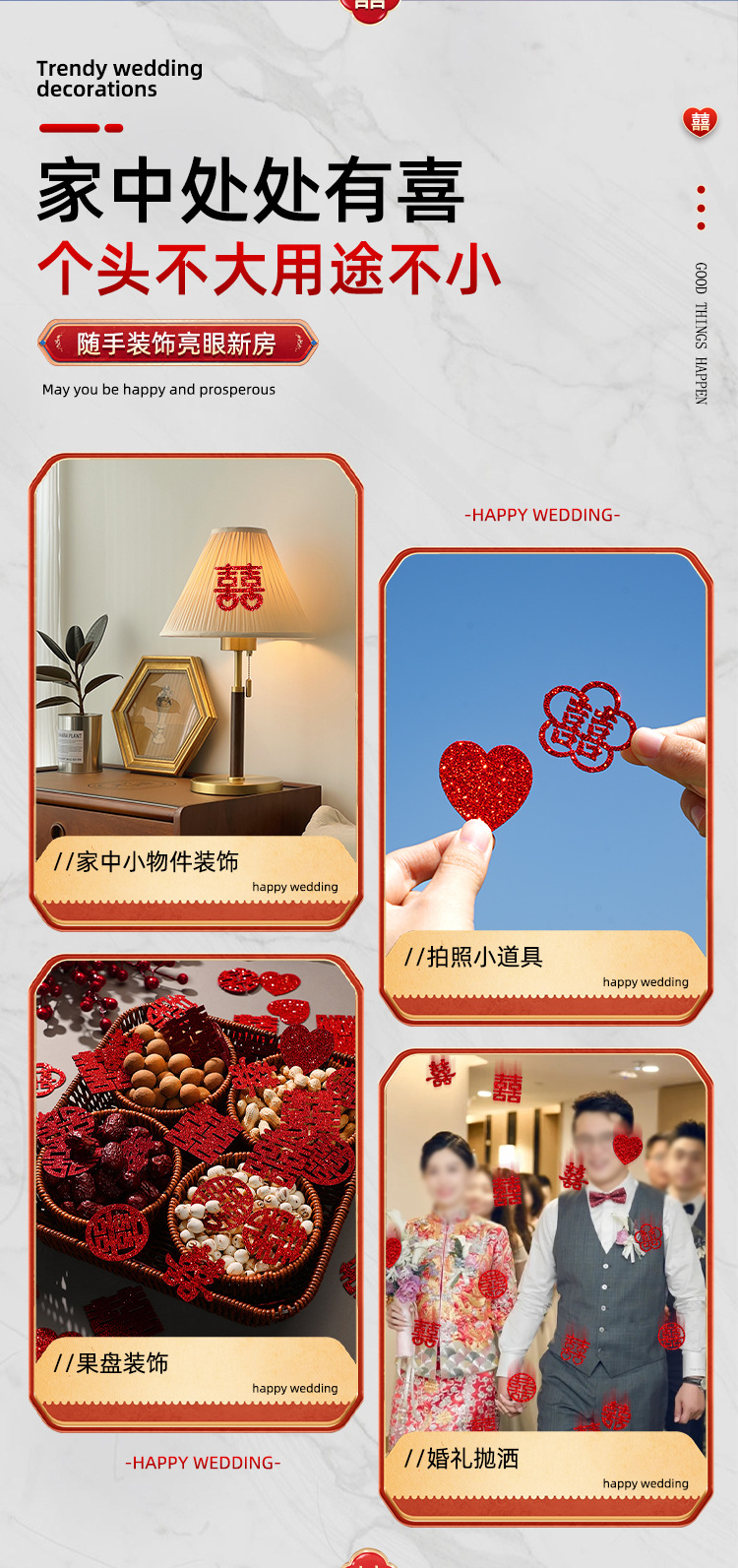 gold leaf small chinese character xi 10 styles mixed (300 pieces)
