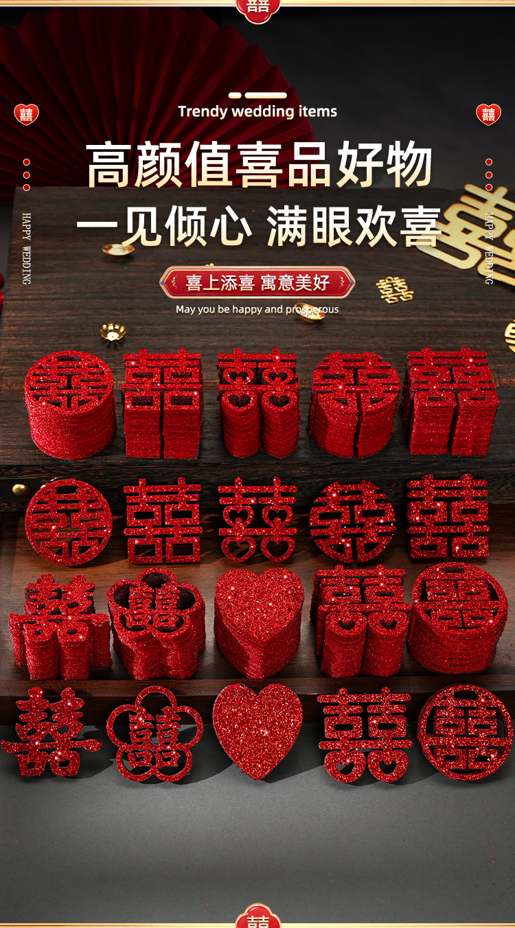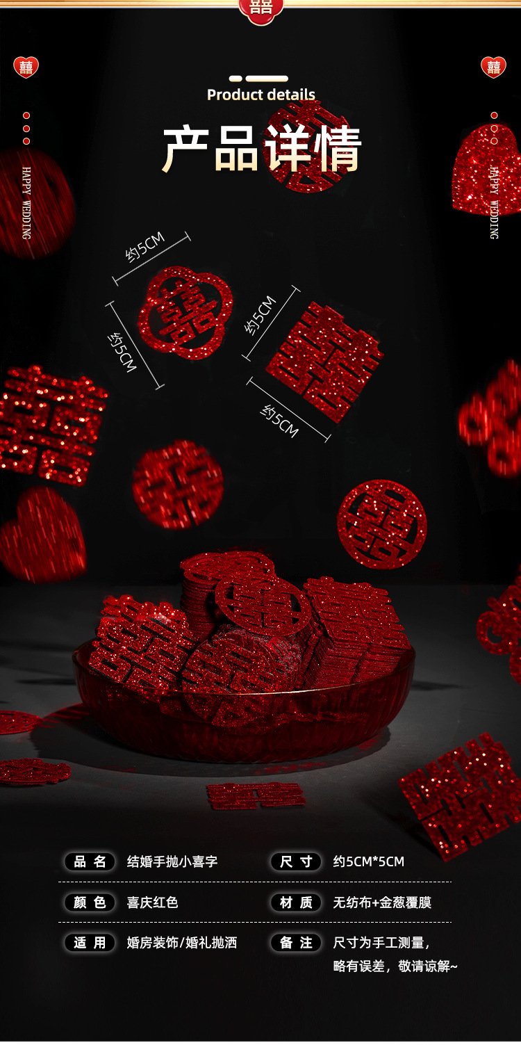 gold leaf small chinese character xi 10 styles mixed (200 pieces)