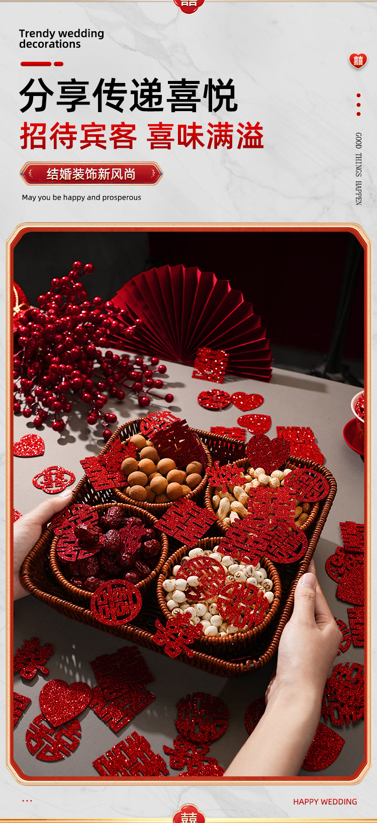 6 styles mixed gold leaf small chinese character xi (180 pieces)