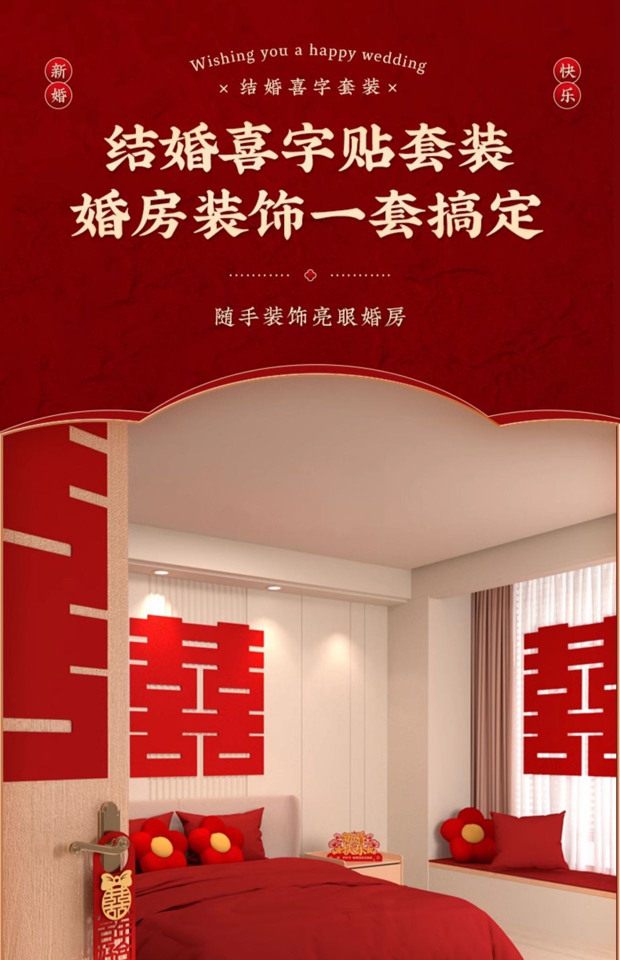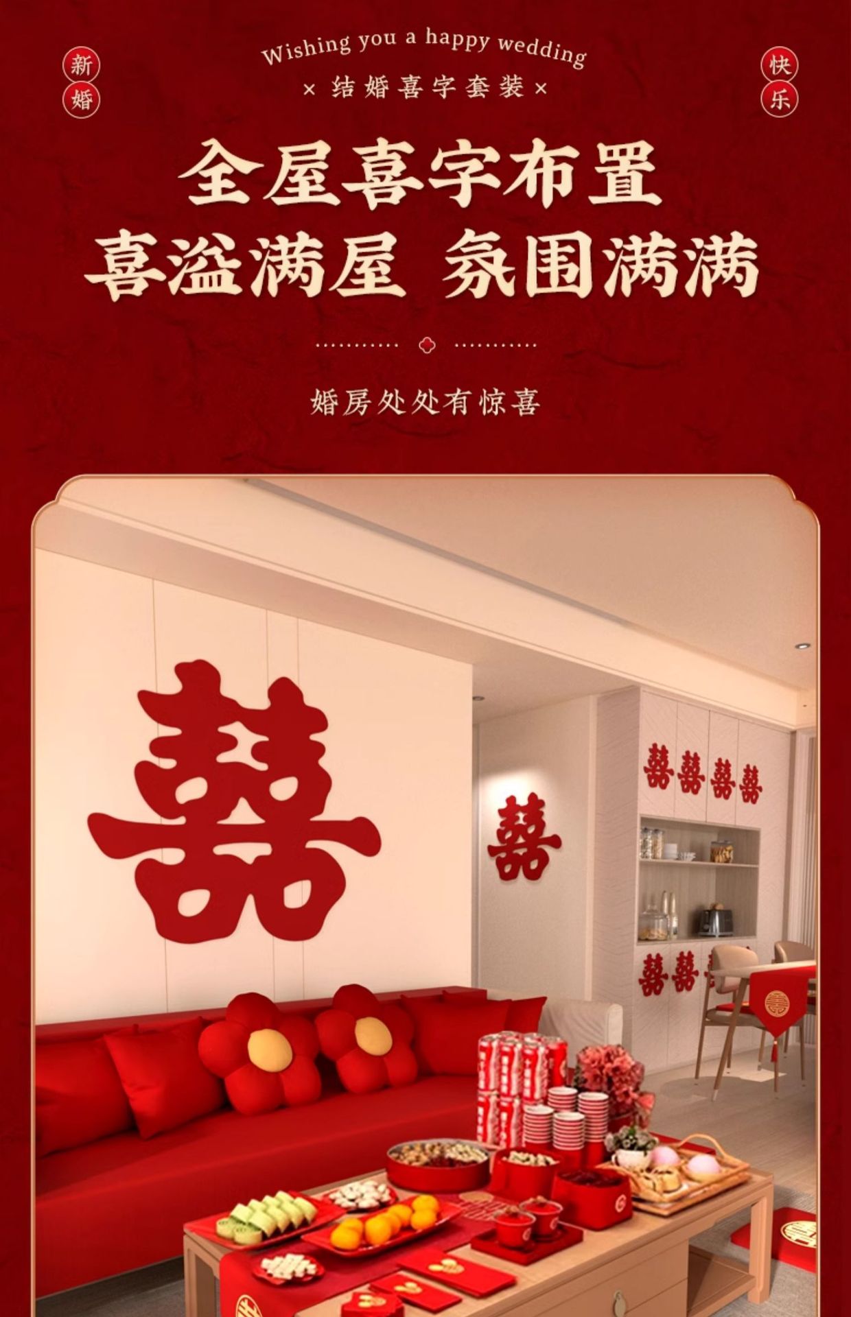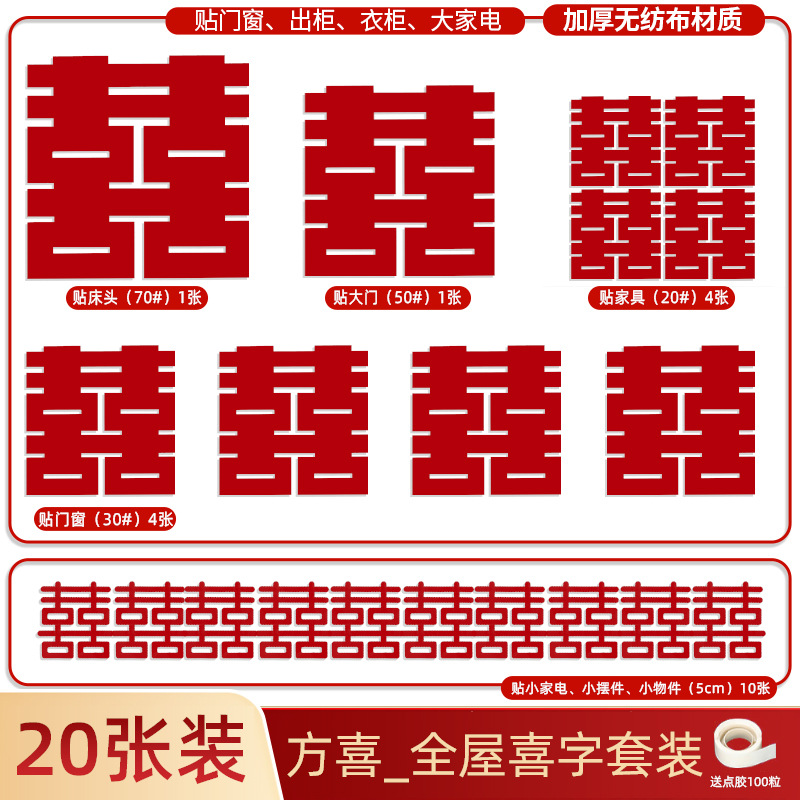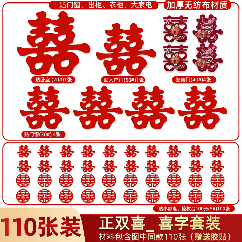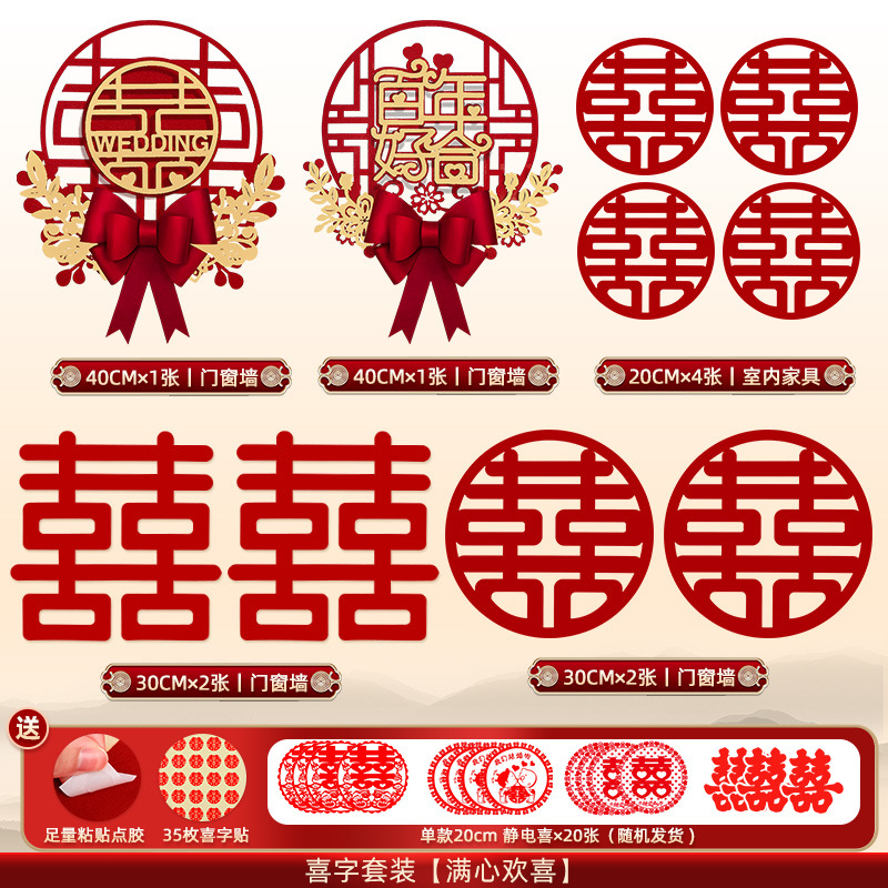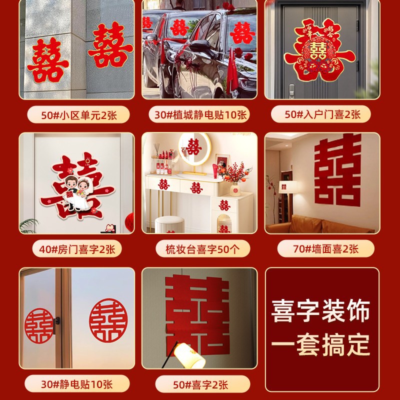 [130 pieces] the whole house xi decorations suit_positive double happiness
