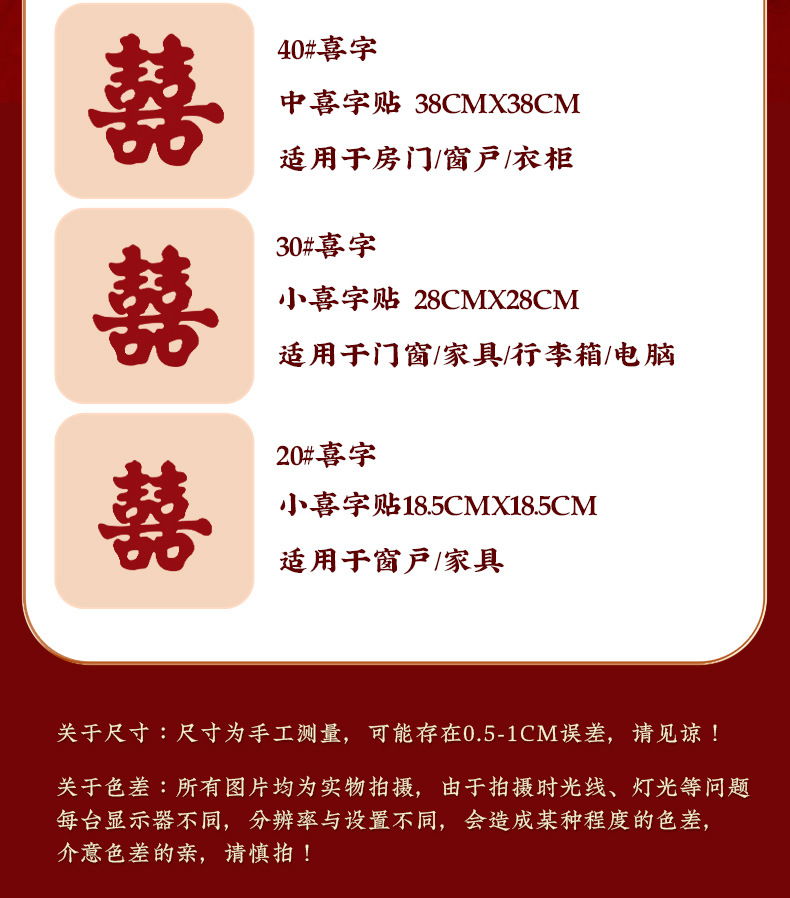 [60 sheets] flocking electrostatic red double happiness suit ☆☆☆ electrostatic adsorption