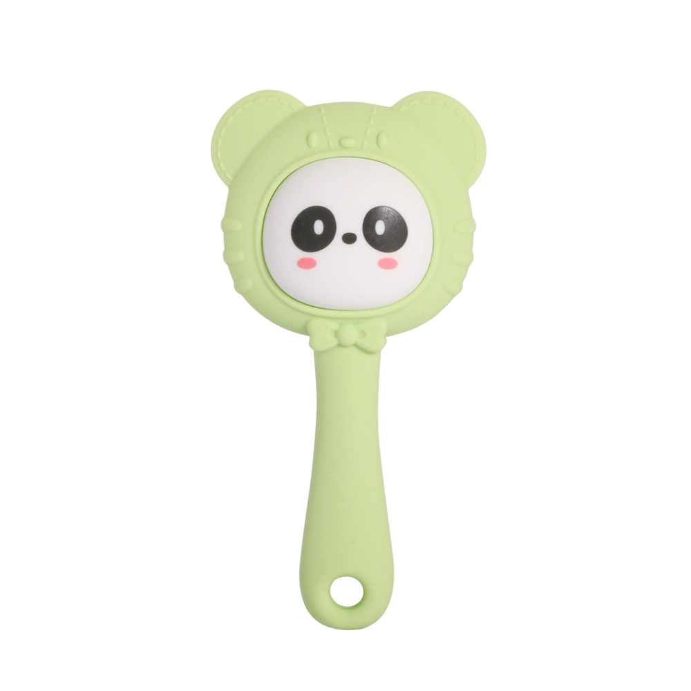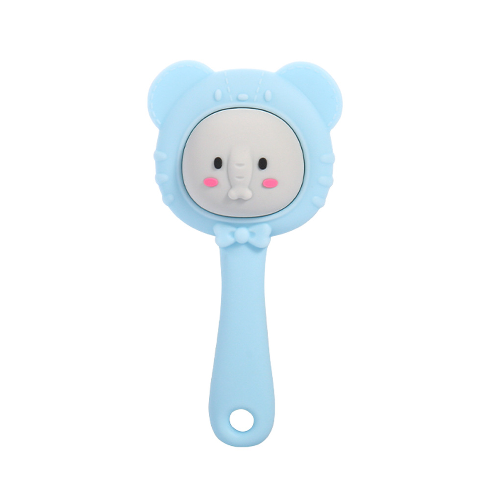 color: blue elephant, yellow bear, pink penguin, green panda