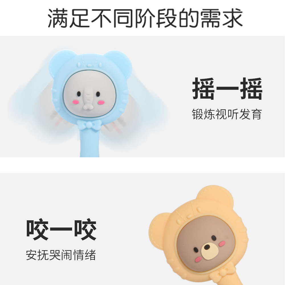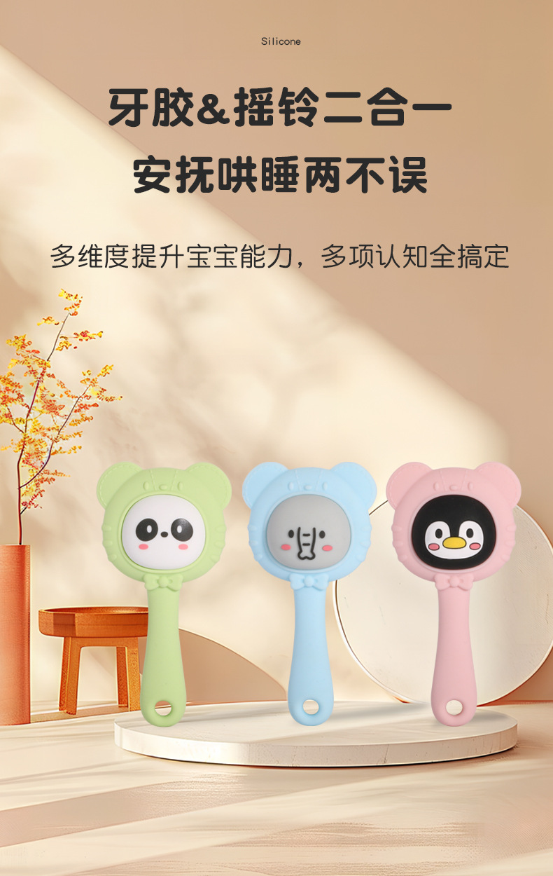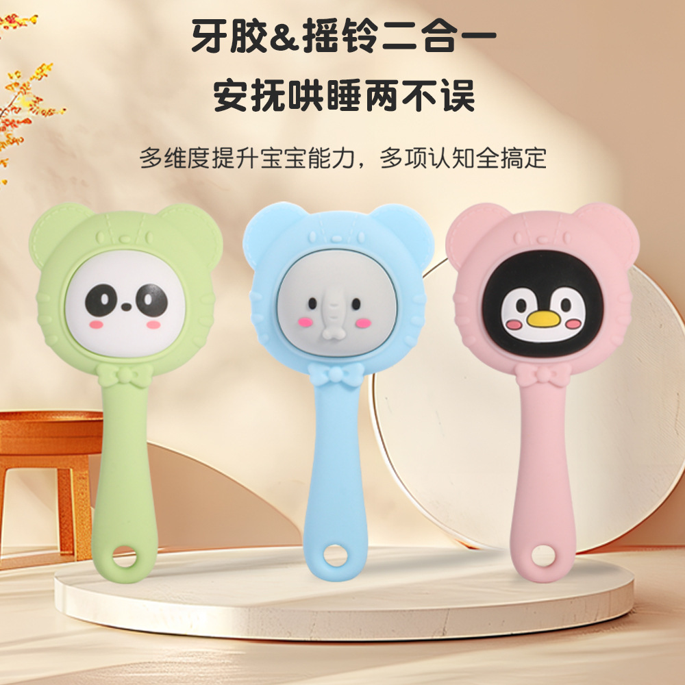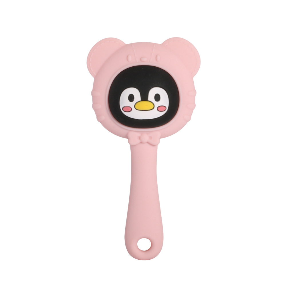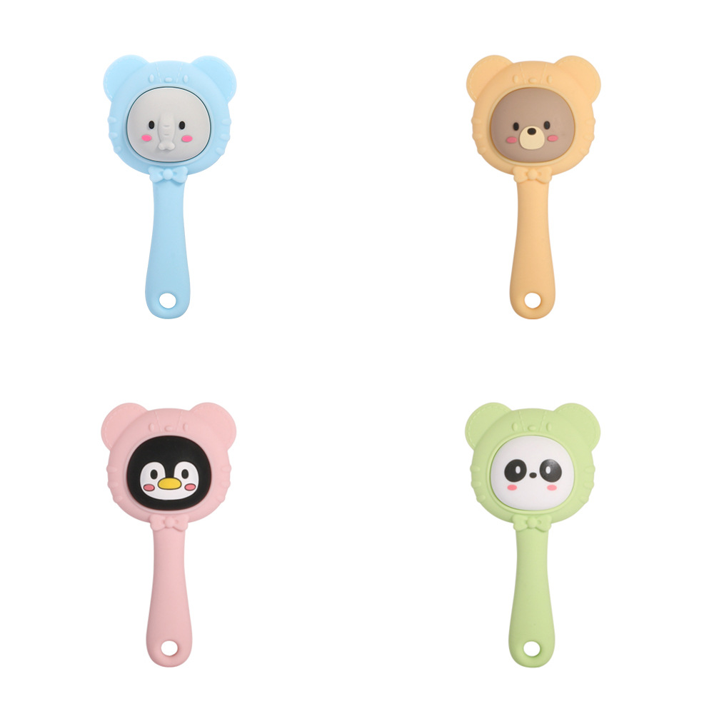 blue elephant, yellow bear, pink penguin, green panda