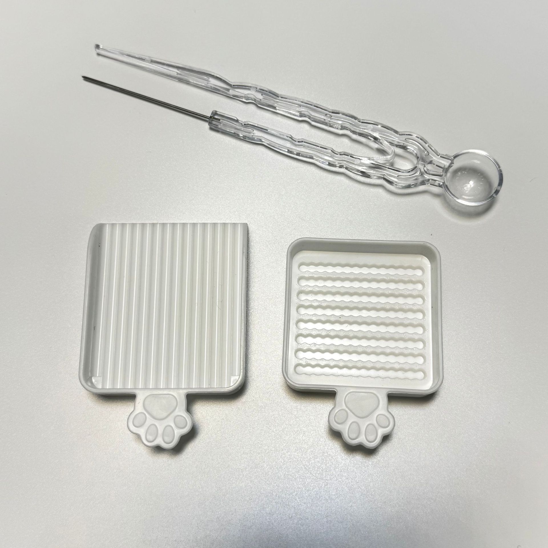 white shovel, transparent needle, three-piece set