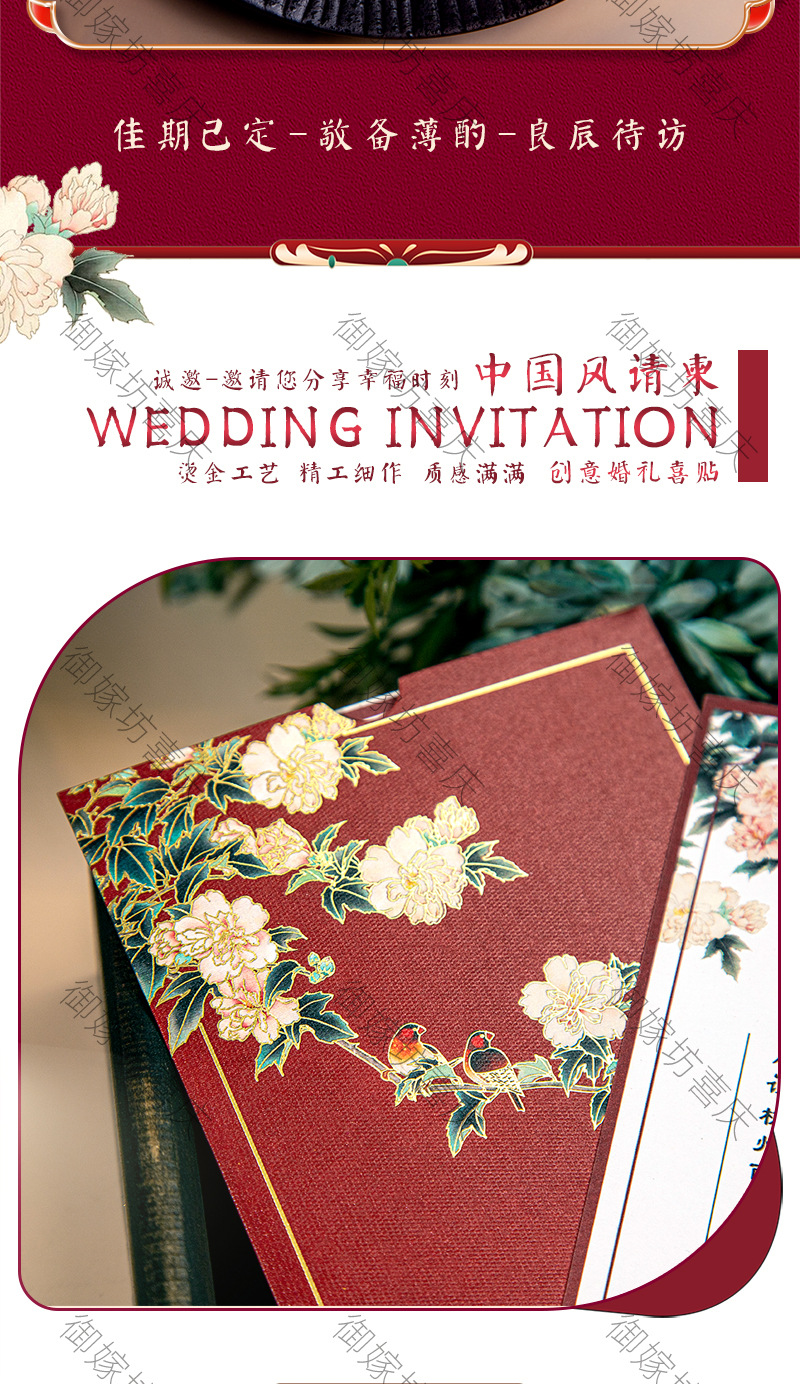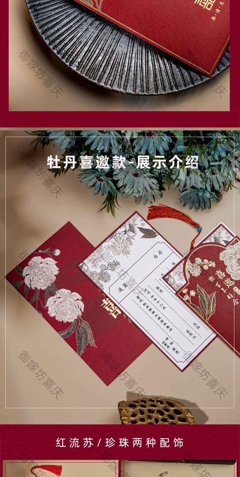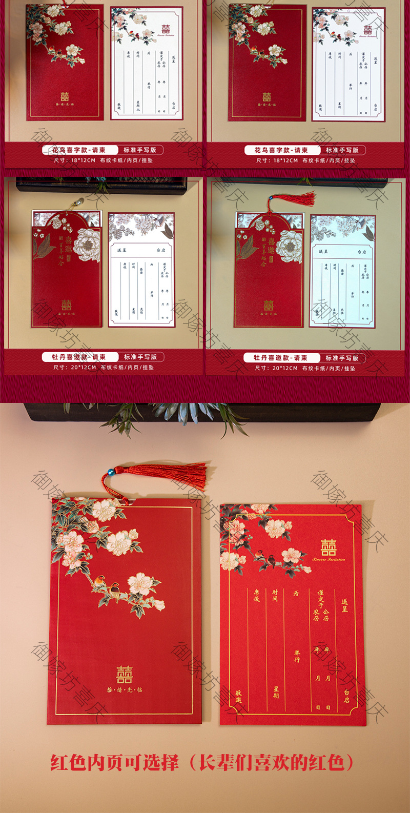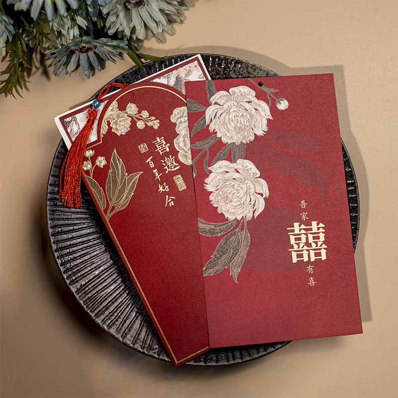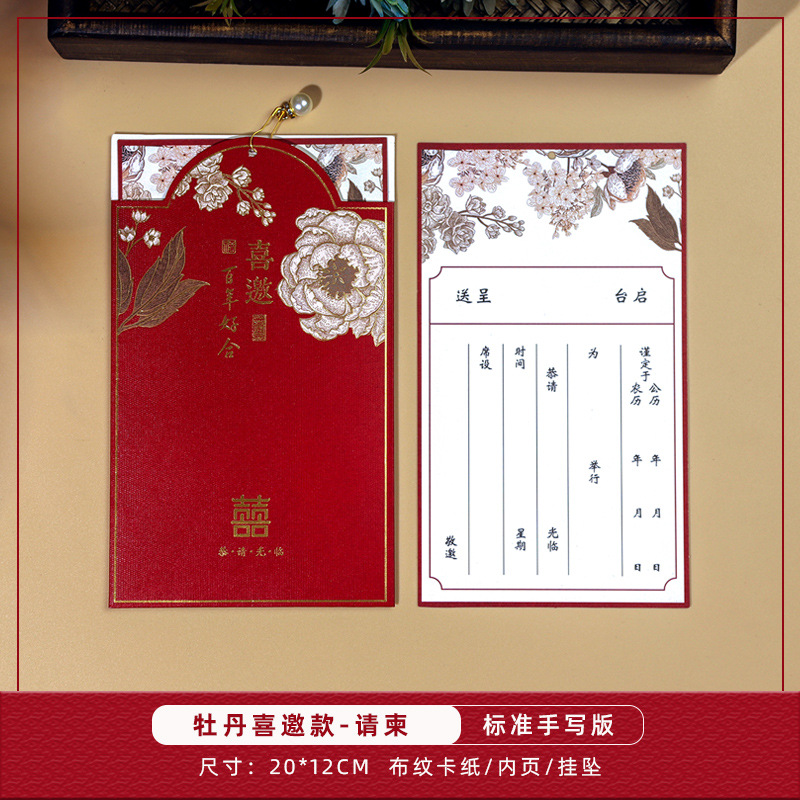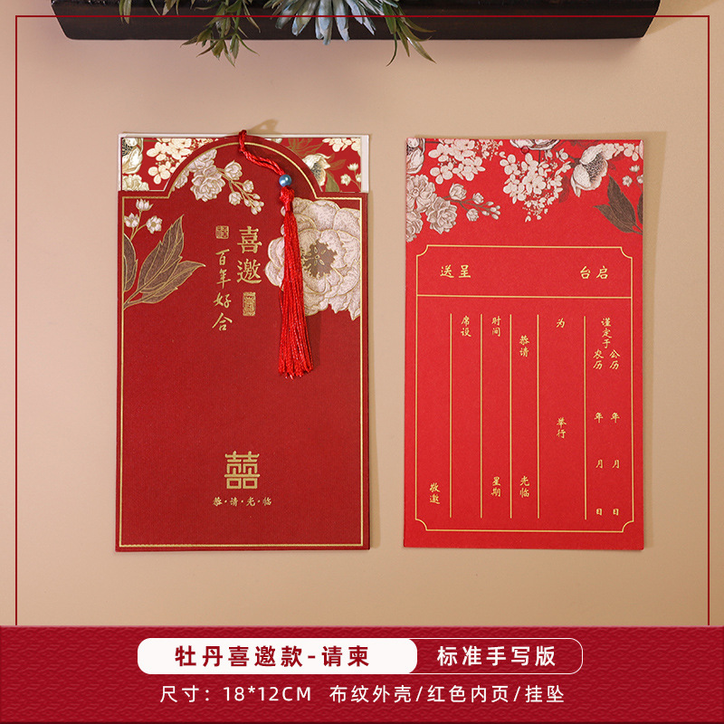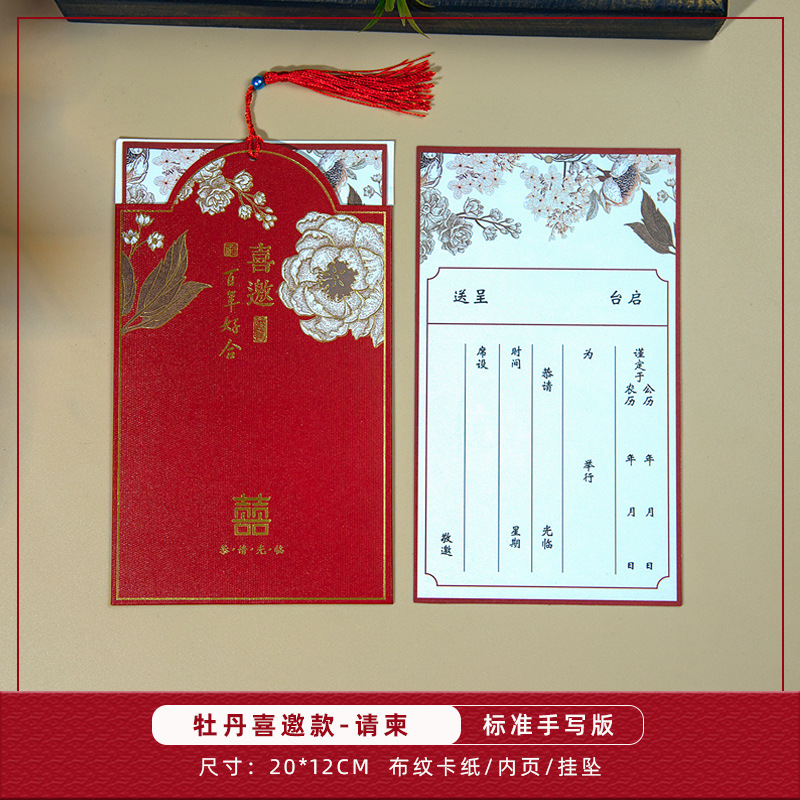 peony invitation + tassel-red inner card-invitation card