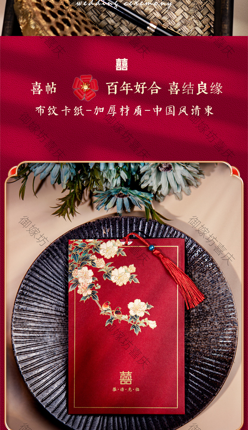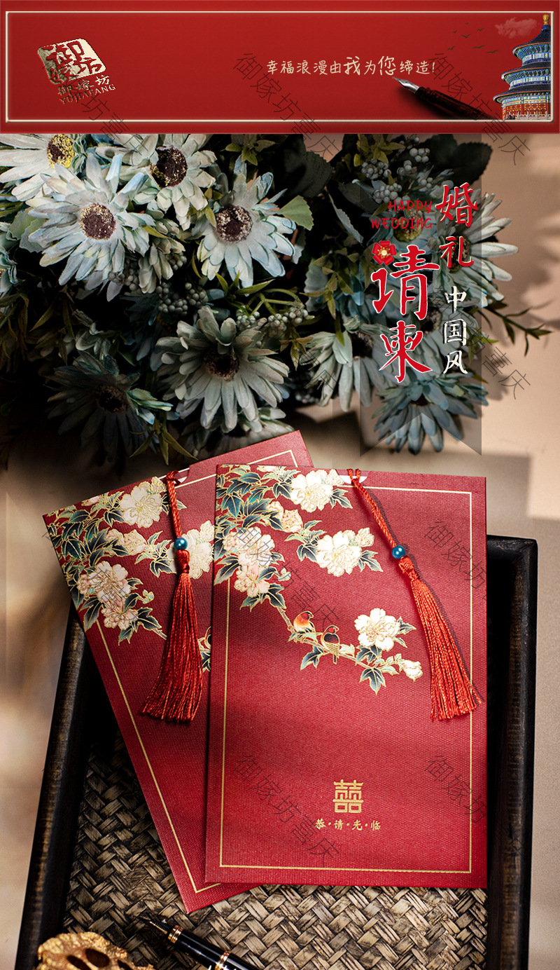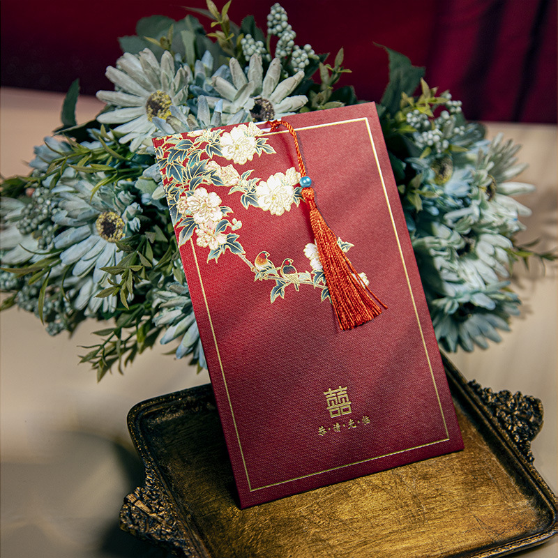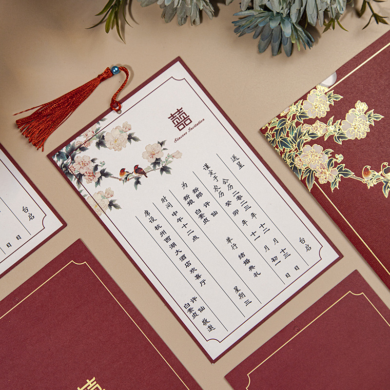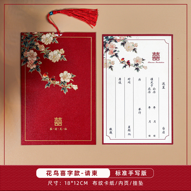 flower and bird xi character + tassel-red inner card-invitation card