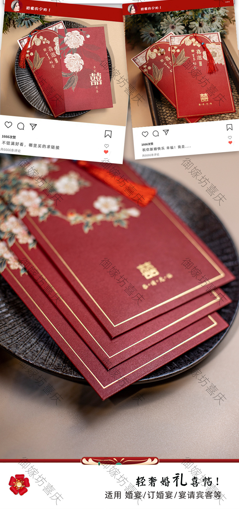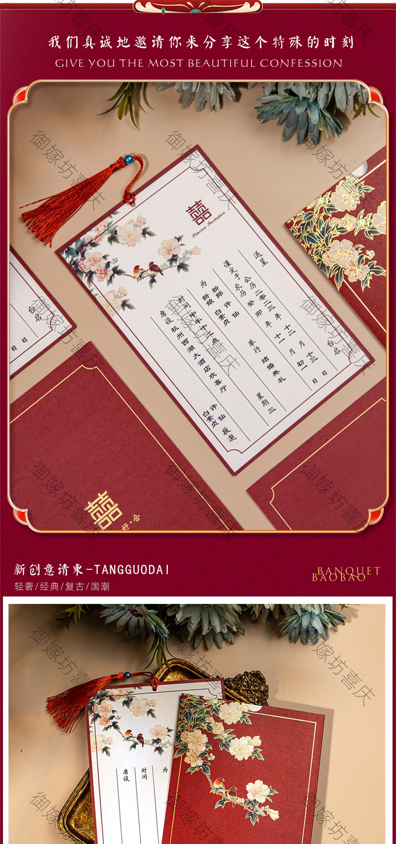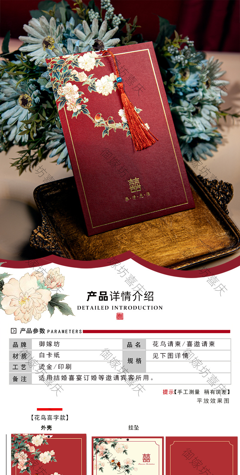 flower and bird xi character + tassel-red inner card-invitation card