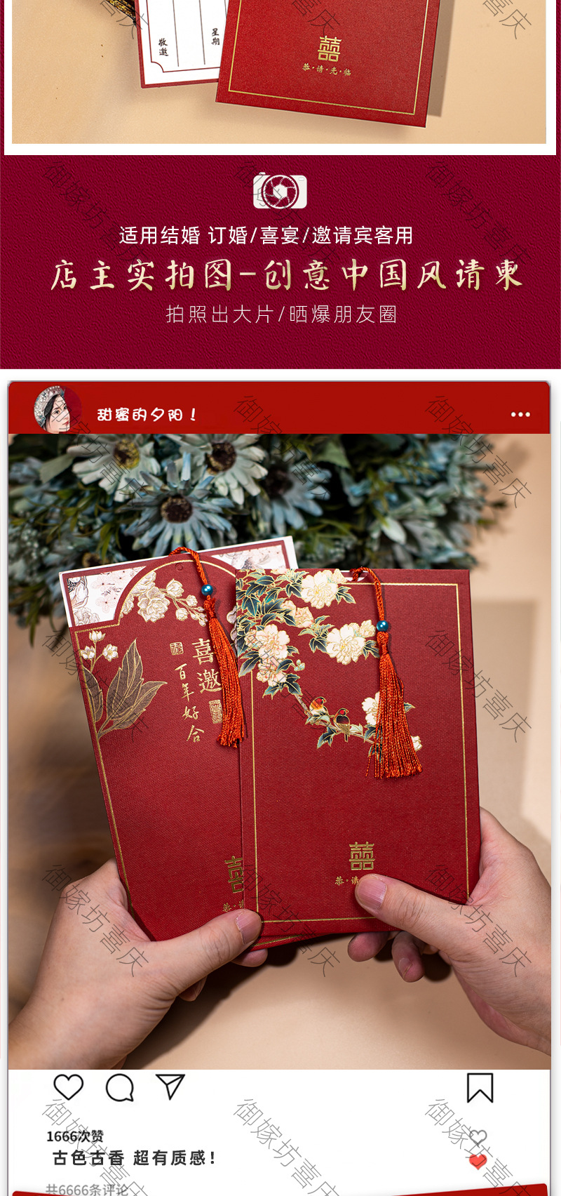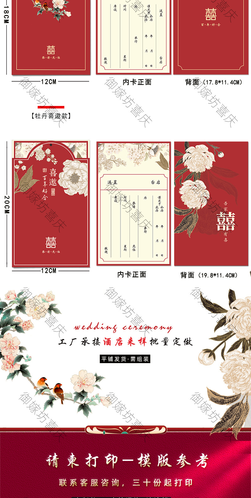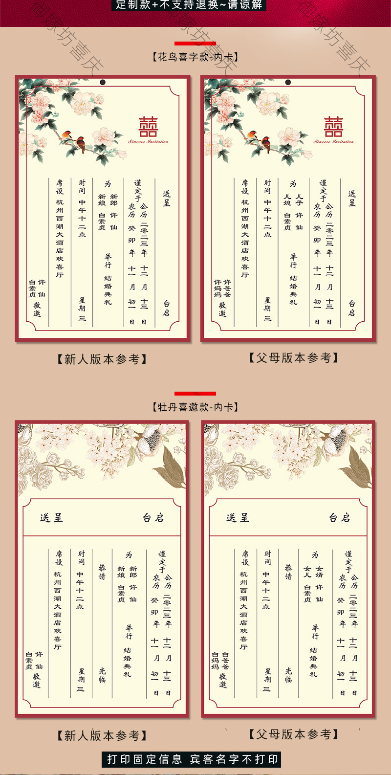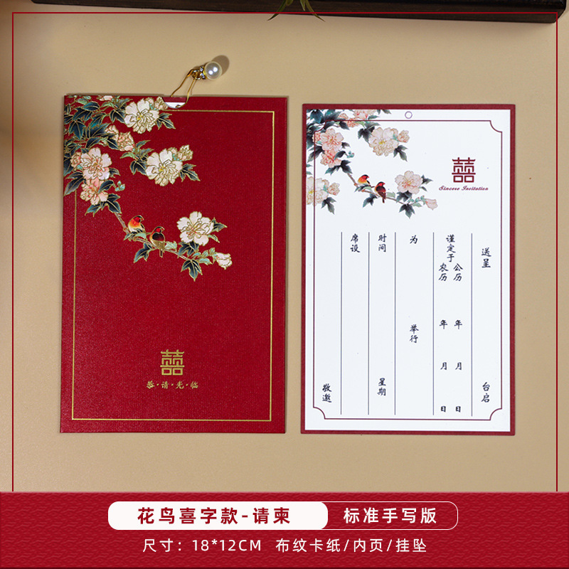 flower and bird xi character + pearl-red inner card-invitation card