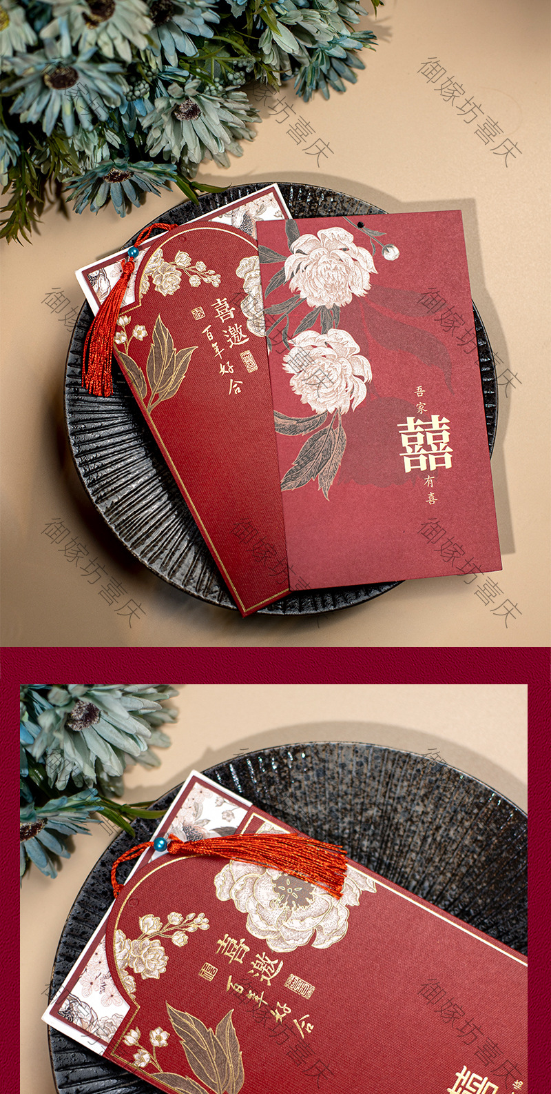 peony invitation + red tassel-invitation card