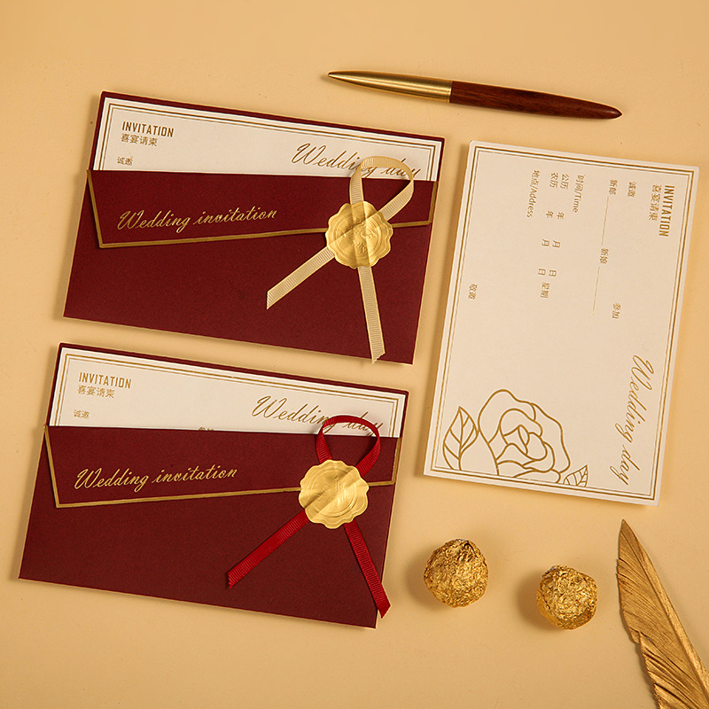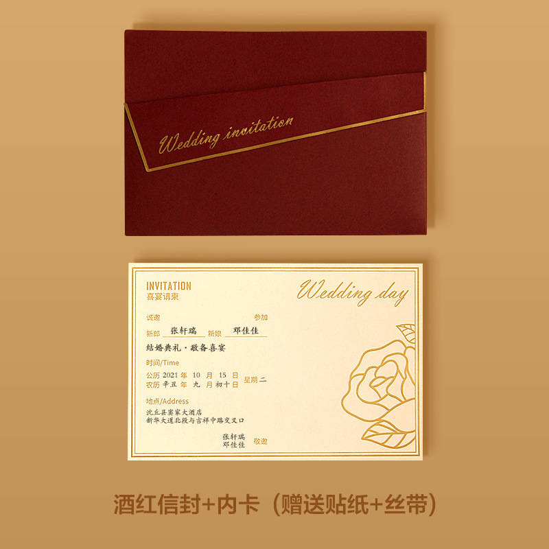 wine red english invitation printed version