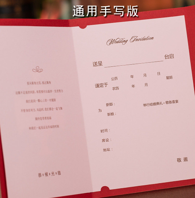 100 invitations or more require printing of the inner pages, with an additional 10 RMB printing fee.