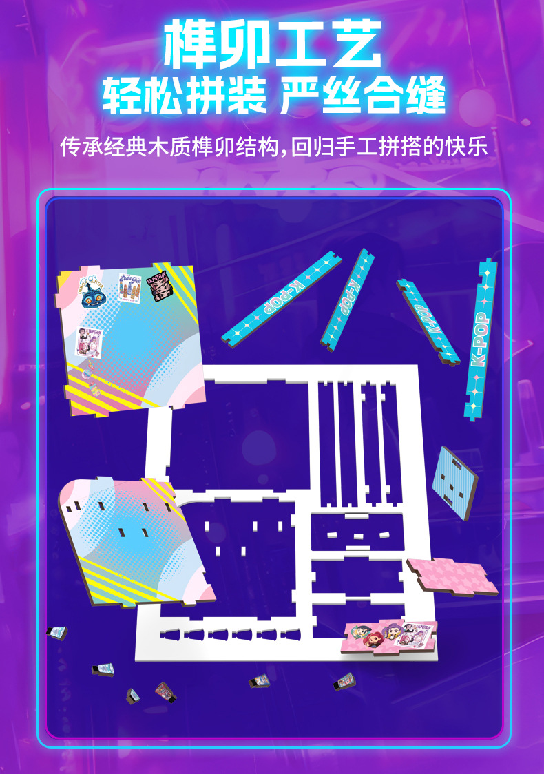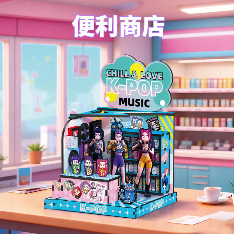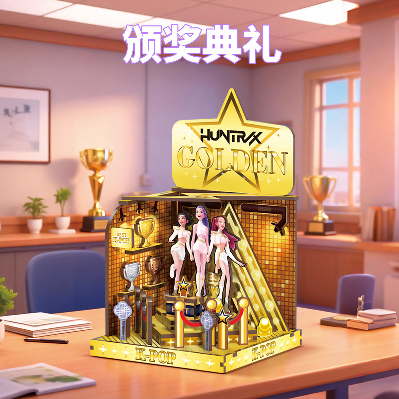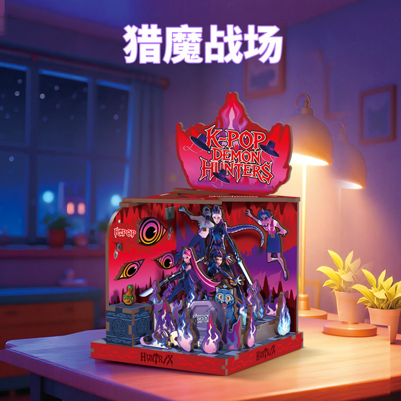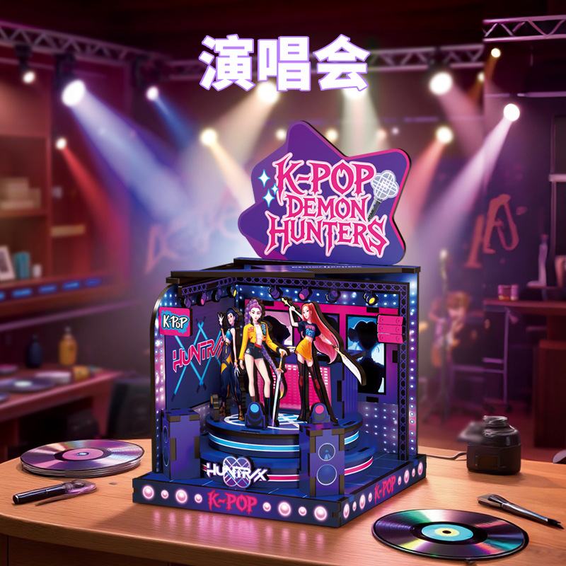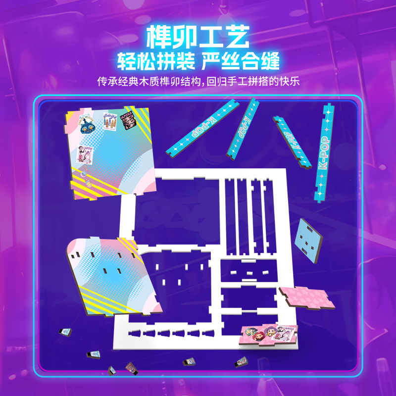 k-pop soul hunting women's team wooden building blocks manual assembly model diy playing house assembling toys girls' gifts