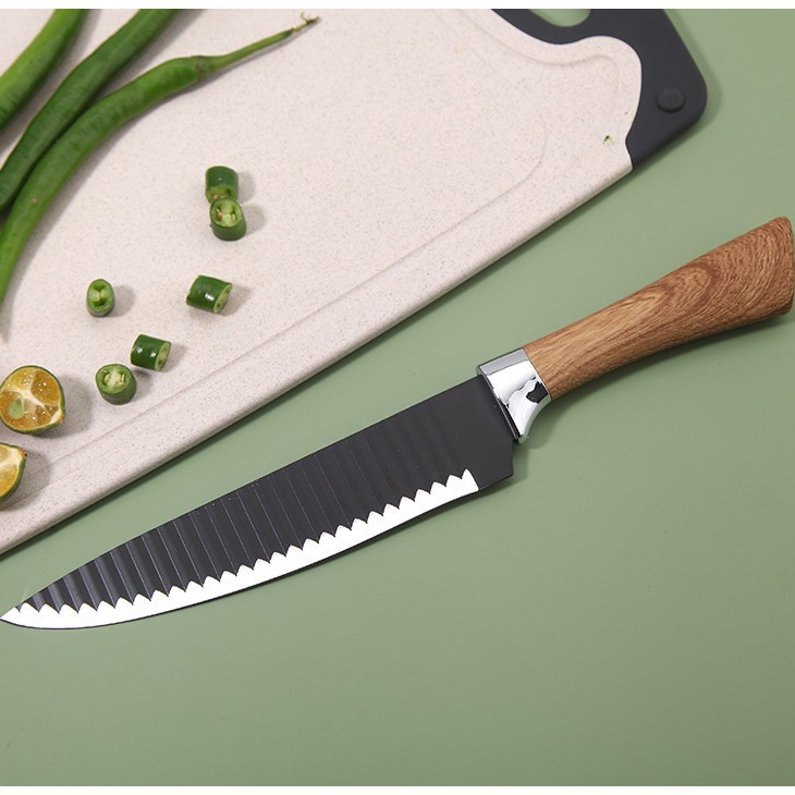 imitation wood grain horseshoe handle set knife 6-piece set-velvet flip box