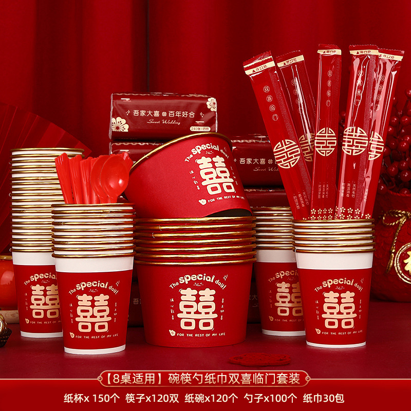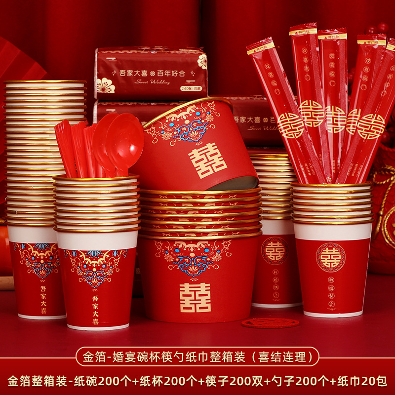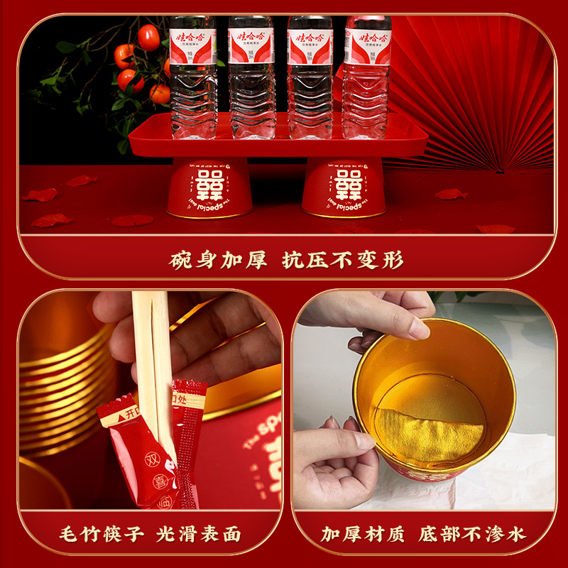 wedding banquet set 4-piece set a [paper bowl + paper cup + tissue + chopsticks]]