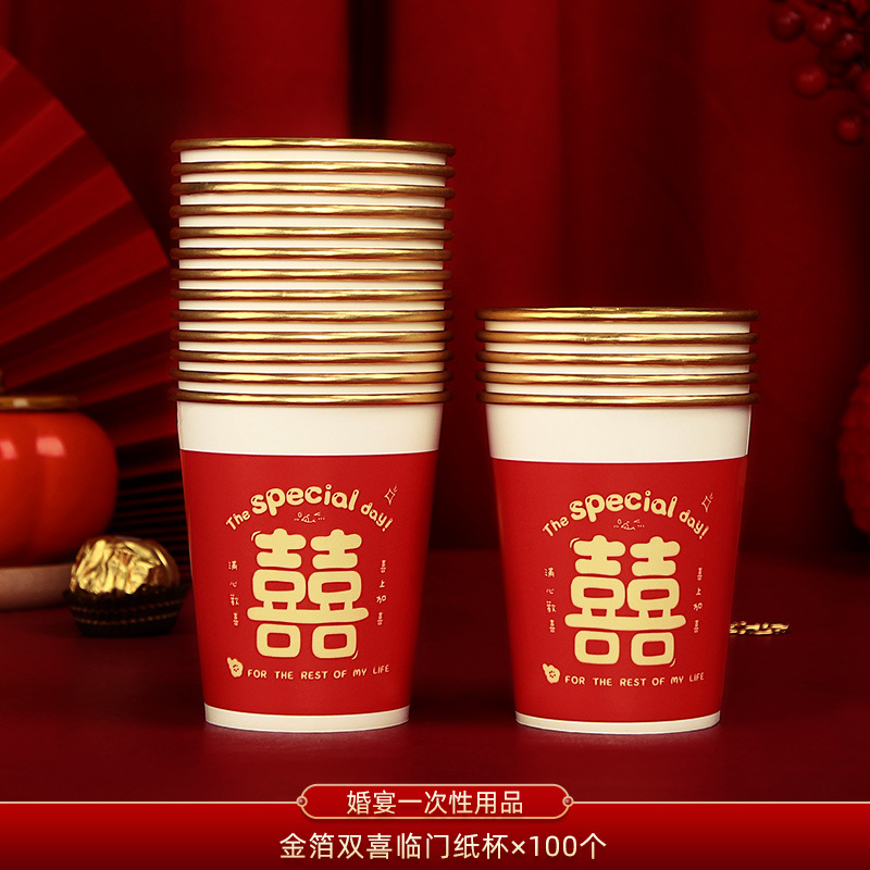 gold foil_double wedding door paper cups 100