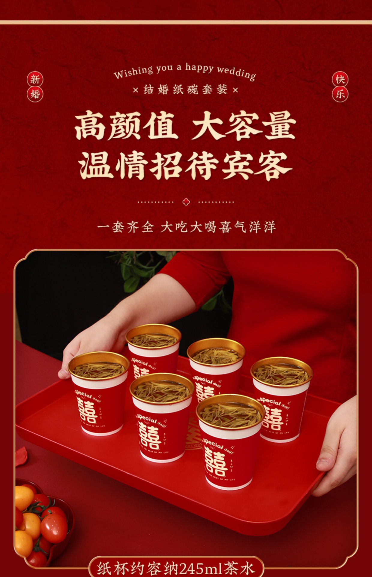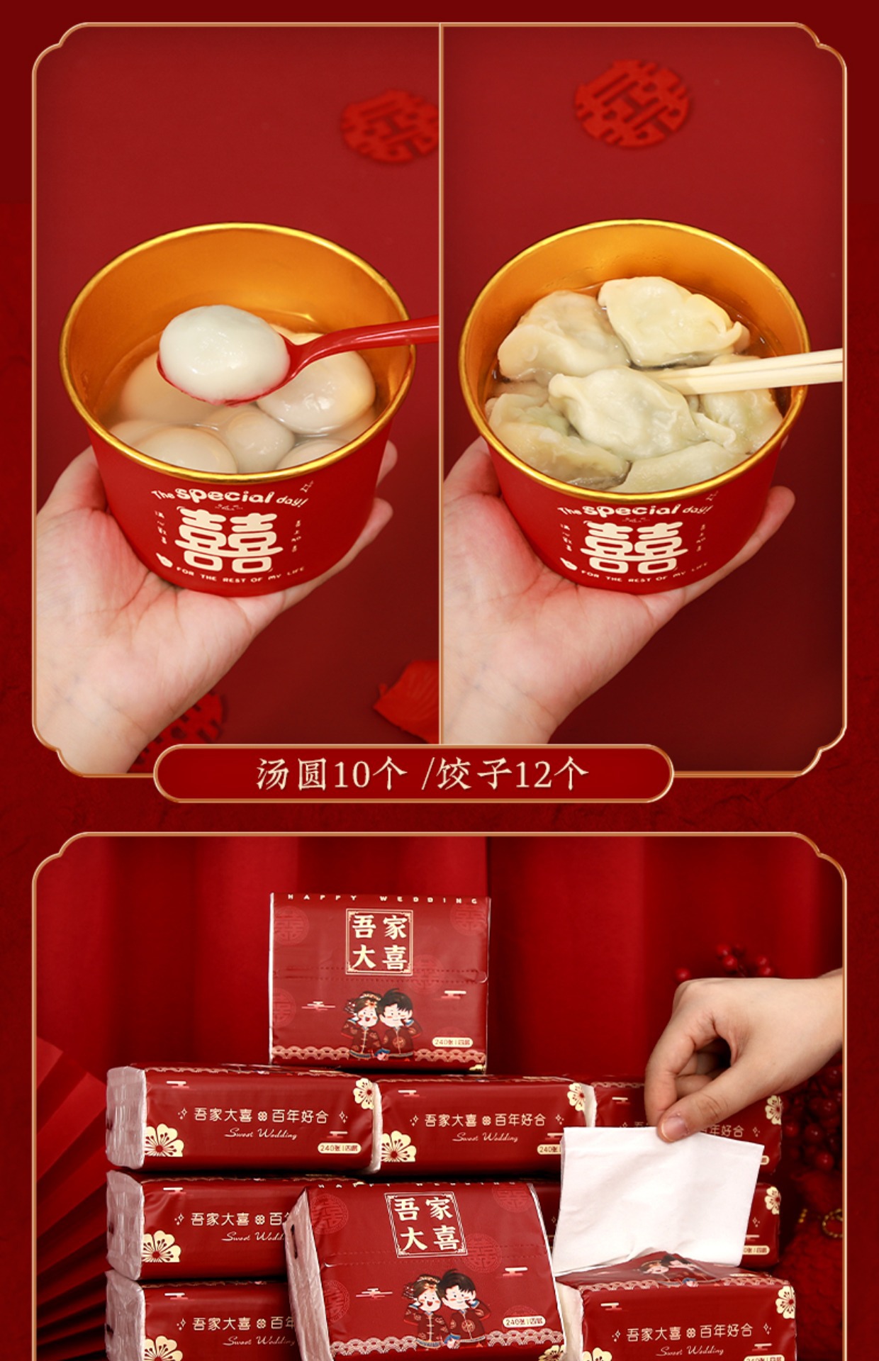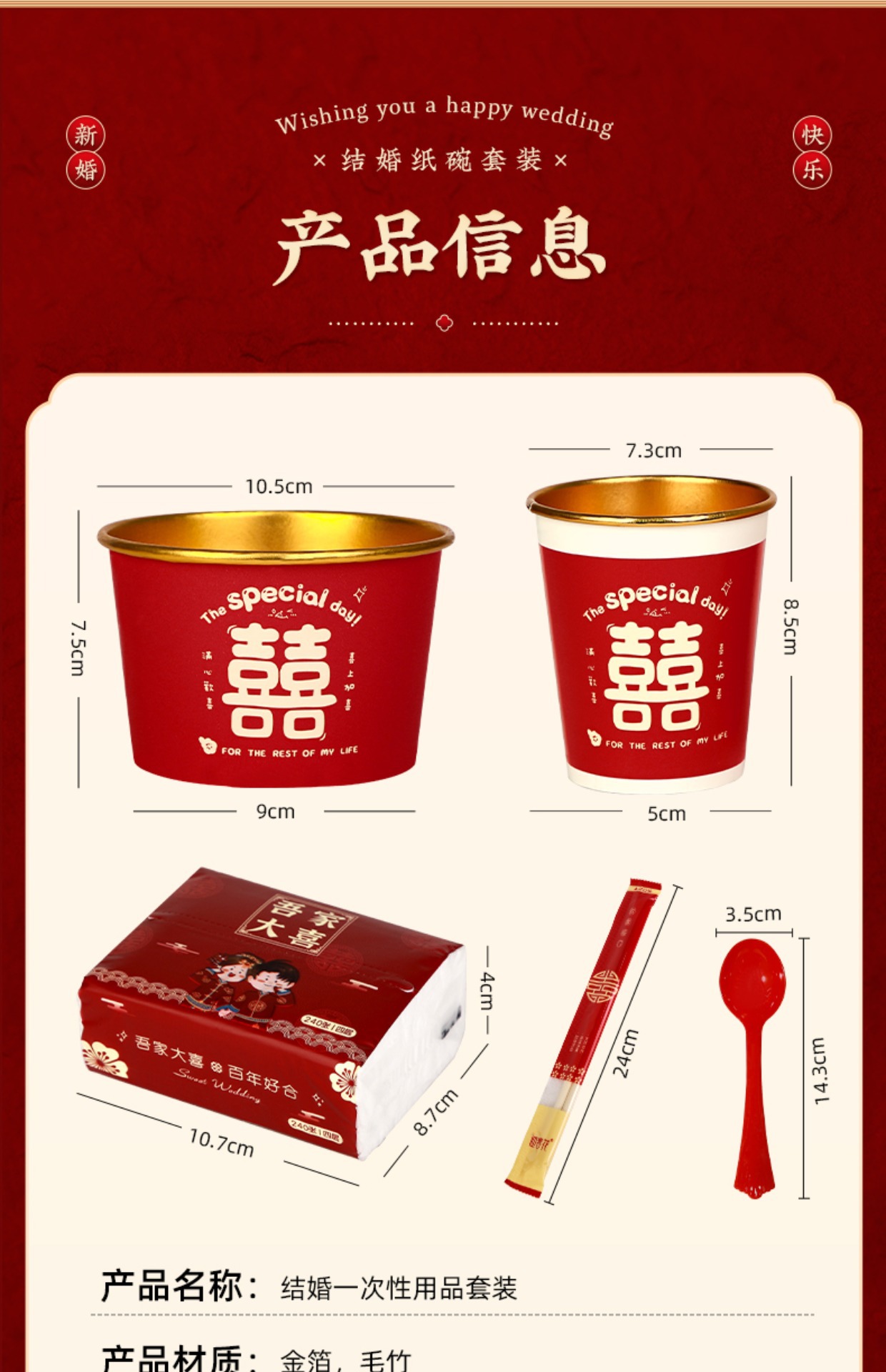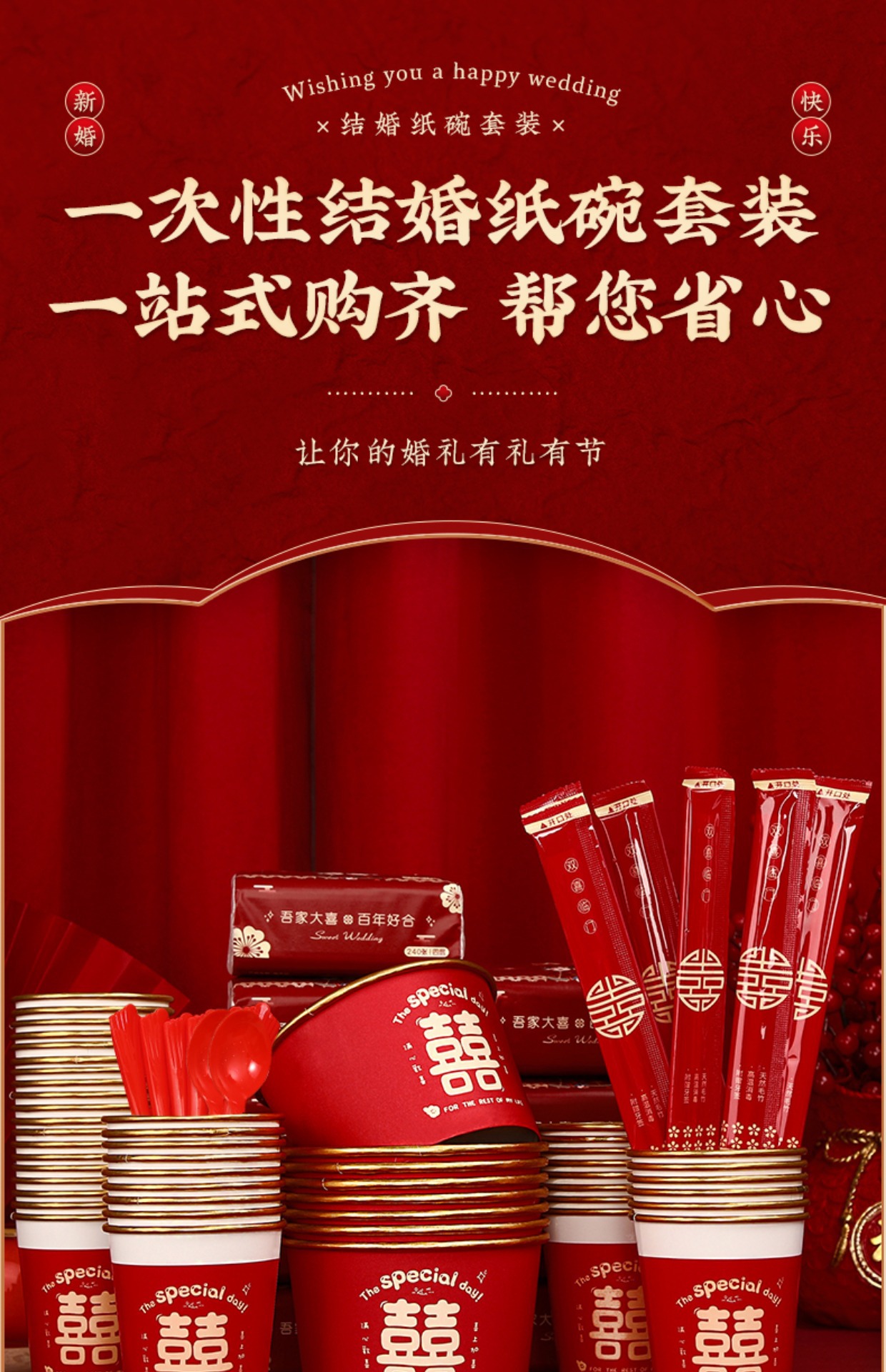 wedding banquet suit 5-piece set [paper bowl + paper cup + tissue + chopsticks + tablecloth]]