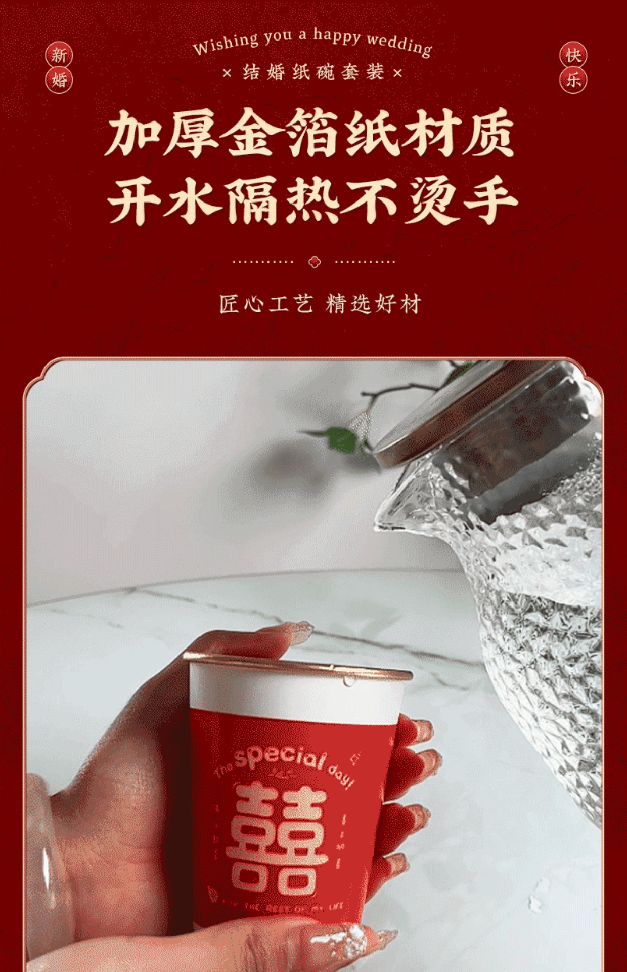 gold foil_thickened double wedding door paper bowl 400
