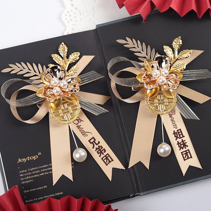 one champagne-colored corsage in style e + ribbon. please specify the recipient’s title/name in the notes.