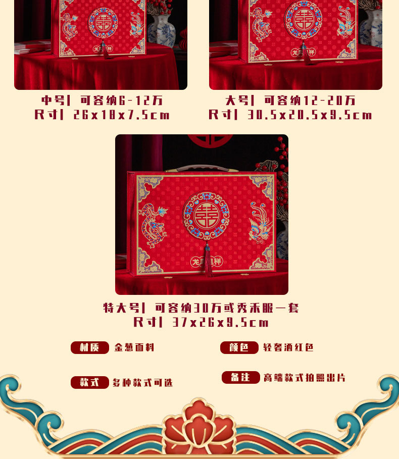 gold leaf gilding stereo cash gift box [prosperity brought by the dragon and the phoenix] large size can hold 12-200000