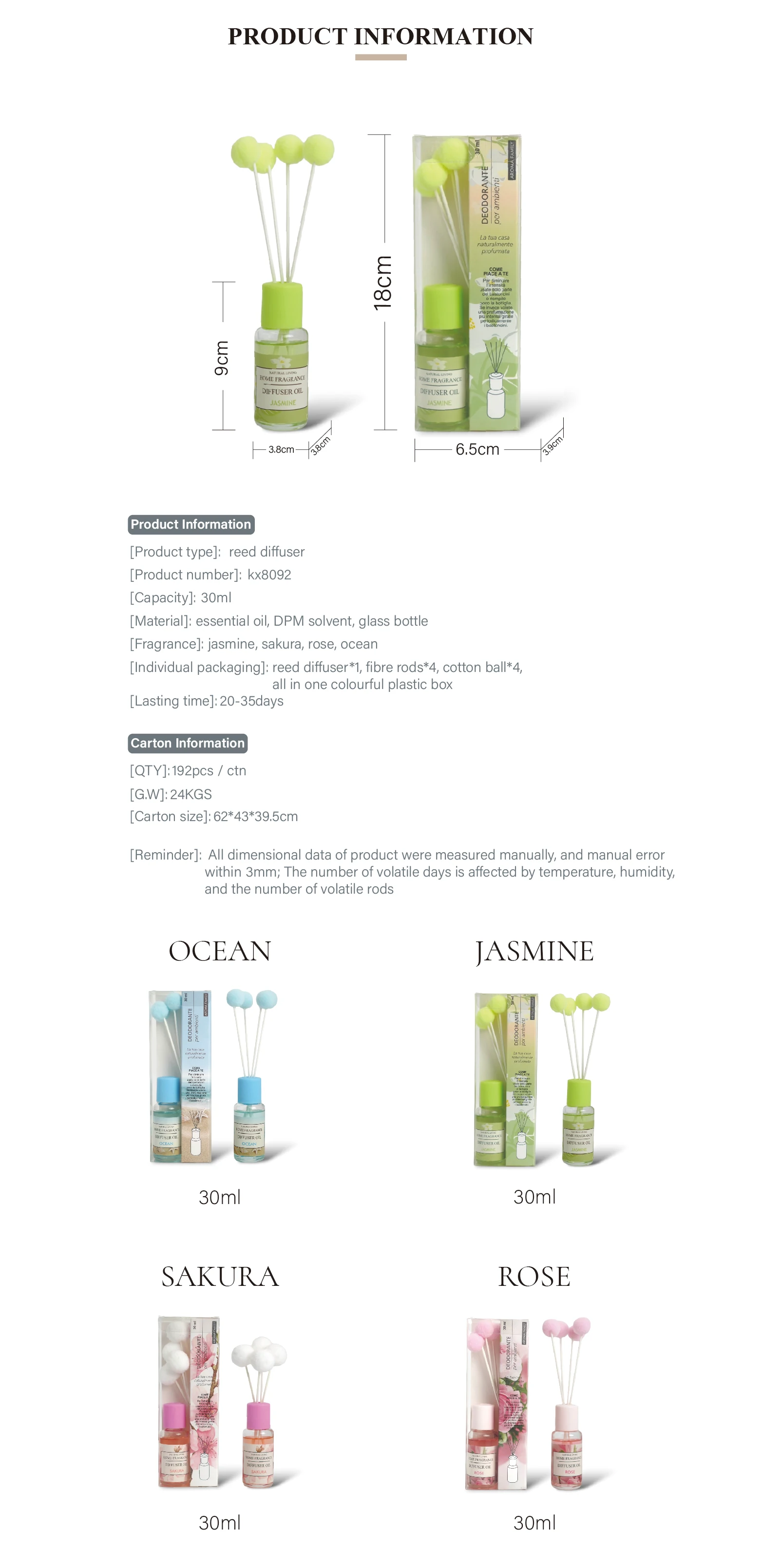 Scent: 6 scents, rose, ocea