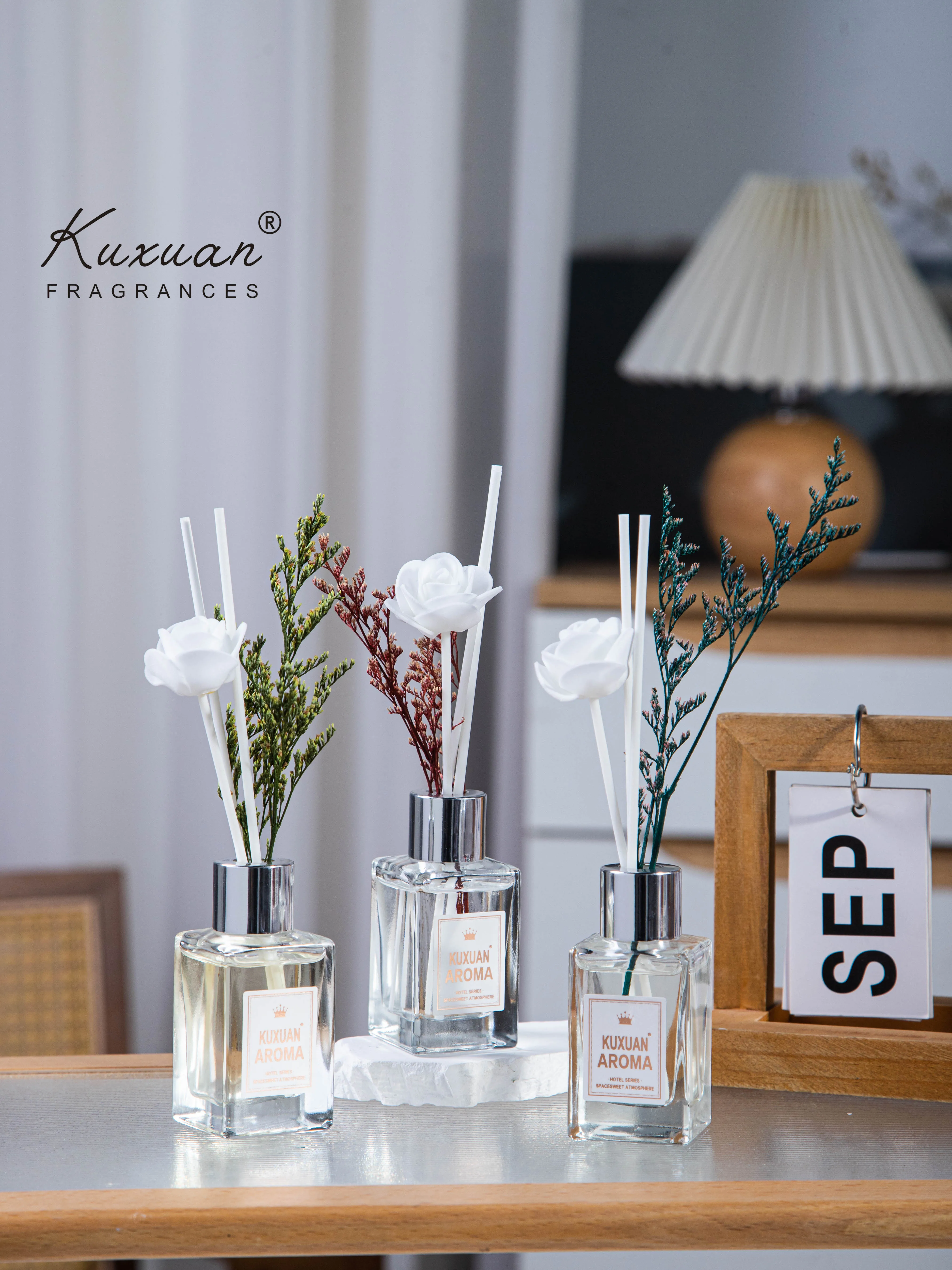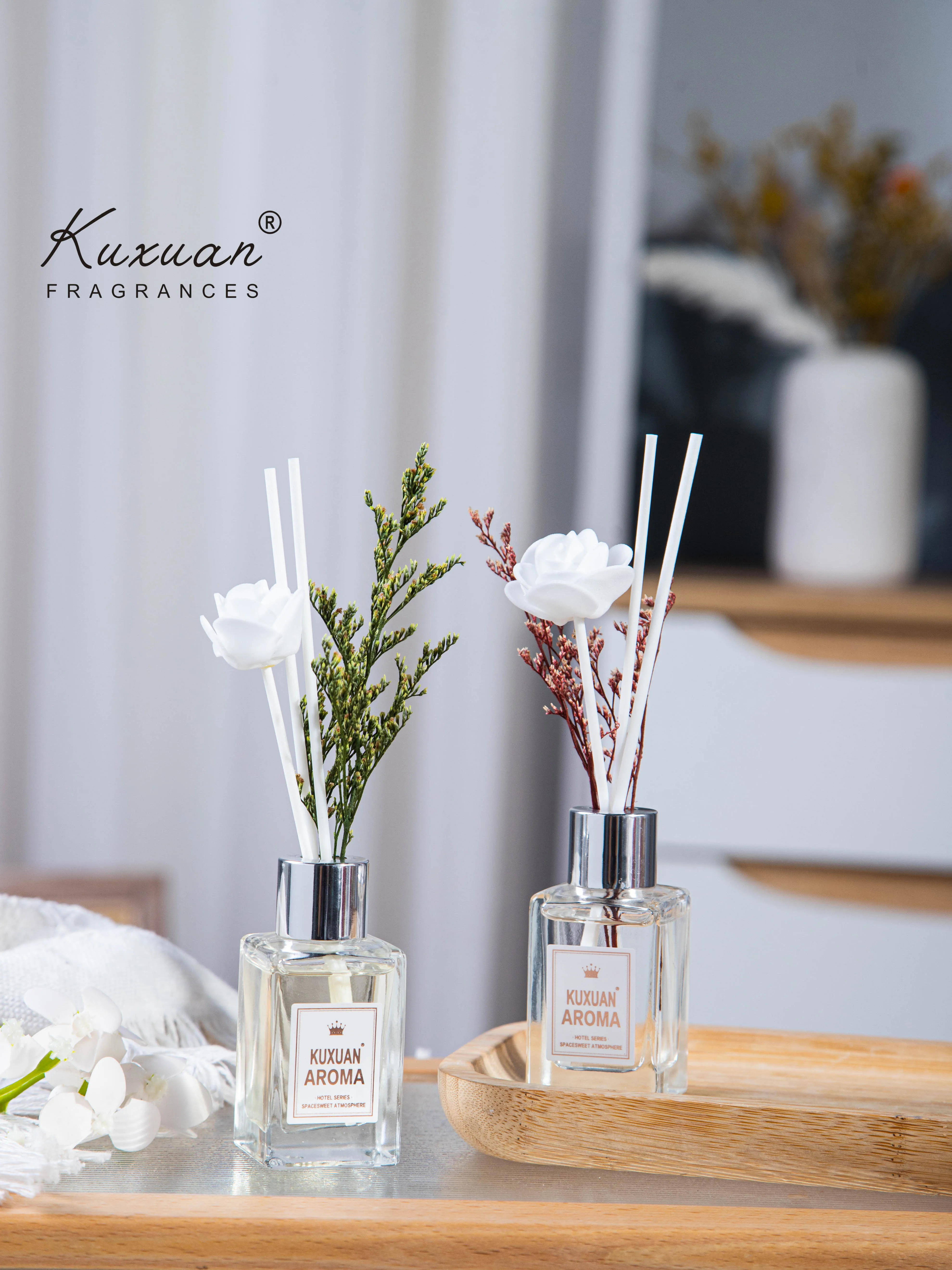 35ml New Luxury Design Private Label Transparent Glass Bottle Reed Diffuser for Home Office Bedroom Decor