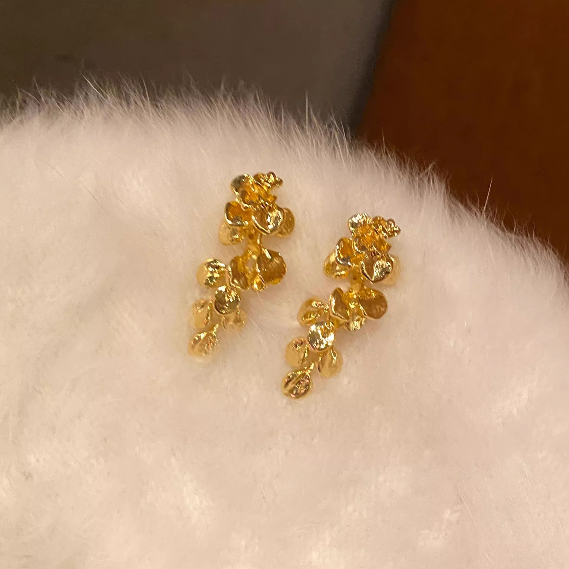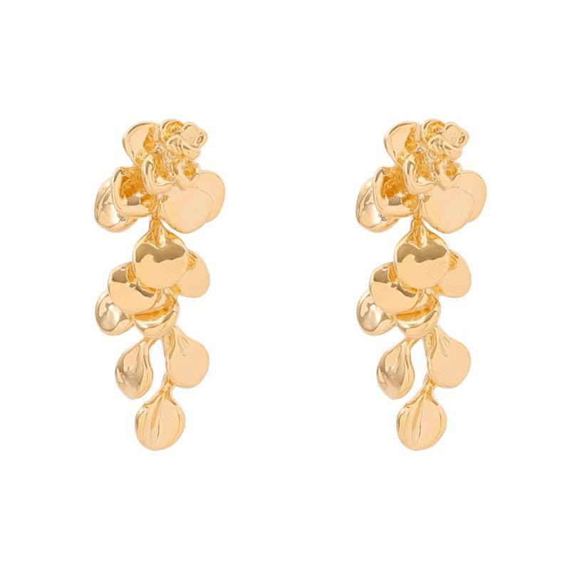 Silver needle broken leaf retro gold leaf tassel earrings, women's exaggerated and fashionable stud earrings, high-end and niche style earrings for autumn and winter