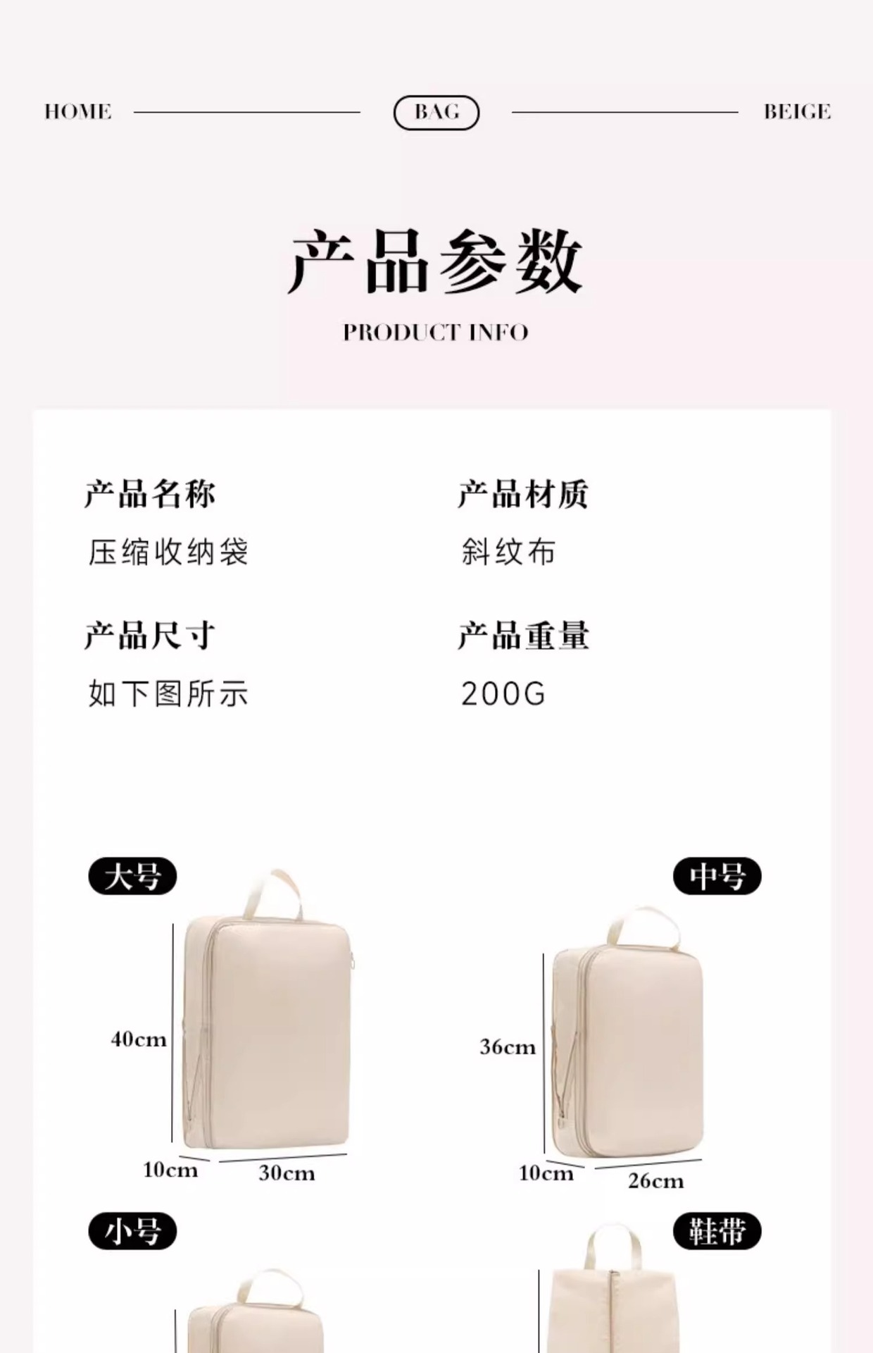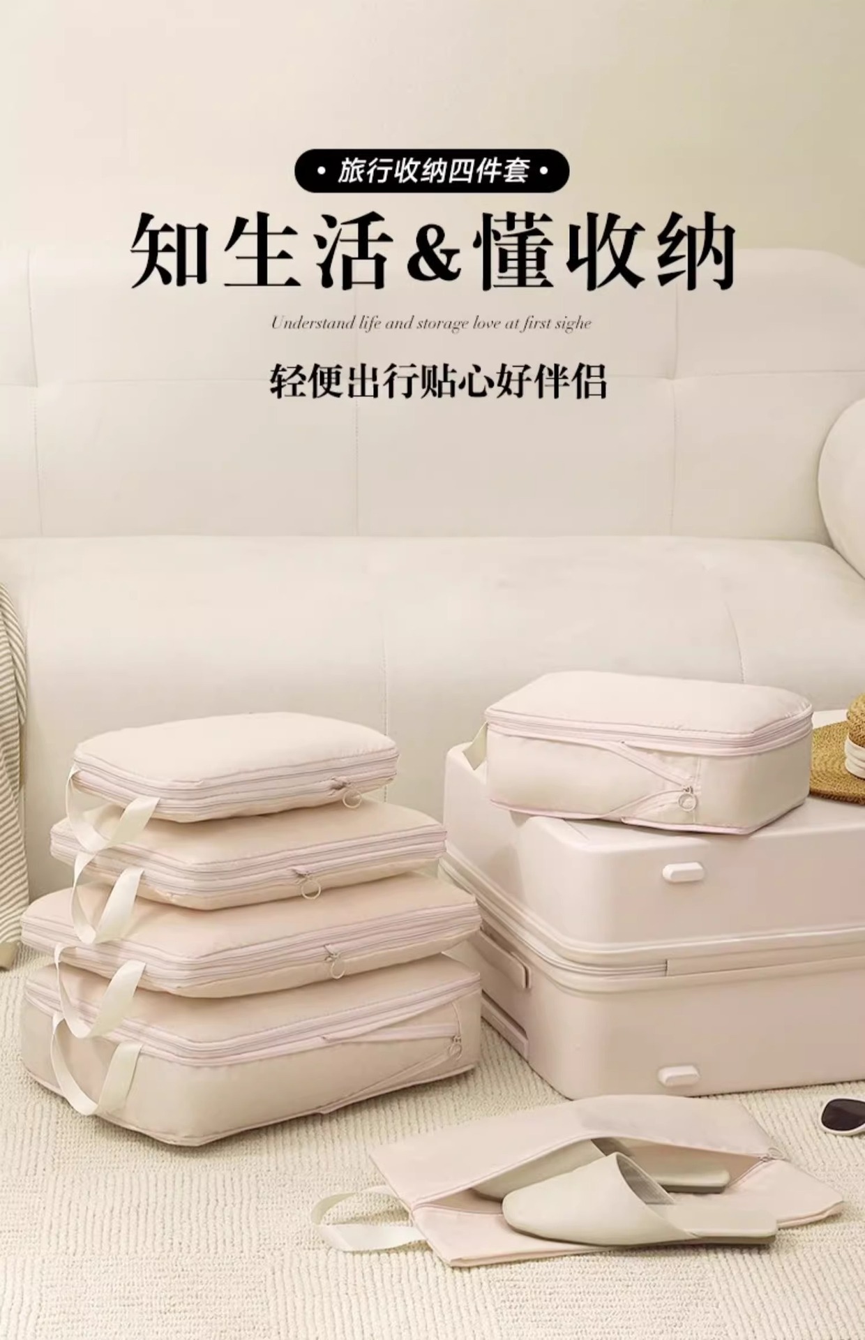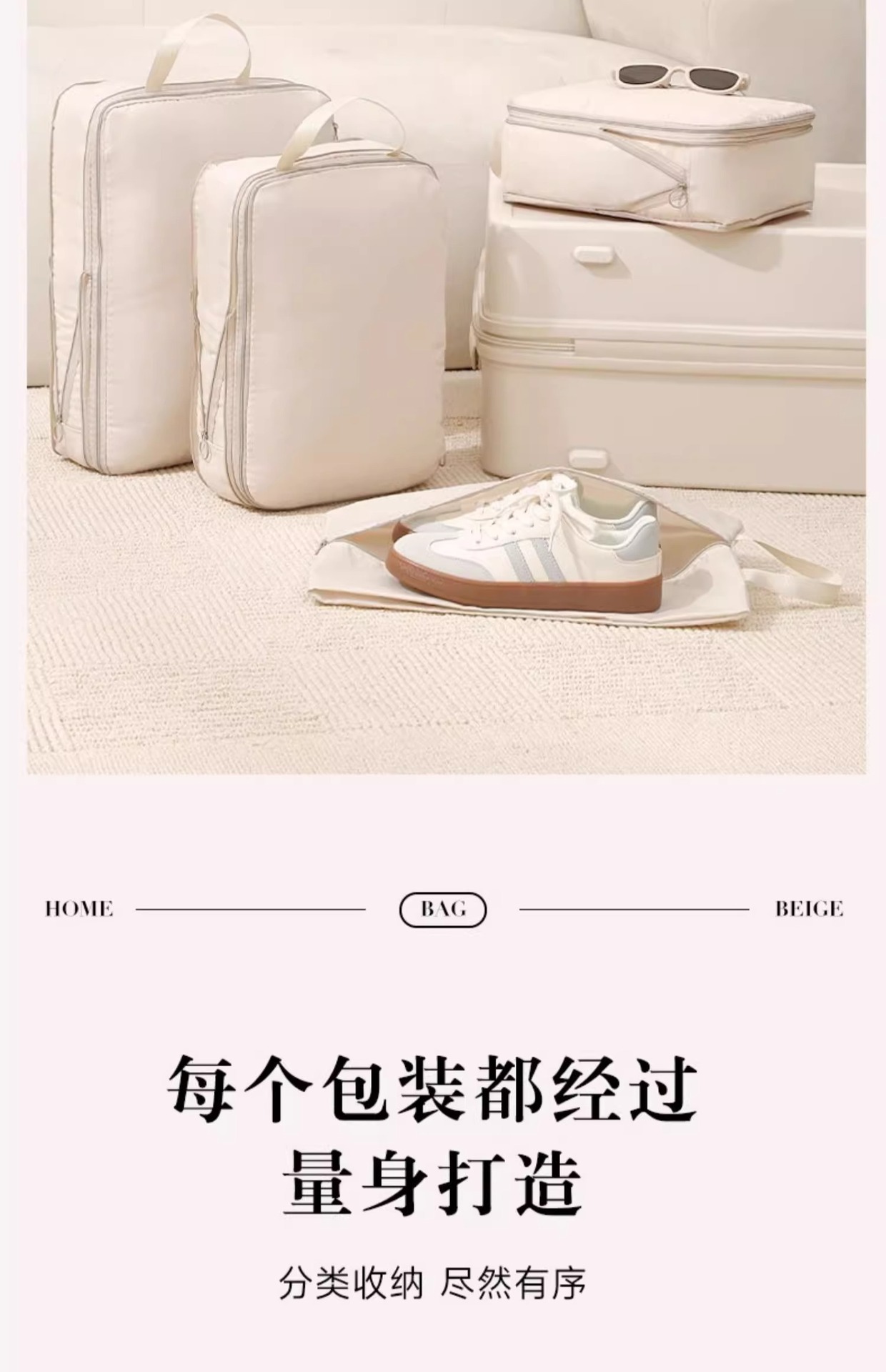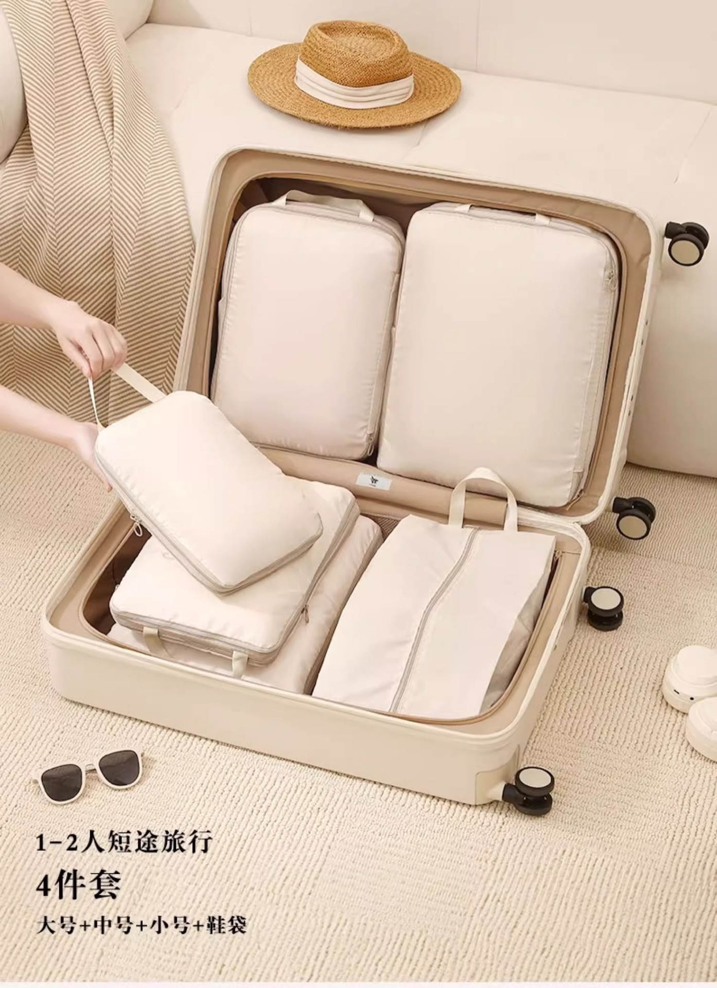 [travel gift set] beige six-piece set: large + medium + pajama bag + underwear package * 2 + shoe bag