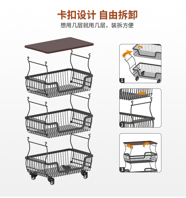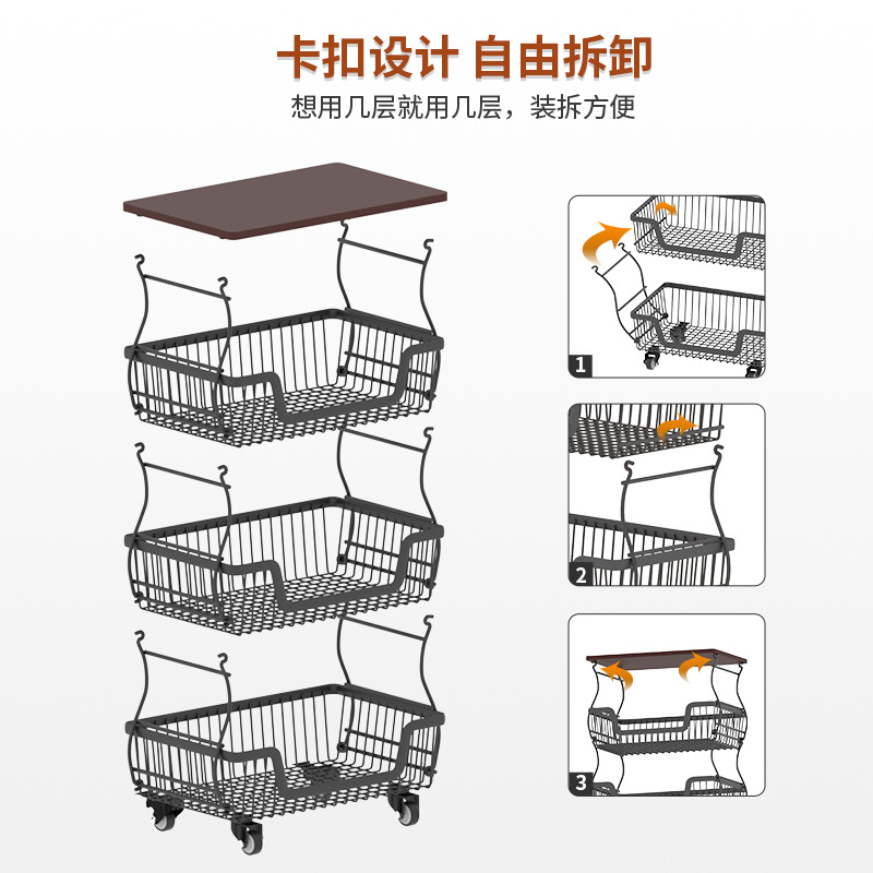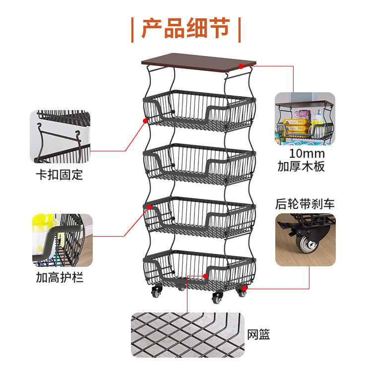 厨房加厚水果蔬菜置物架多功能置物架多层收纳架落地小推车置物架