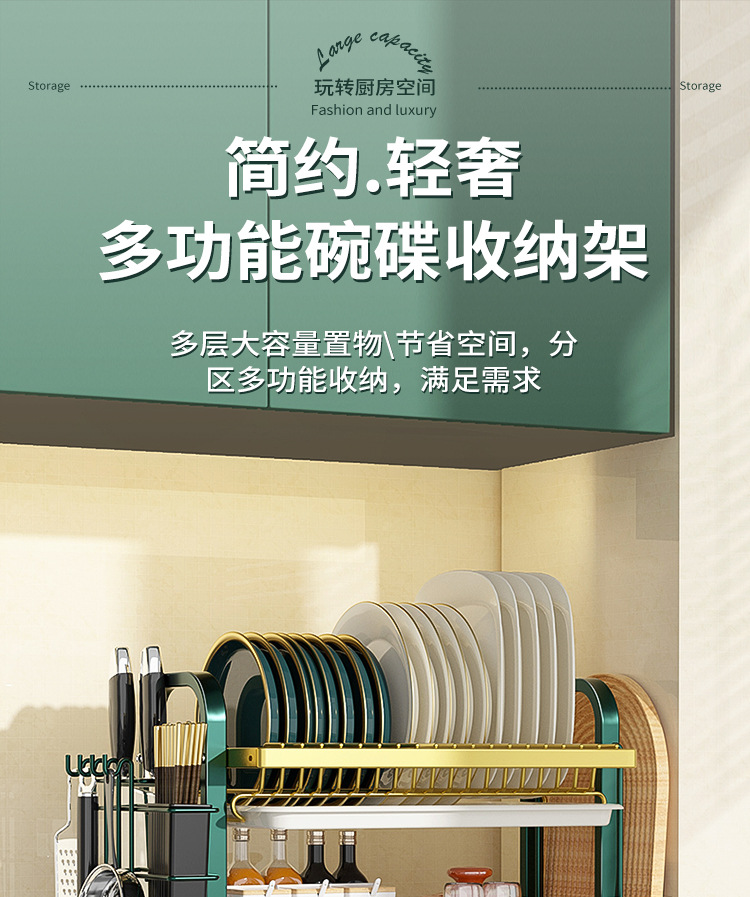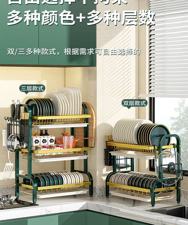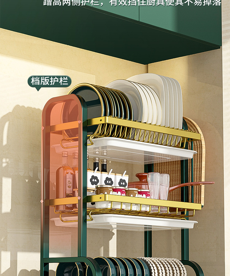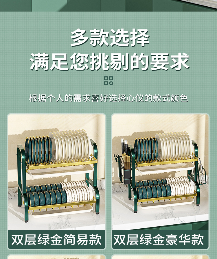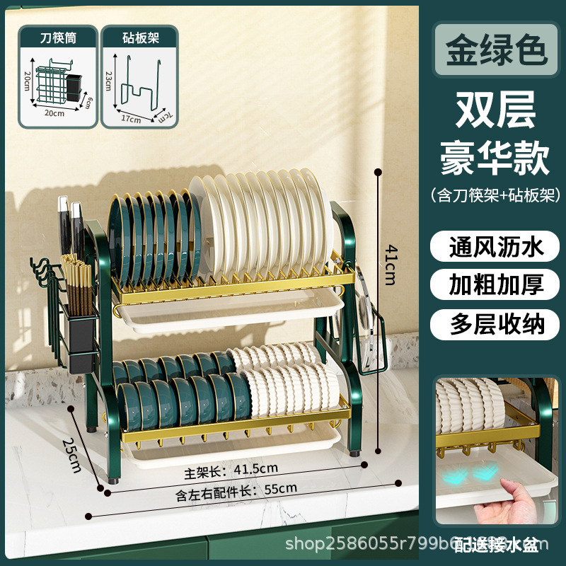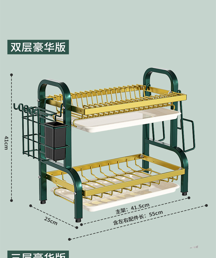 multi-layer plate rack, double-layer green-gold deluxe model