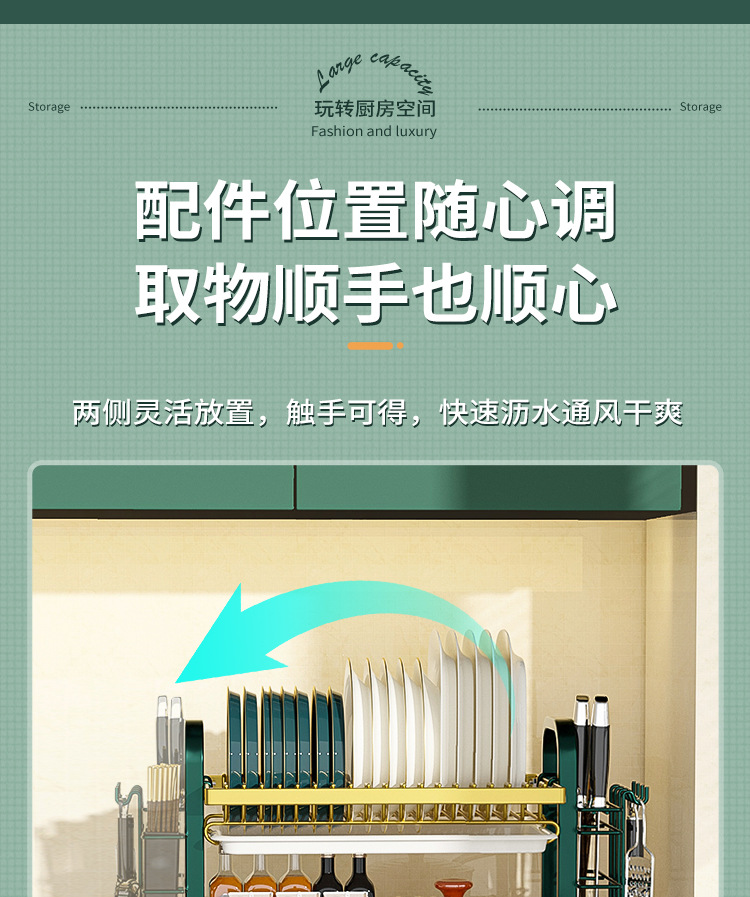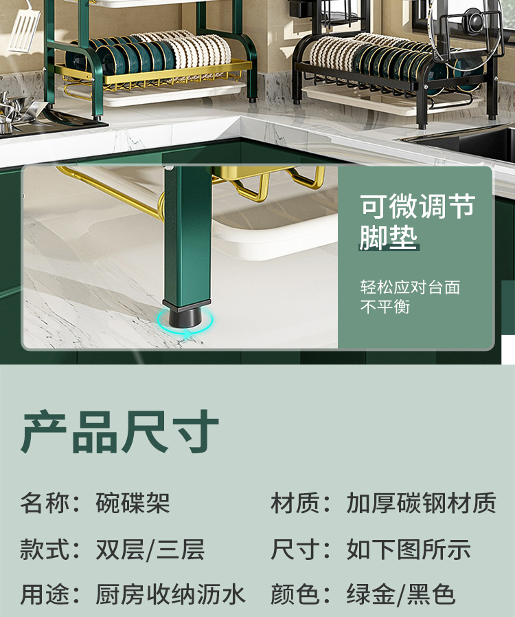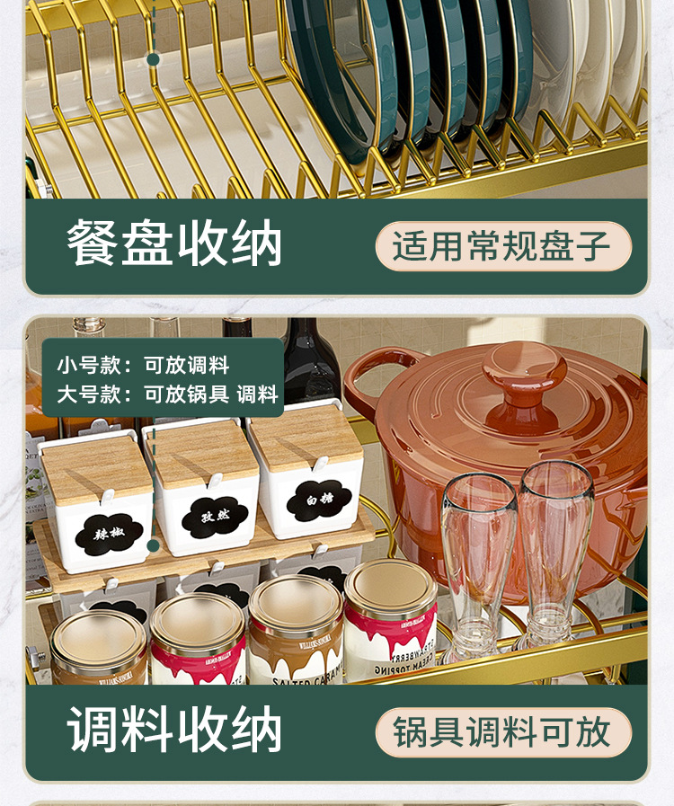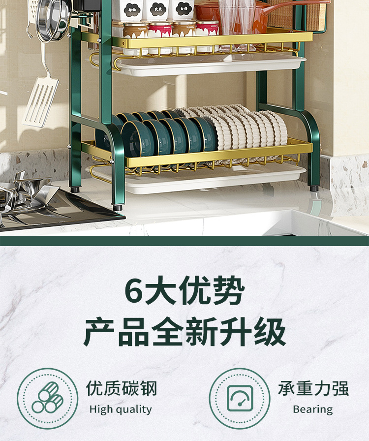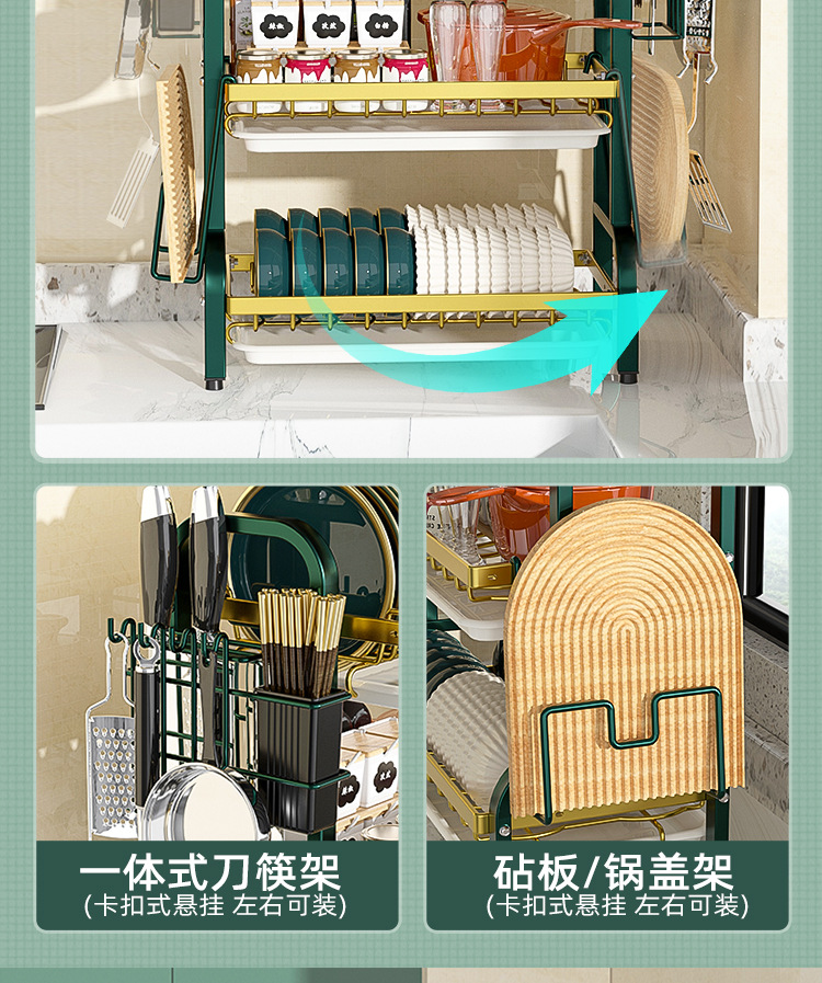 multi-layer plate rack, double-layer green-gold deluxe model
