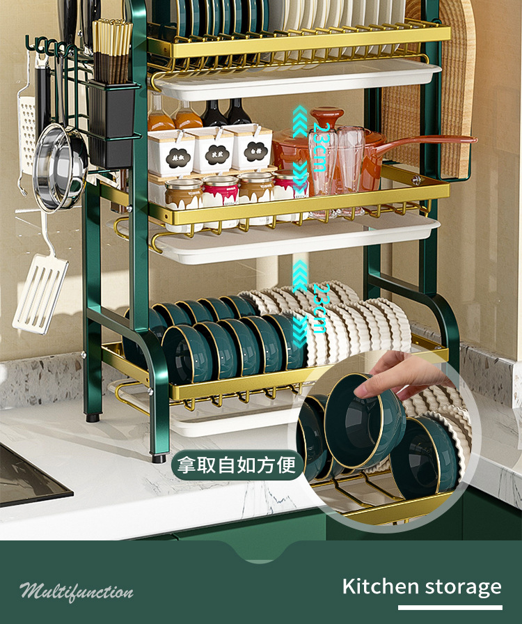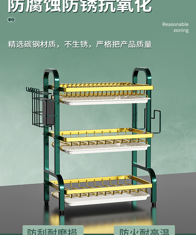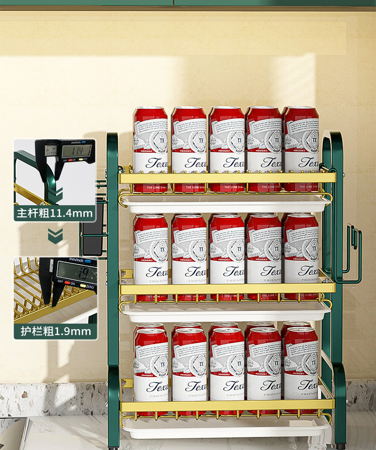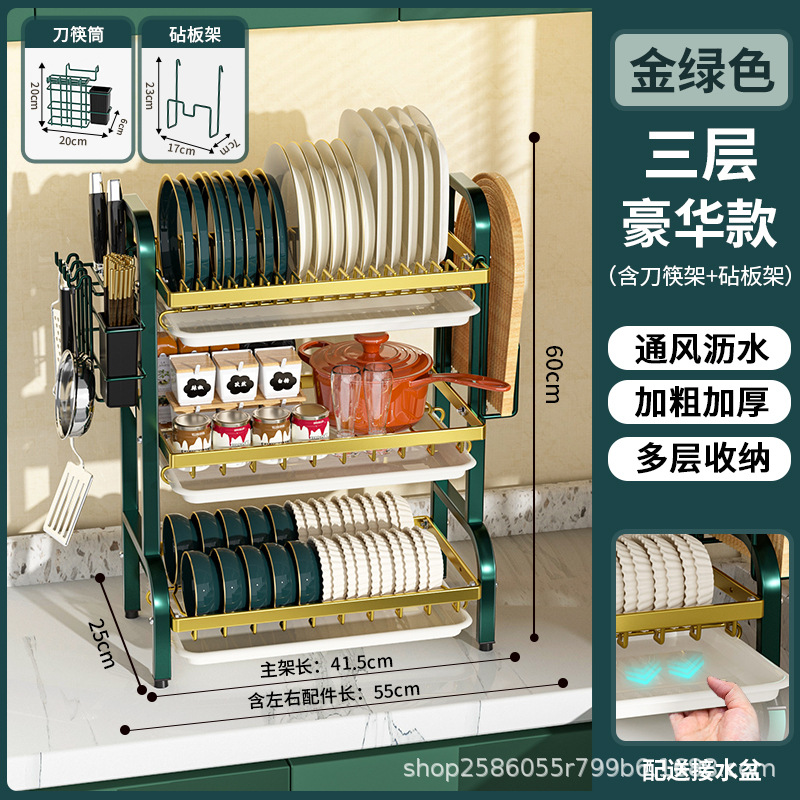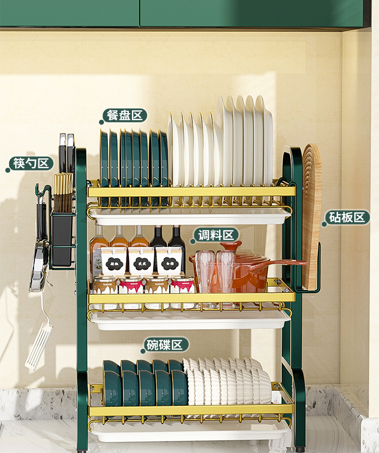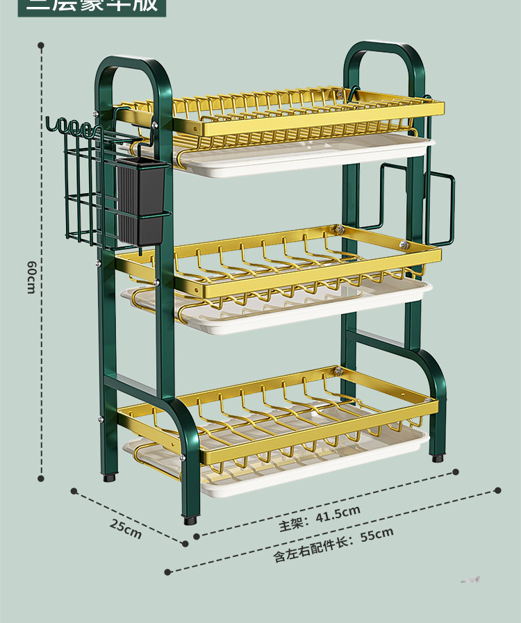 multi-layer plate rack, three-layer green-gold deluxe model