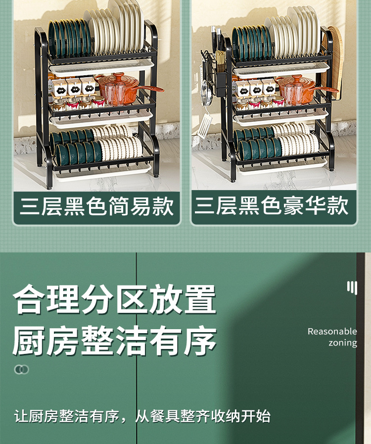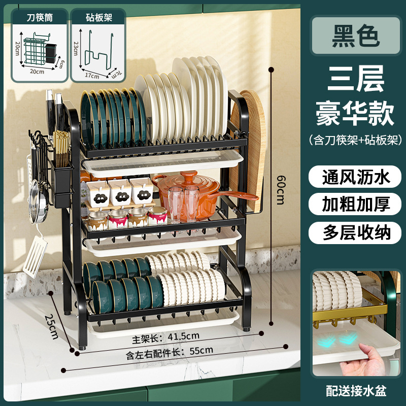multi-layer plate rack, three-tier black simple type