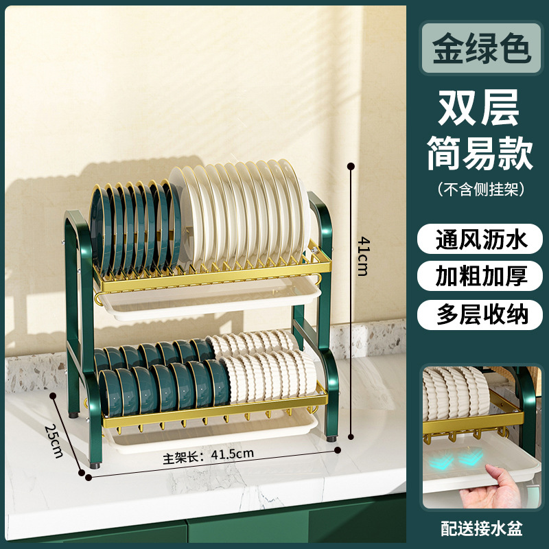 multi-layer plate rack, double-layer green gold simple type