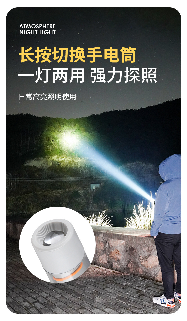 Function: Level 1 - COB 100% bright, Level 2 - COB 50% bright, Level 3 - COB breathing flash. Long press for 3 seconds to turn on the front light, which is 100% bright.