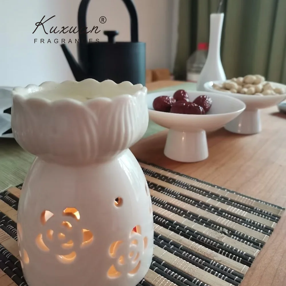 Custom Wholesale Nordic White Hollow Design Ceramic Furnace All Kinds of Lovely Flowers Used for Home Furnishing Ceramic Cup